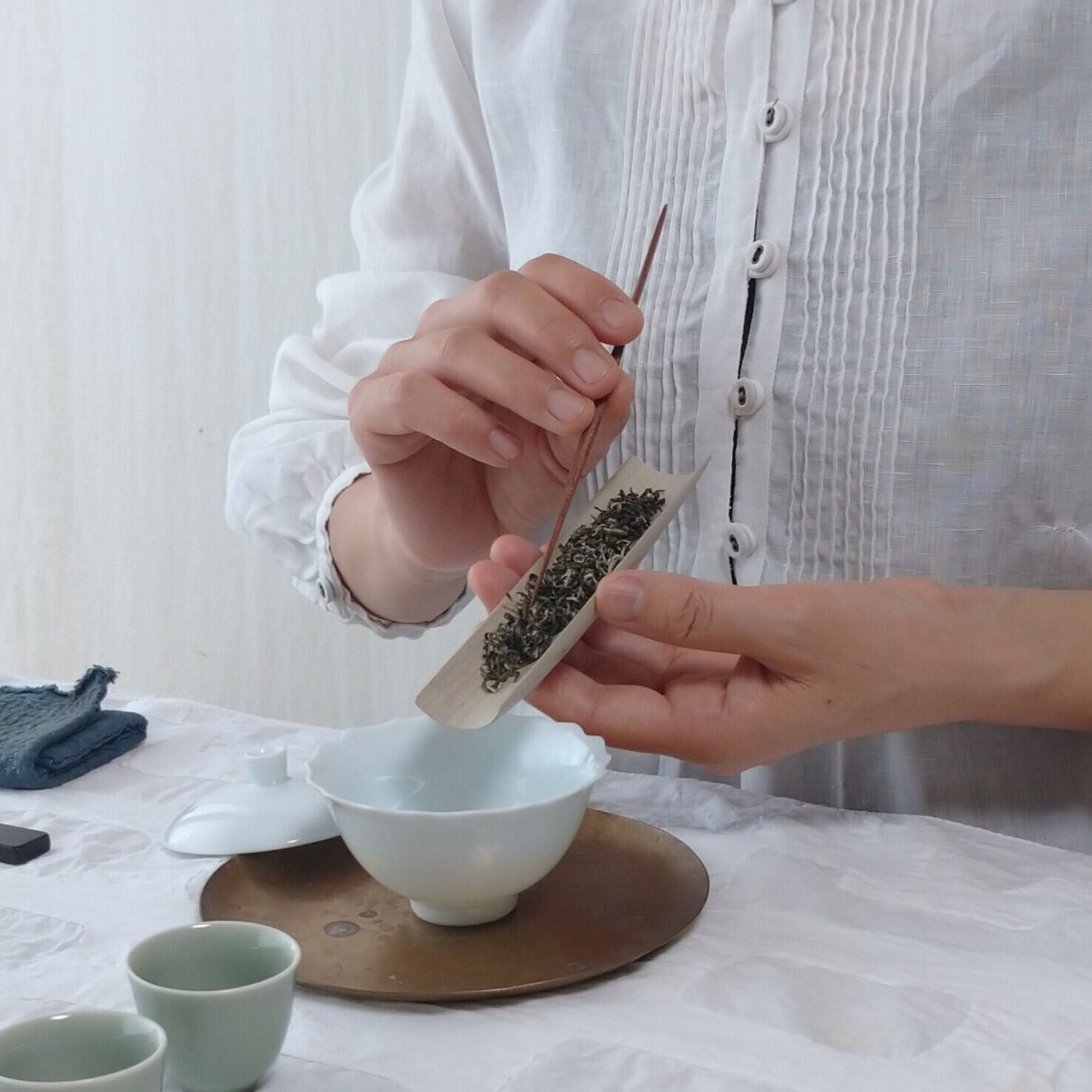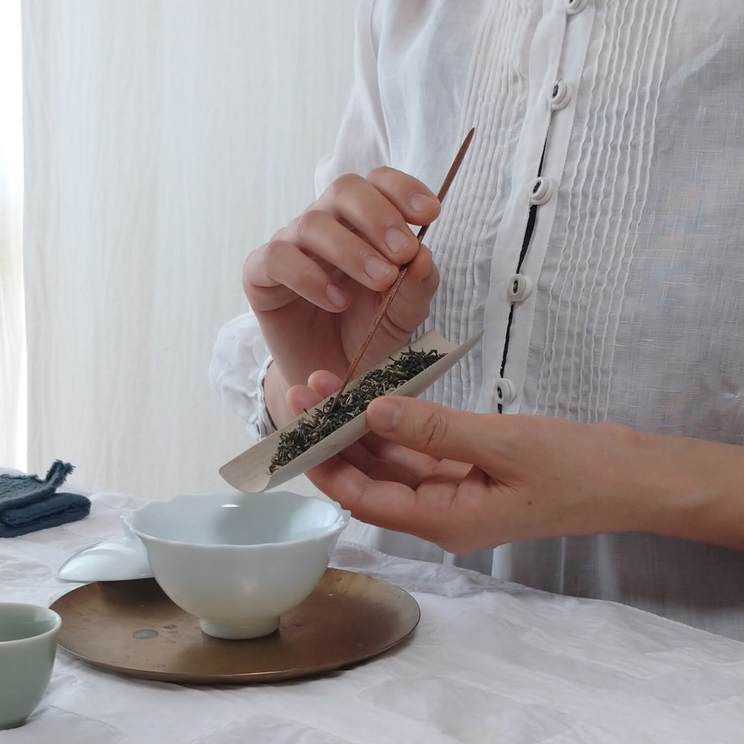 茶則があると、お茶を淹れる前に茶葉を入れておき、形や色を見たり、香りを嗅いだりして、茶葉をよく観察することができます。