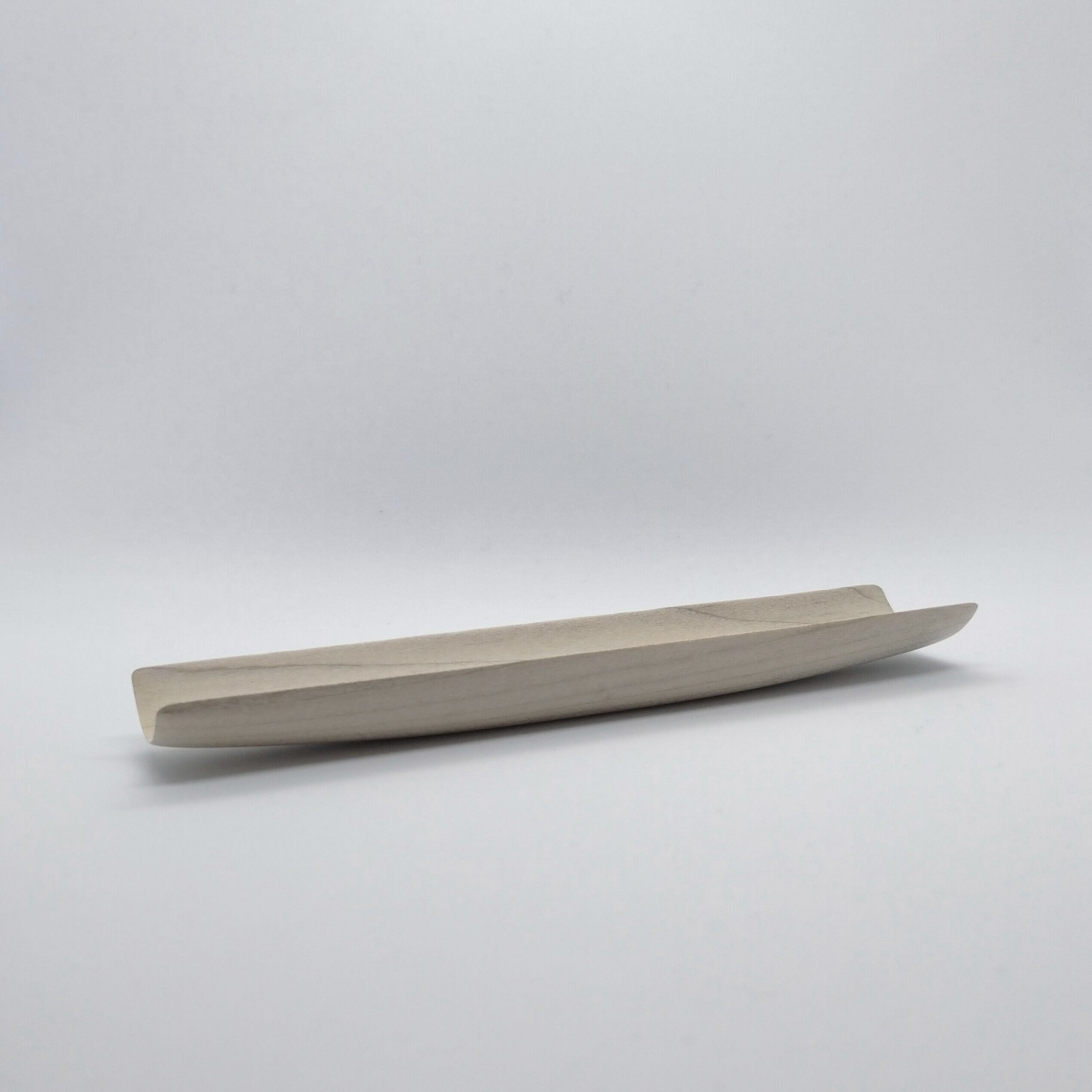 ノミと鉋を使って削り出した後にやすりがけ(仕上げ#1000)をして滑らかに仕上げました。塗装はしていません。