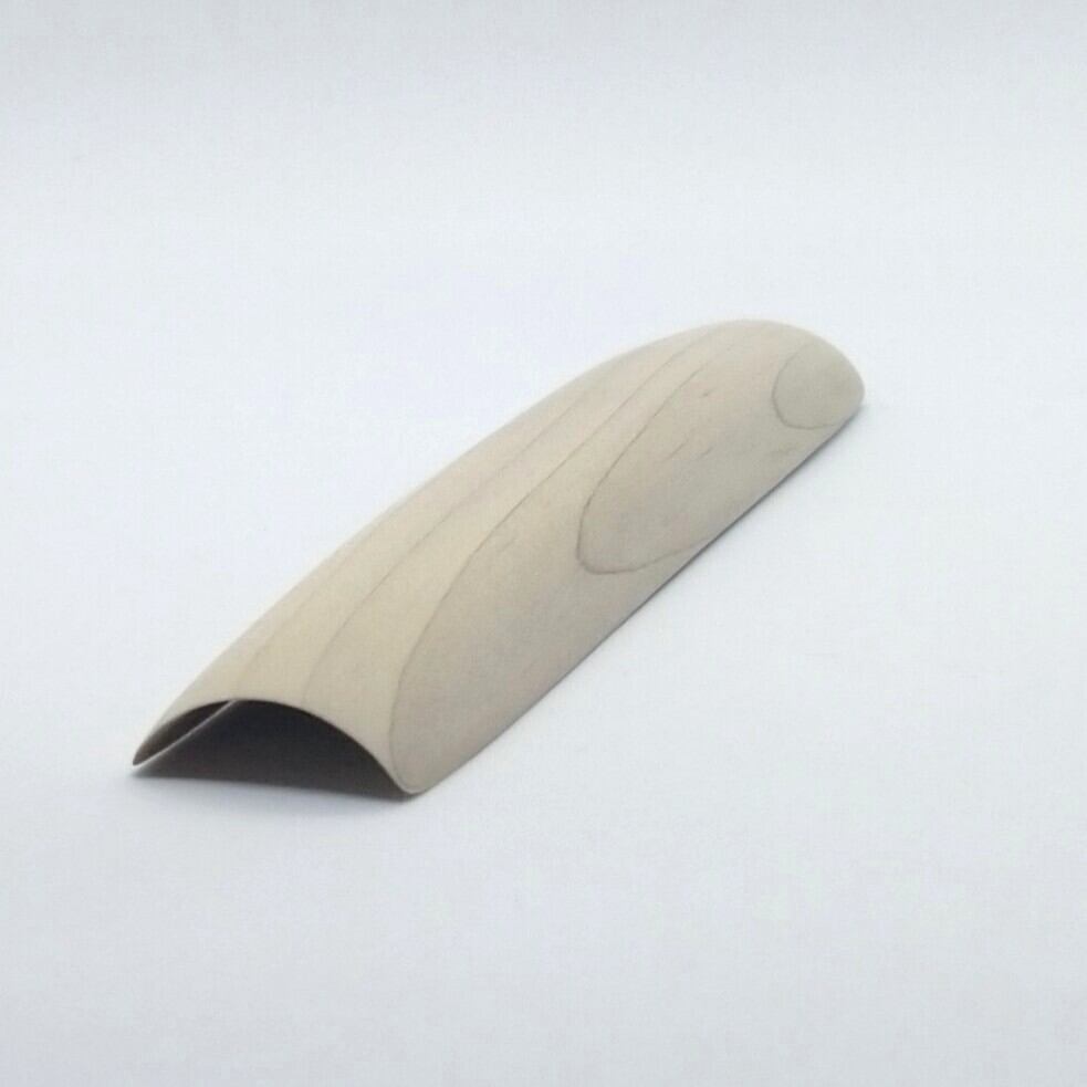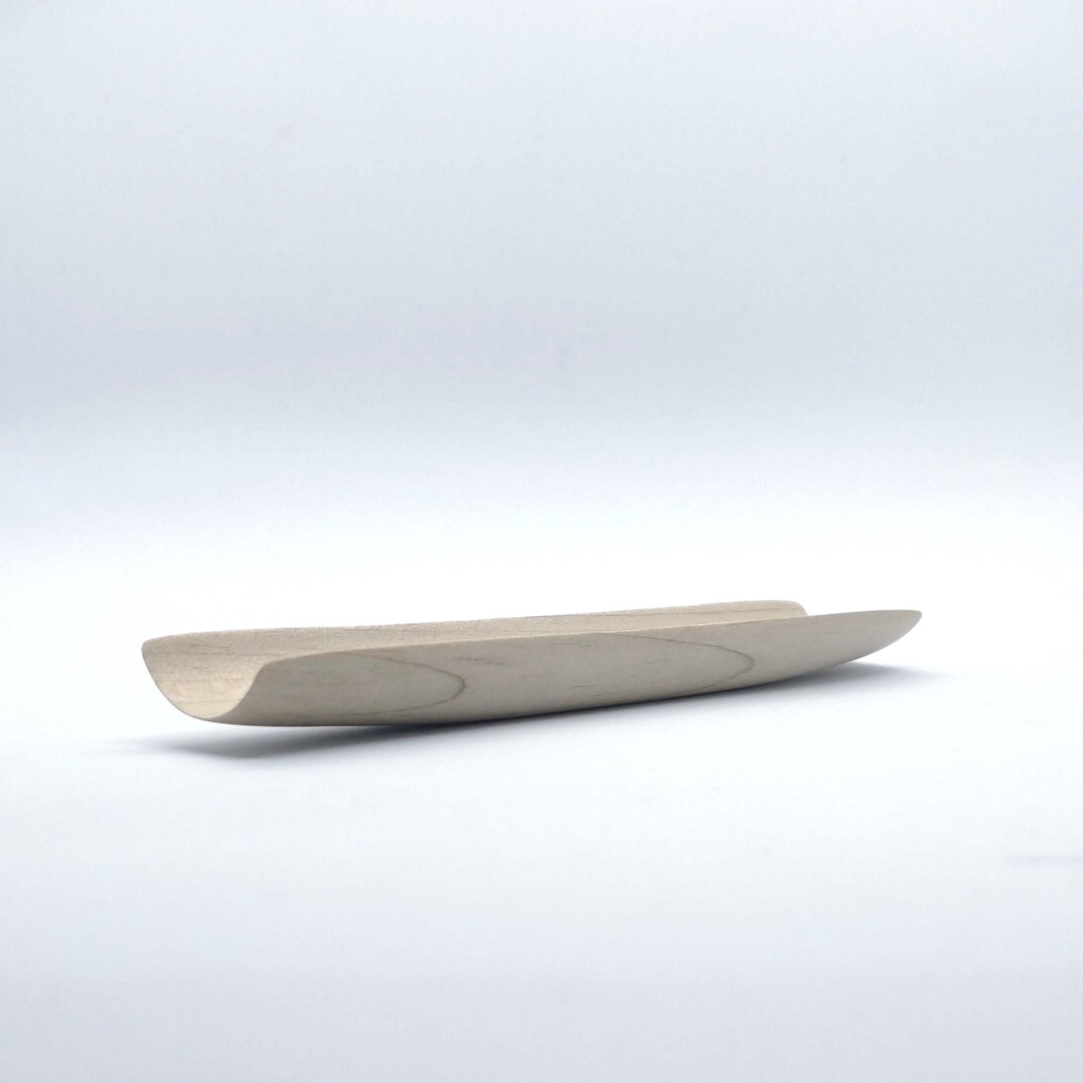 ノミと鉋を使って削り出した後にやすりがけ(仕上げ#1000)をして滑らかに仕上げました。塗装はしていません。