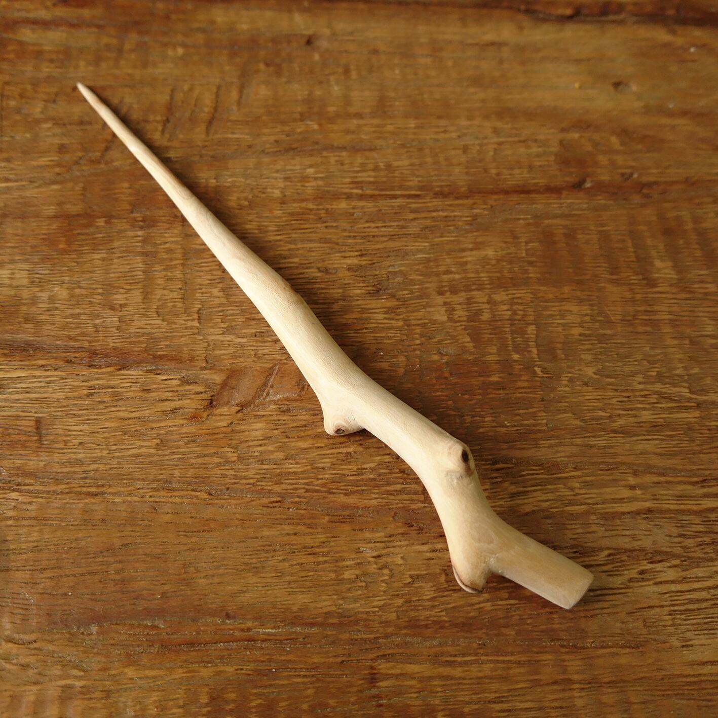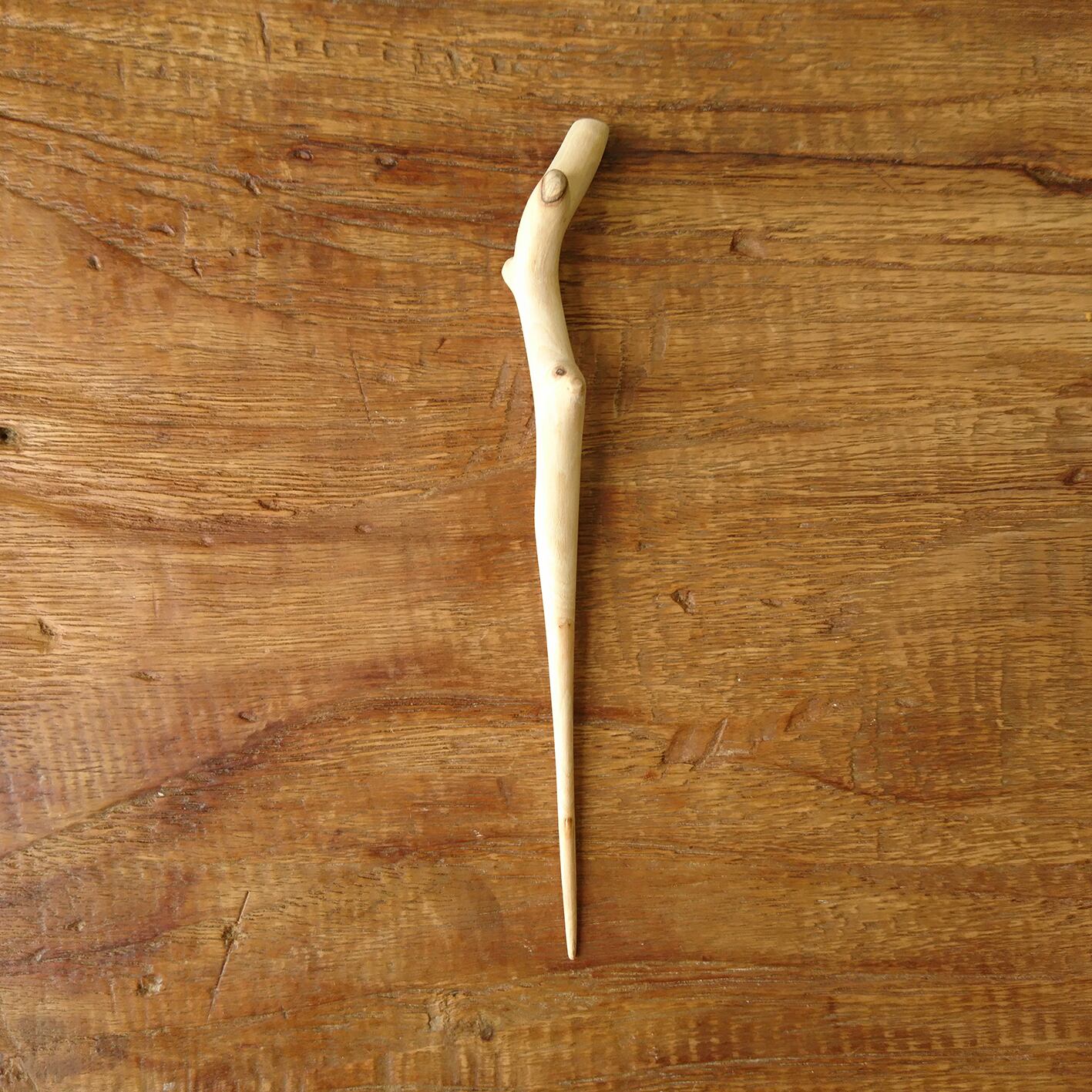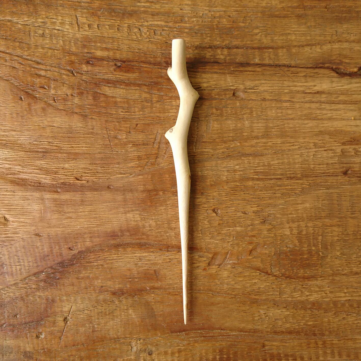 桜の枝を小刀で削った後にサンドペーパーをかけて仕上げました。