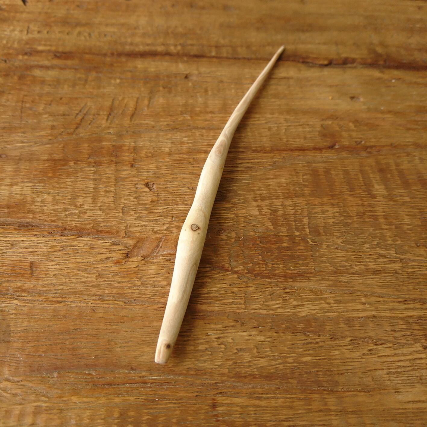桜の枝を小刀で削った後にサンドペーパーをかけて仕上げました。
