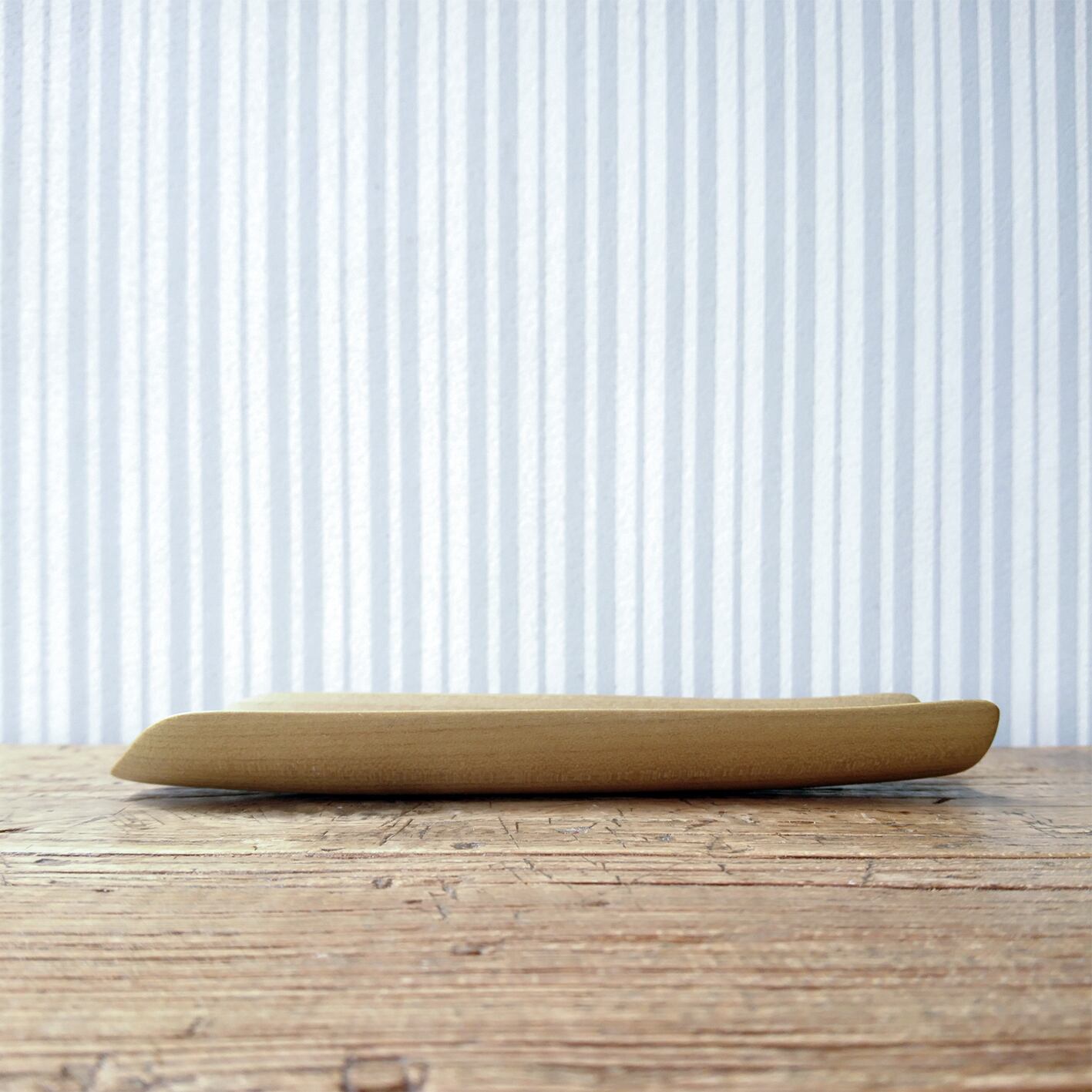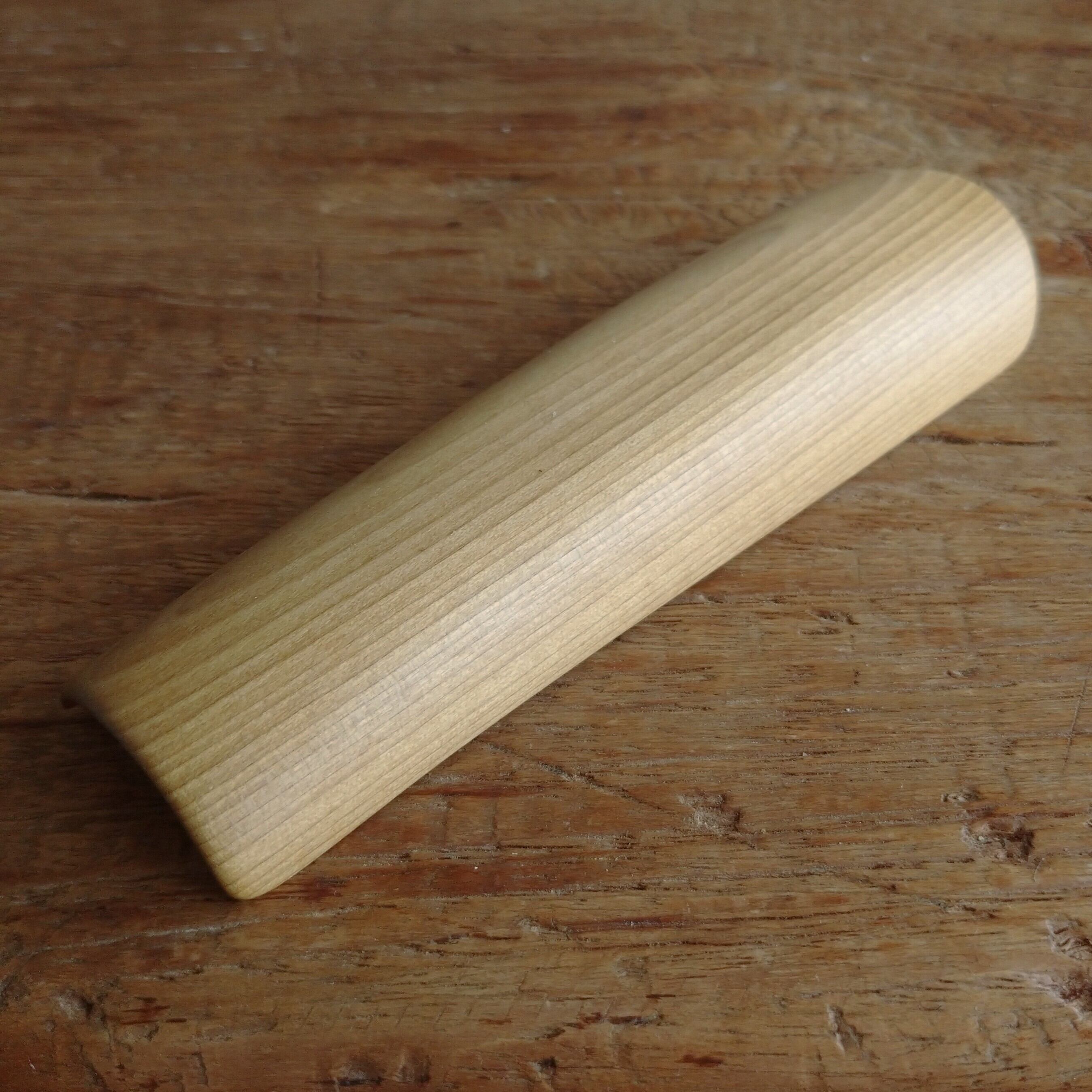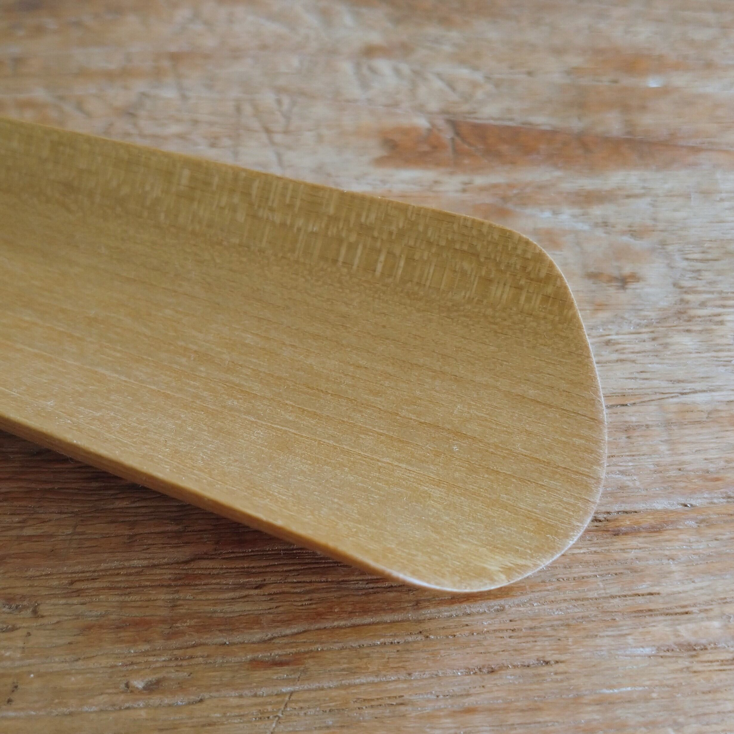 ノミ、鉋、小刀を使って削り出した後にサンドペーパー(#1000)をかけ、最後に食用の亜麻仁油を塗って仕上げました。
