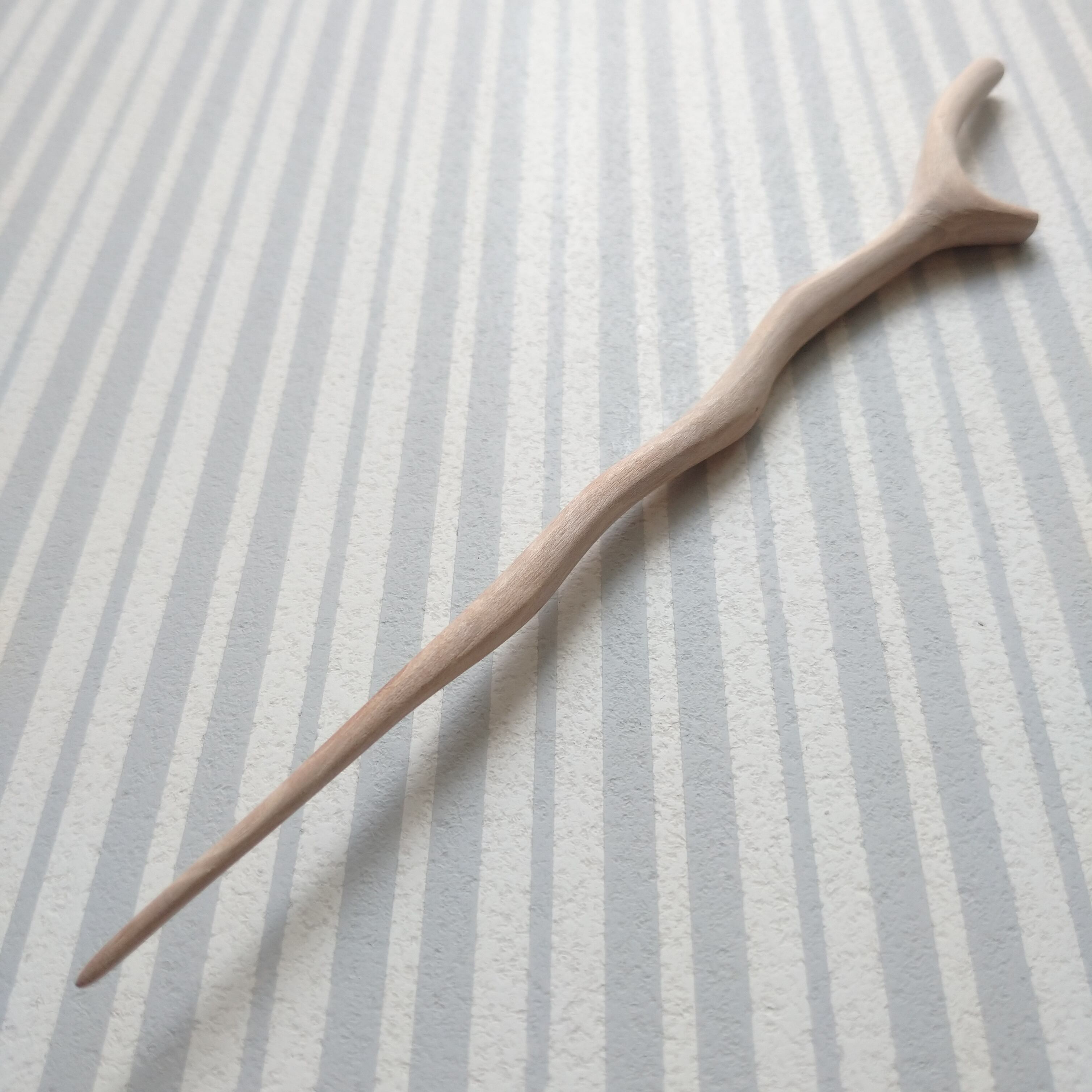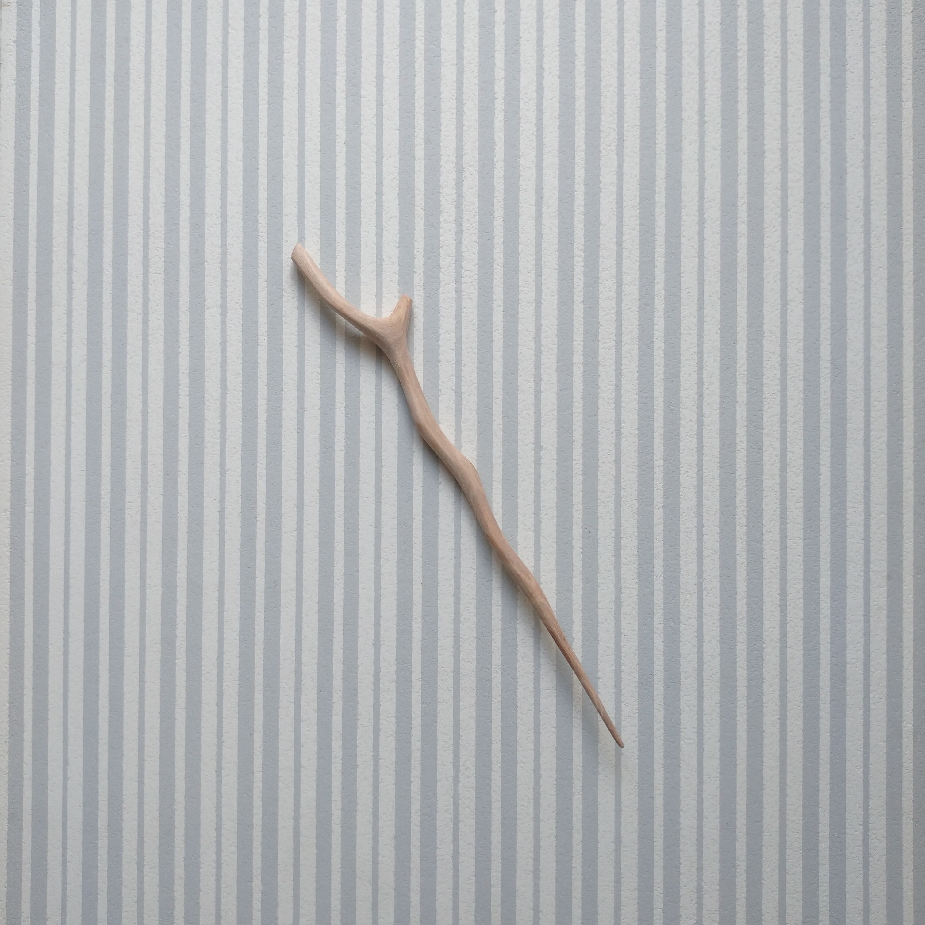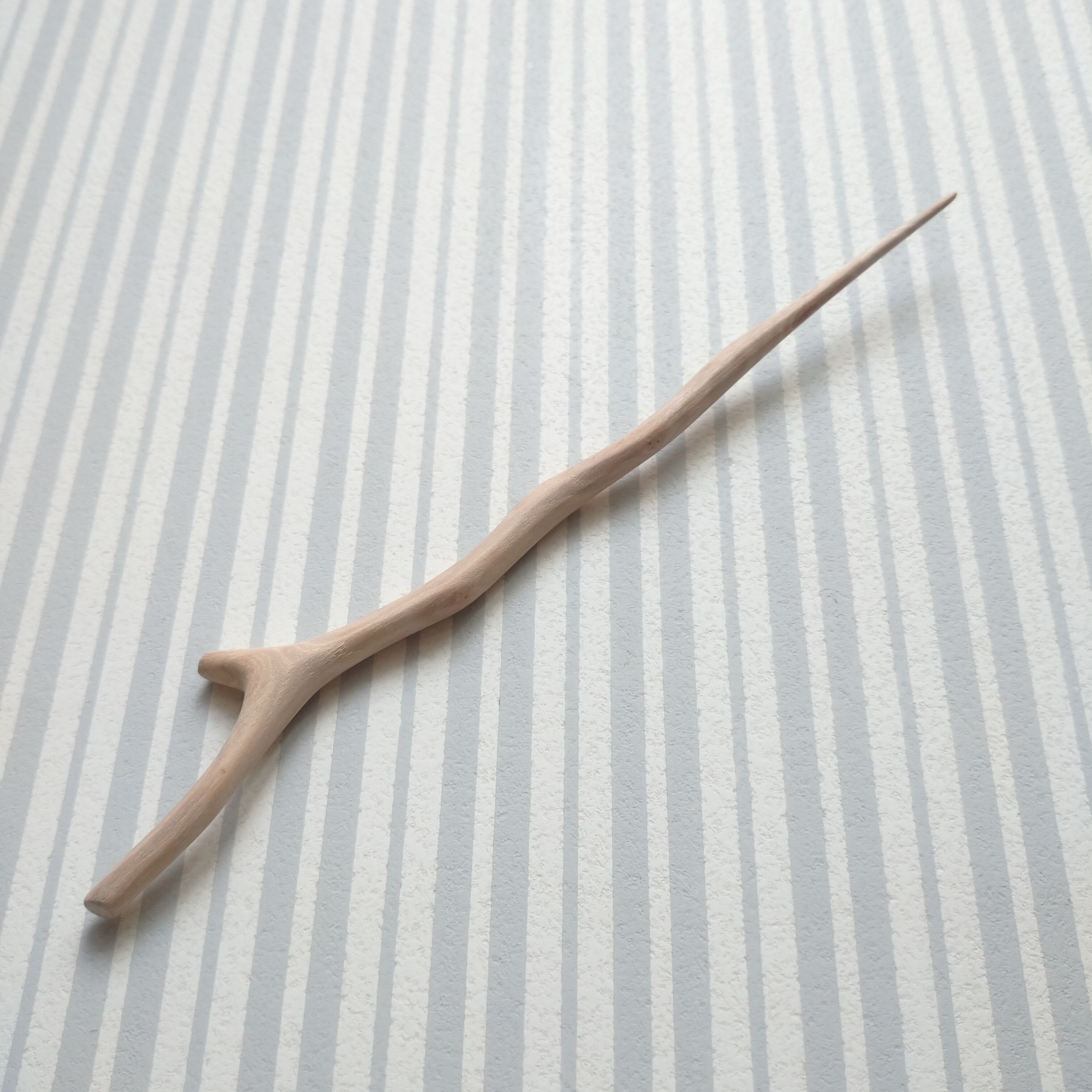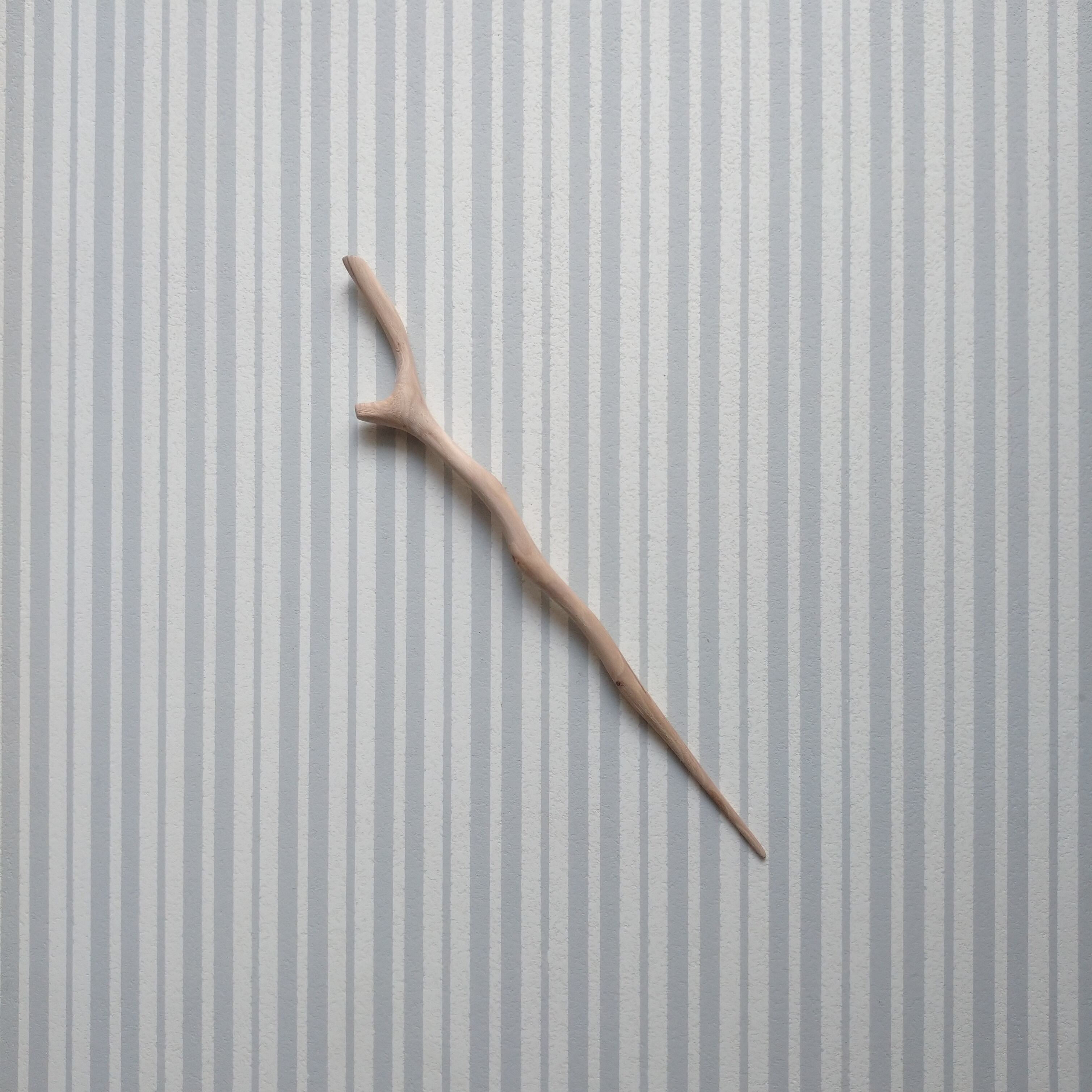 桜の枝を小刀で削った後にサンドペーパーをかけて仕上げました。