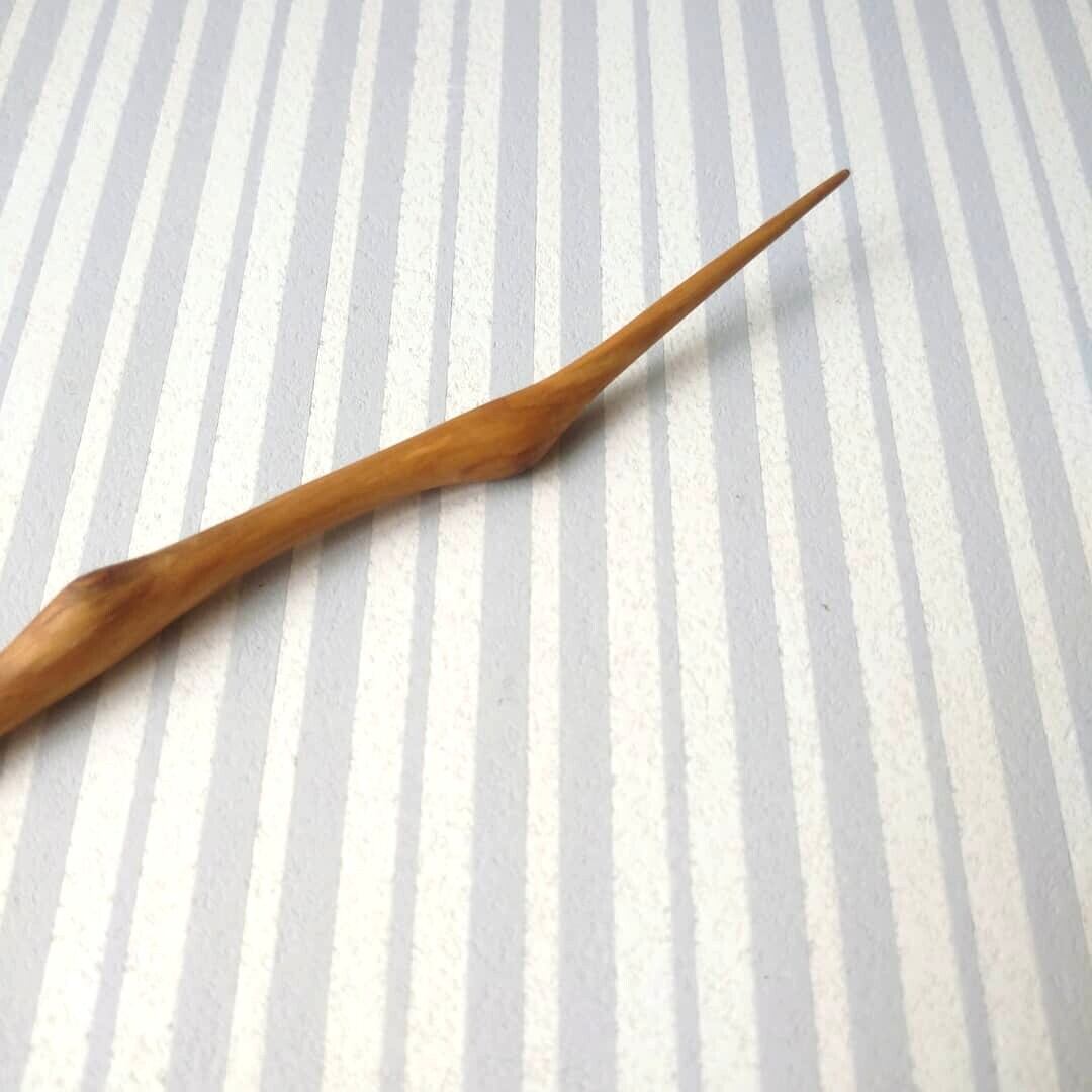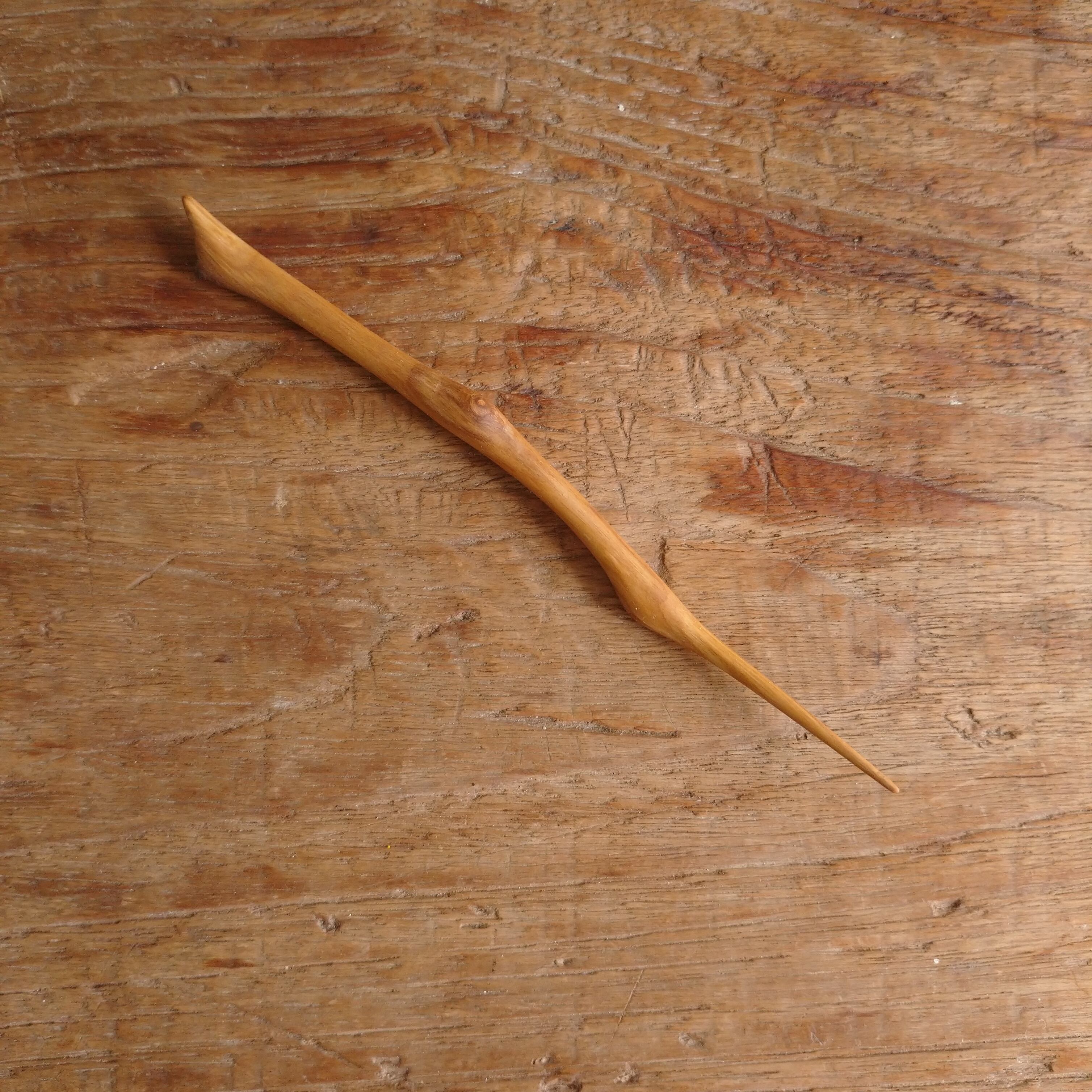 桜の枝を小刀で削った後にサンドペーパーをかけ、最後にクルミ油を塗って仕上げました。