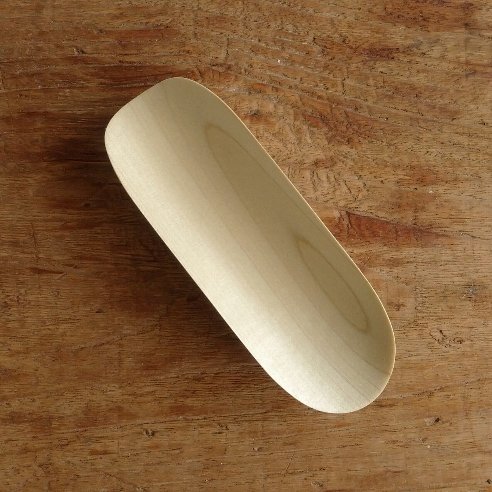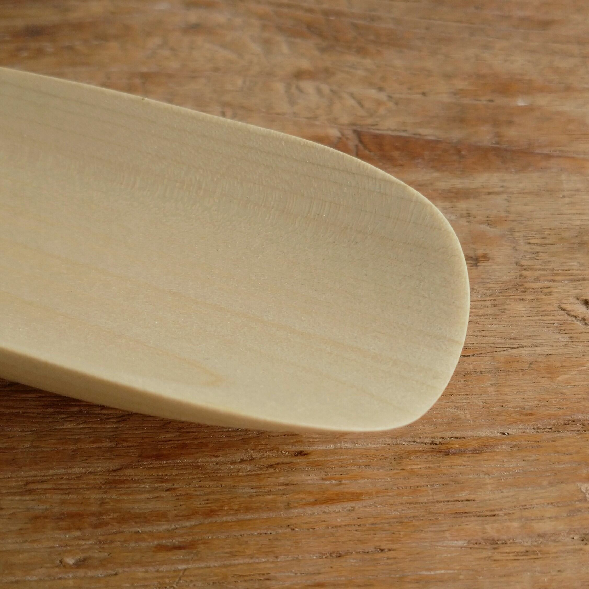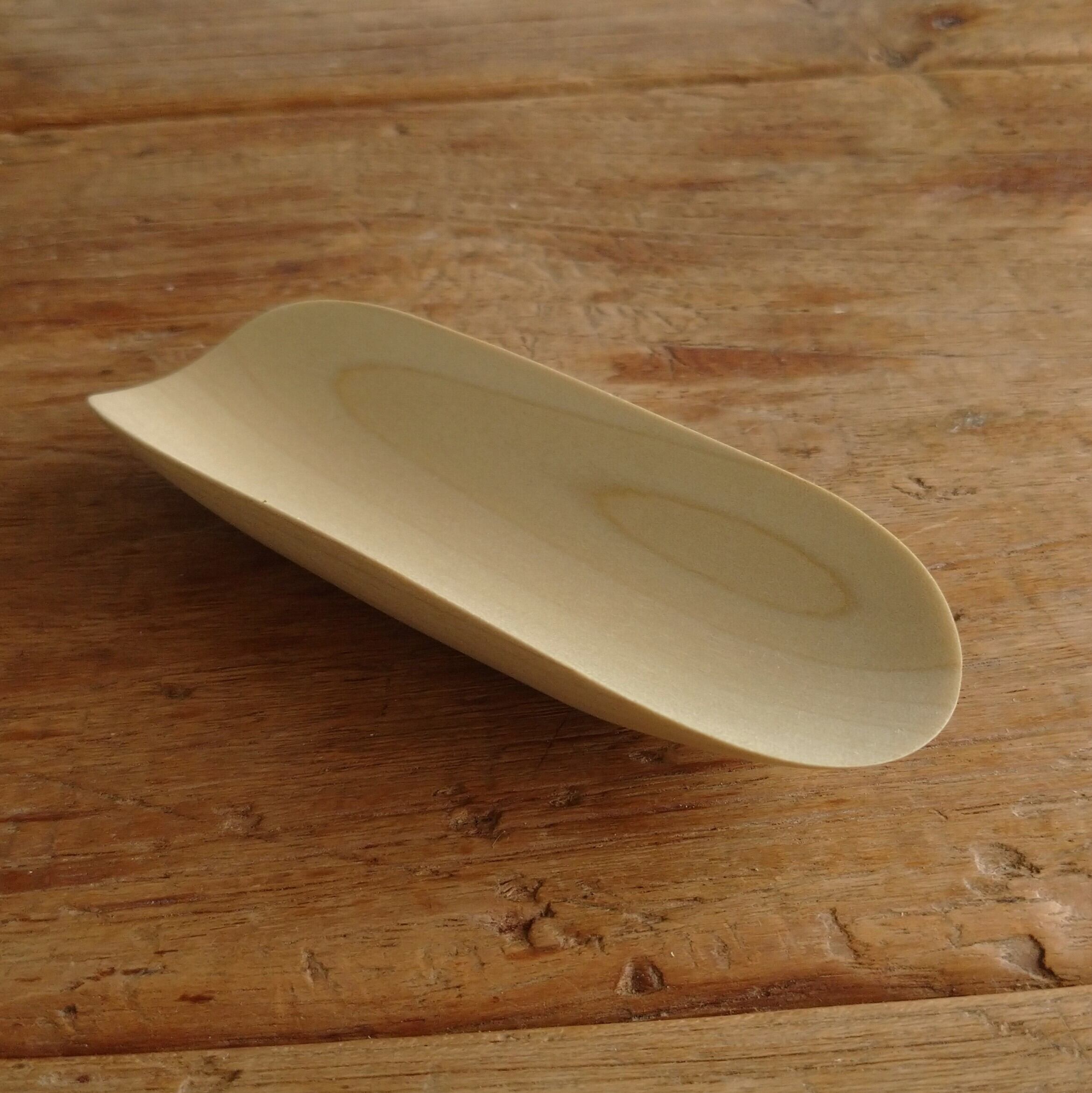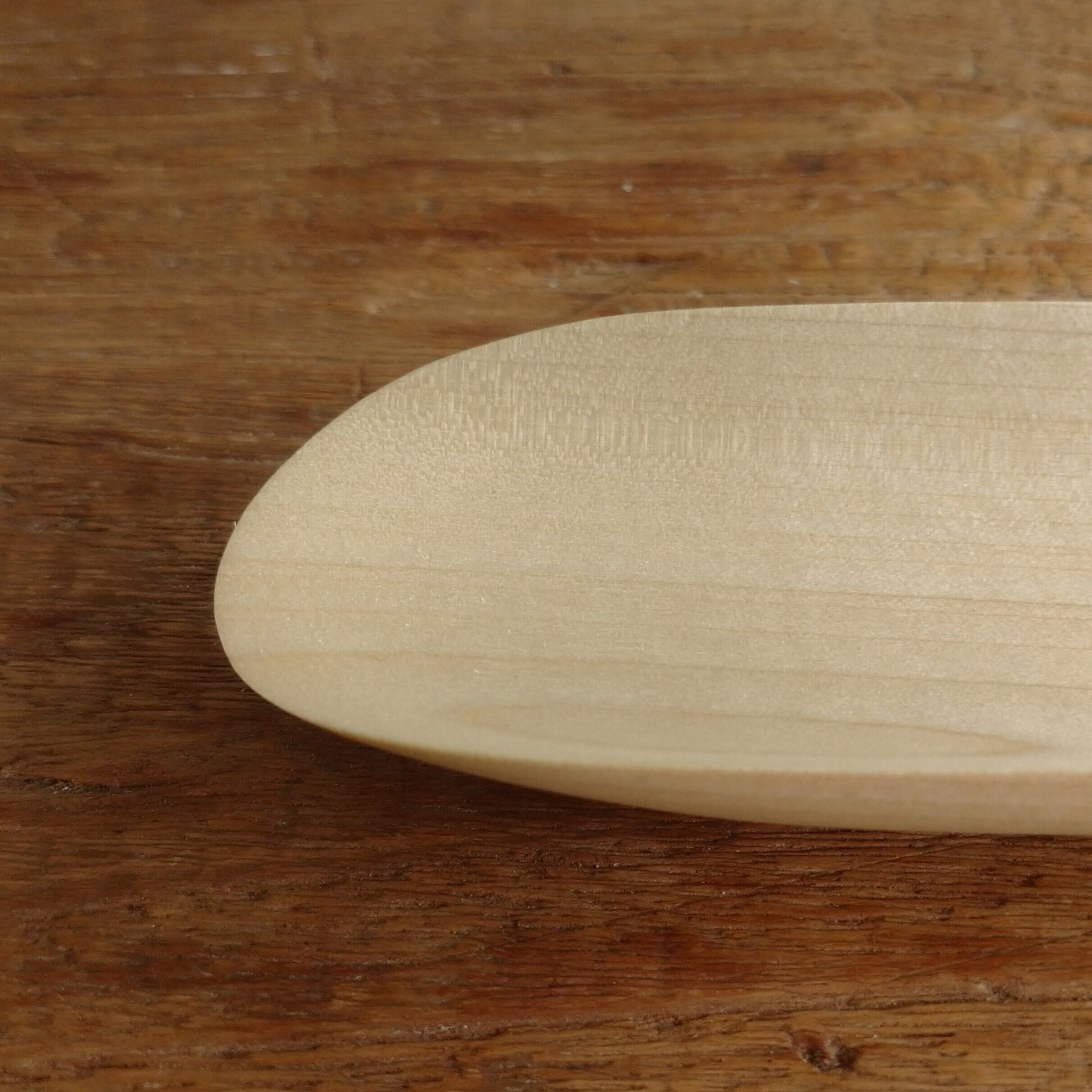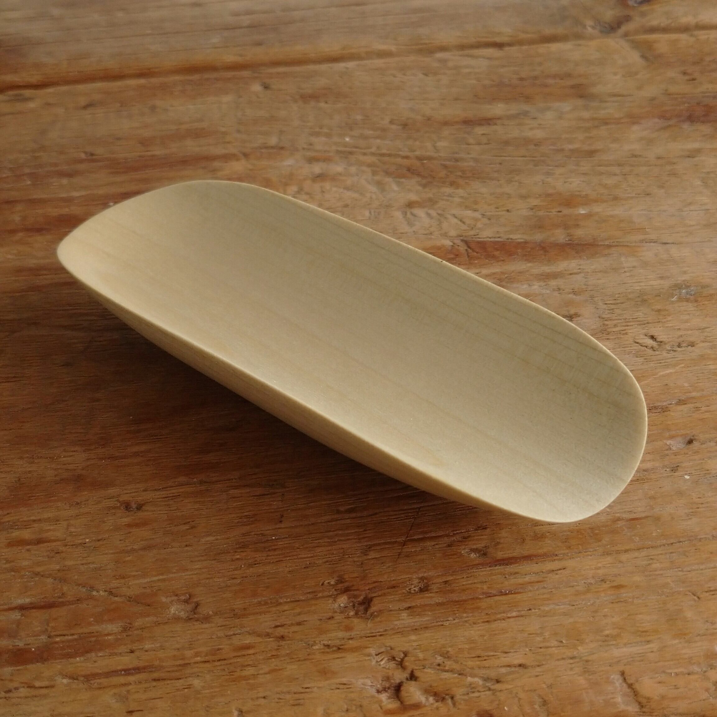 ノミ、鉋、彫刻刀などを使って削り出した後にサンディング(#1000)をし、最後にクルミ油を塗って仕上げました。