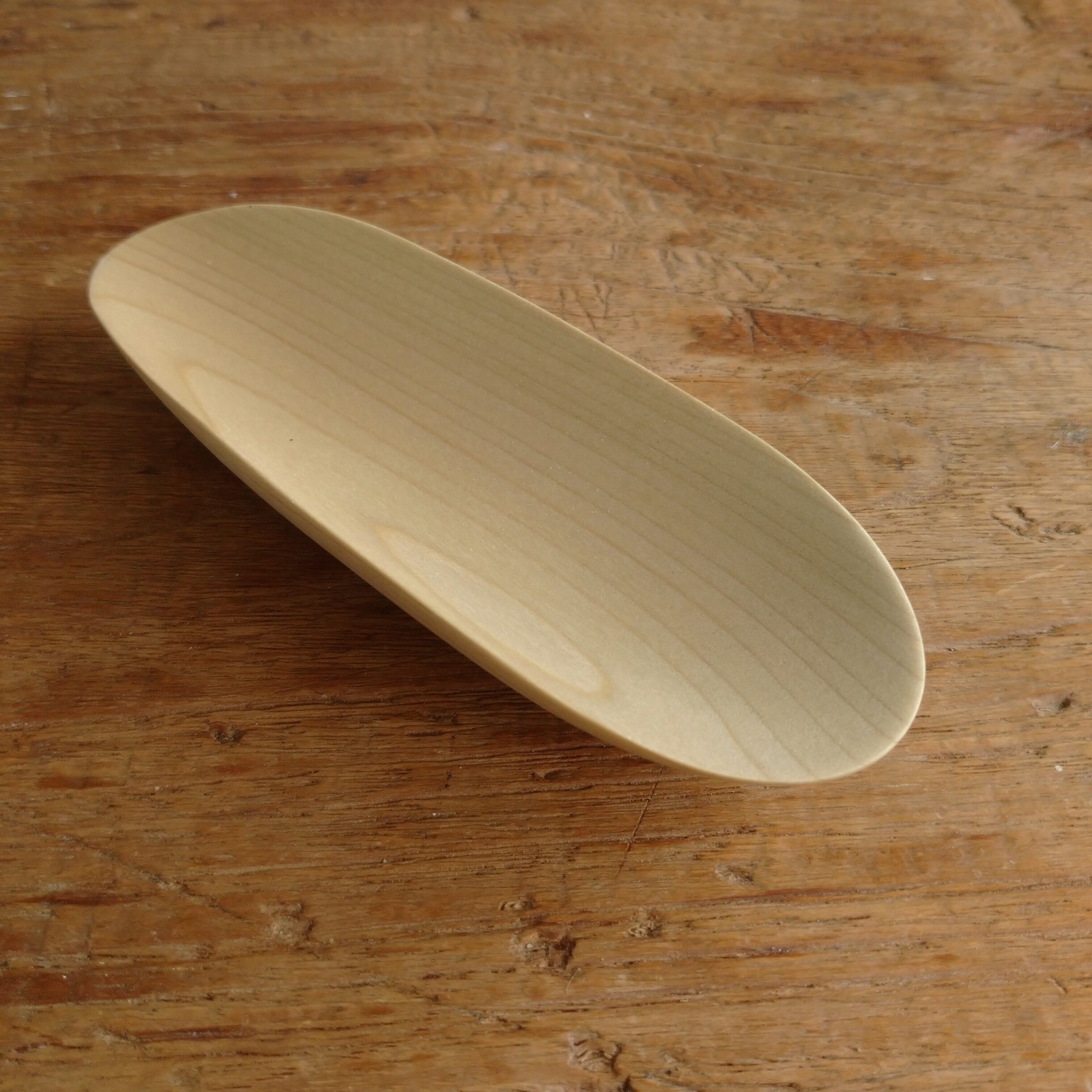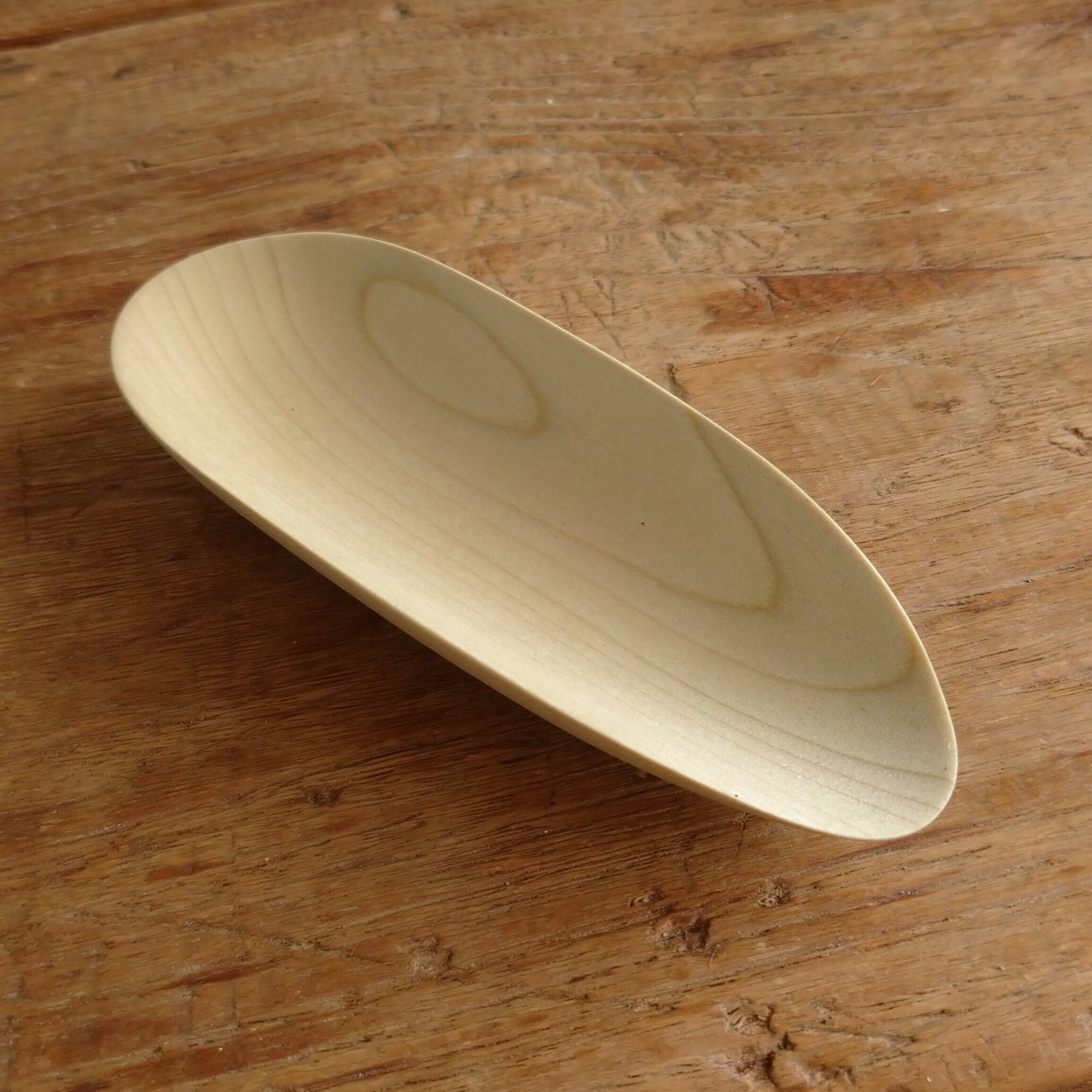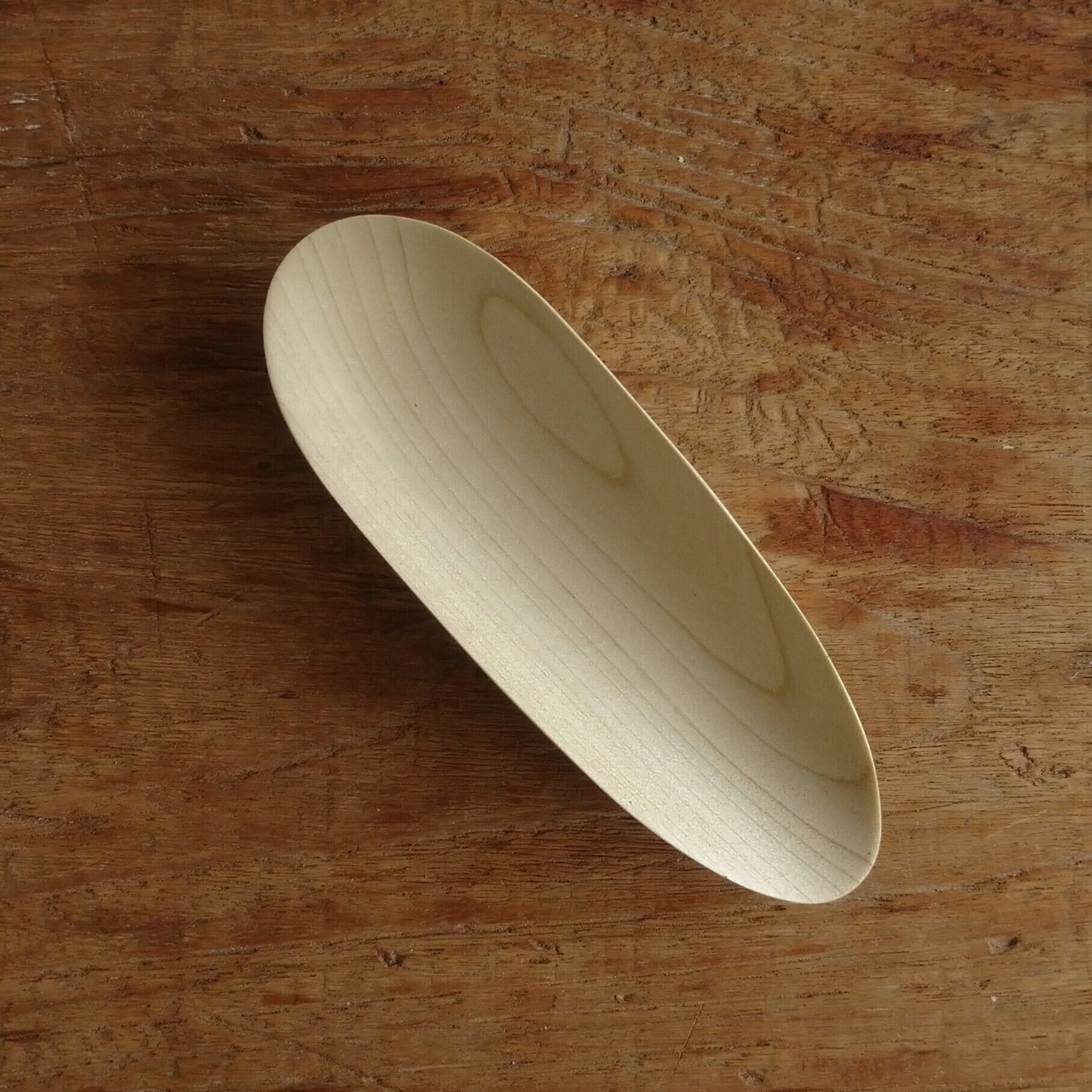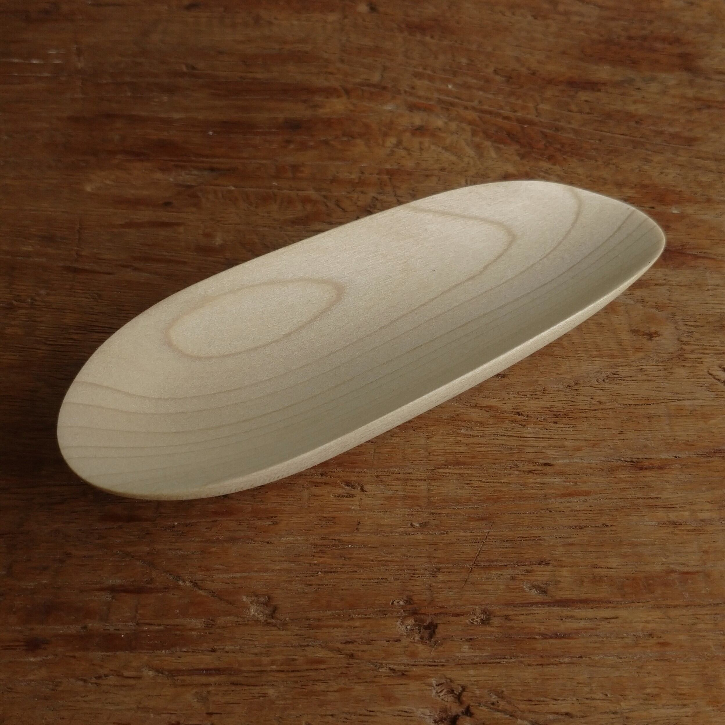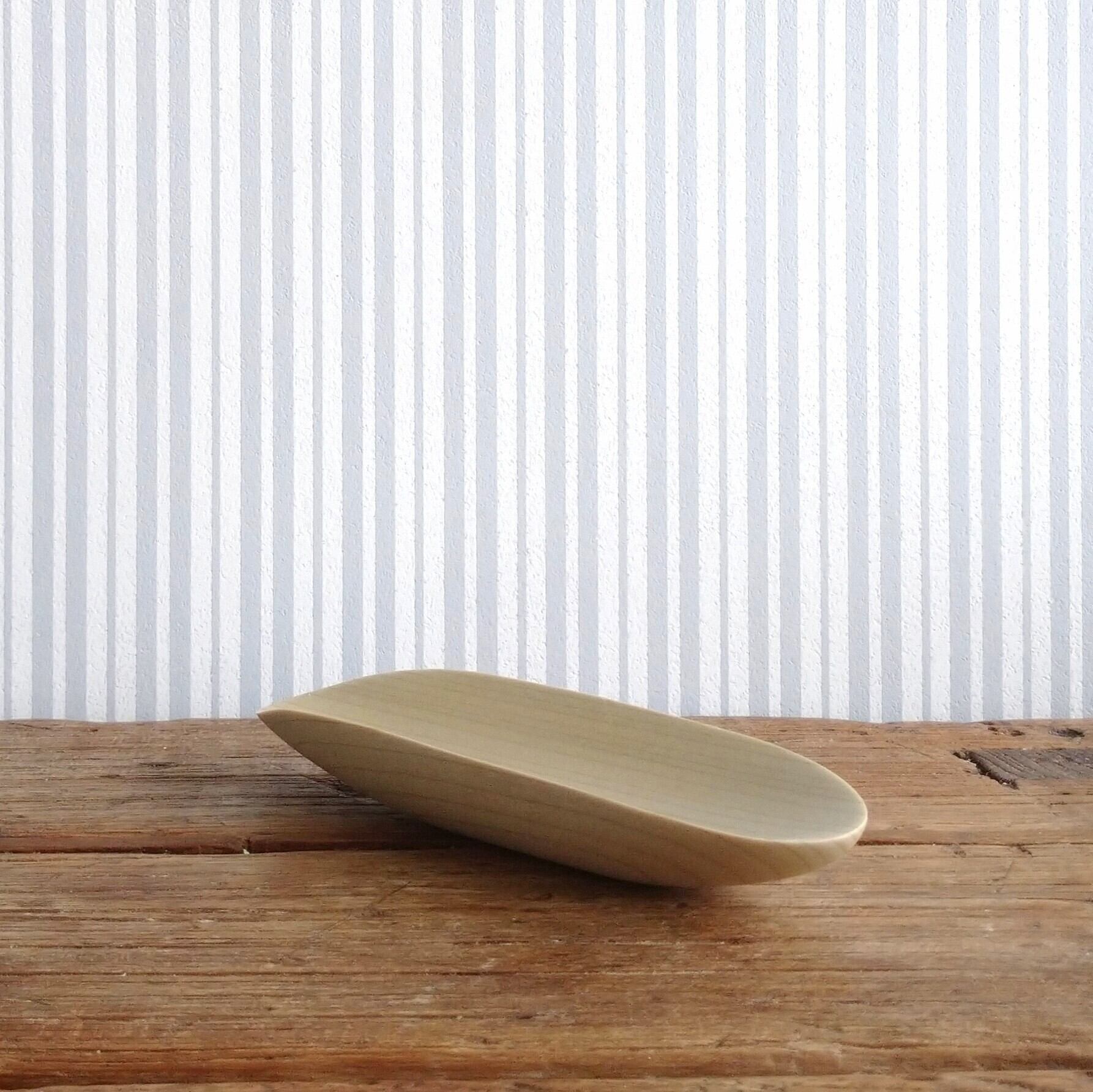 やや浅めの、笹舟の形をした茶則を作りました。鉄観音のように丸まった茶葉や、金駿眉のような小さめの茶葉を載せるのに向いています。(写真はそれぞれ、野生正山小種を5g、白芽奇蘭を5g載せています。)