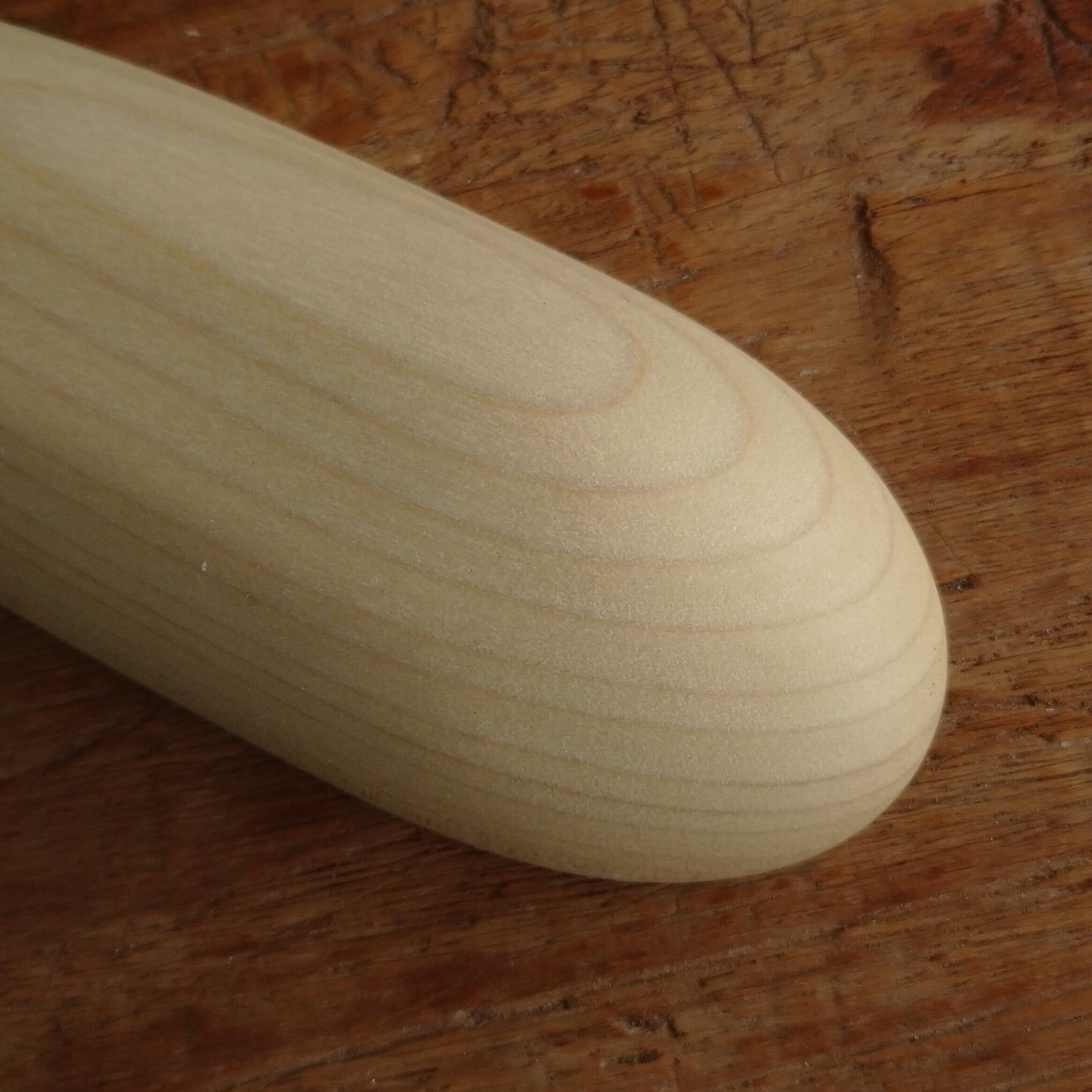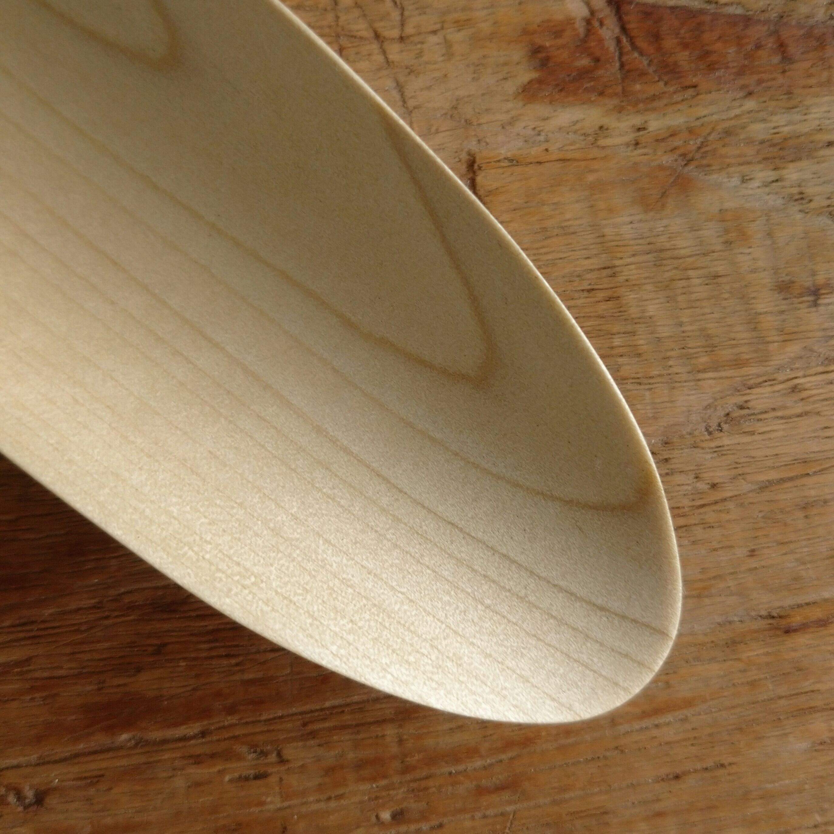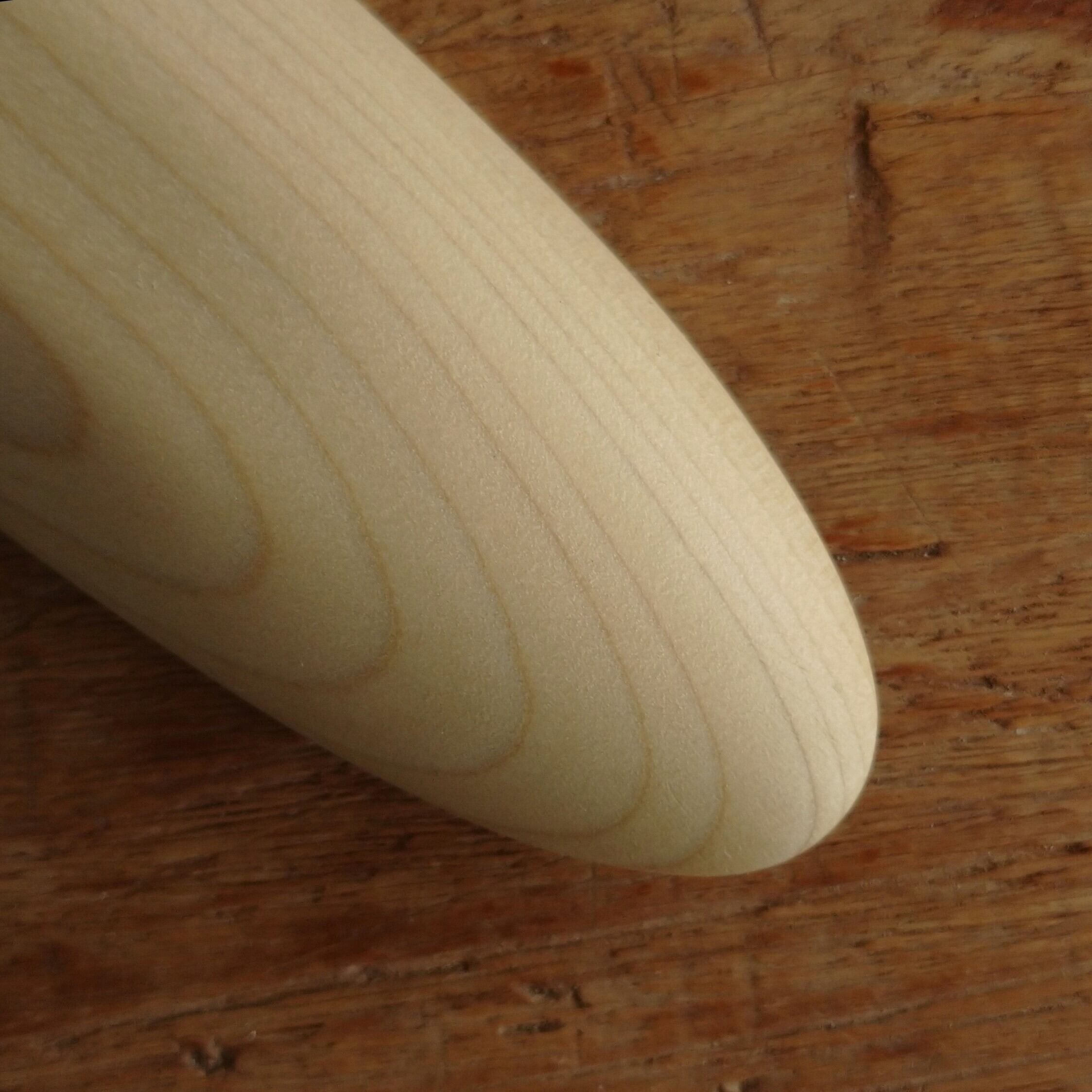 ノミ、鉋、彫刻刀などを使って削り出した後にサンディング(#1000)をし、最後にクルミ油を塗って仕上げました。