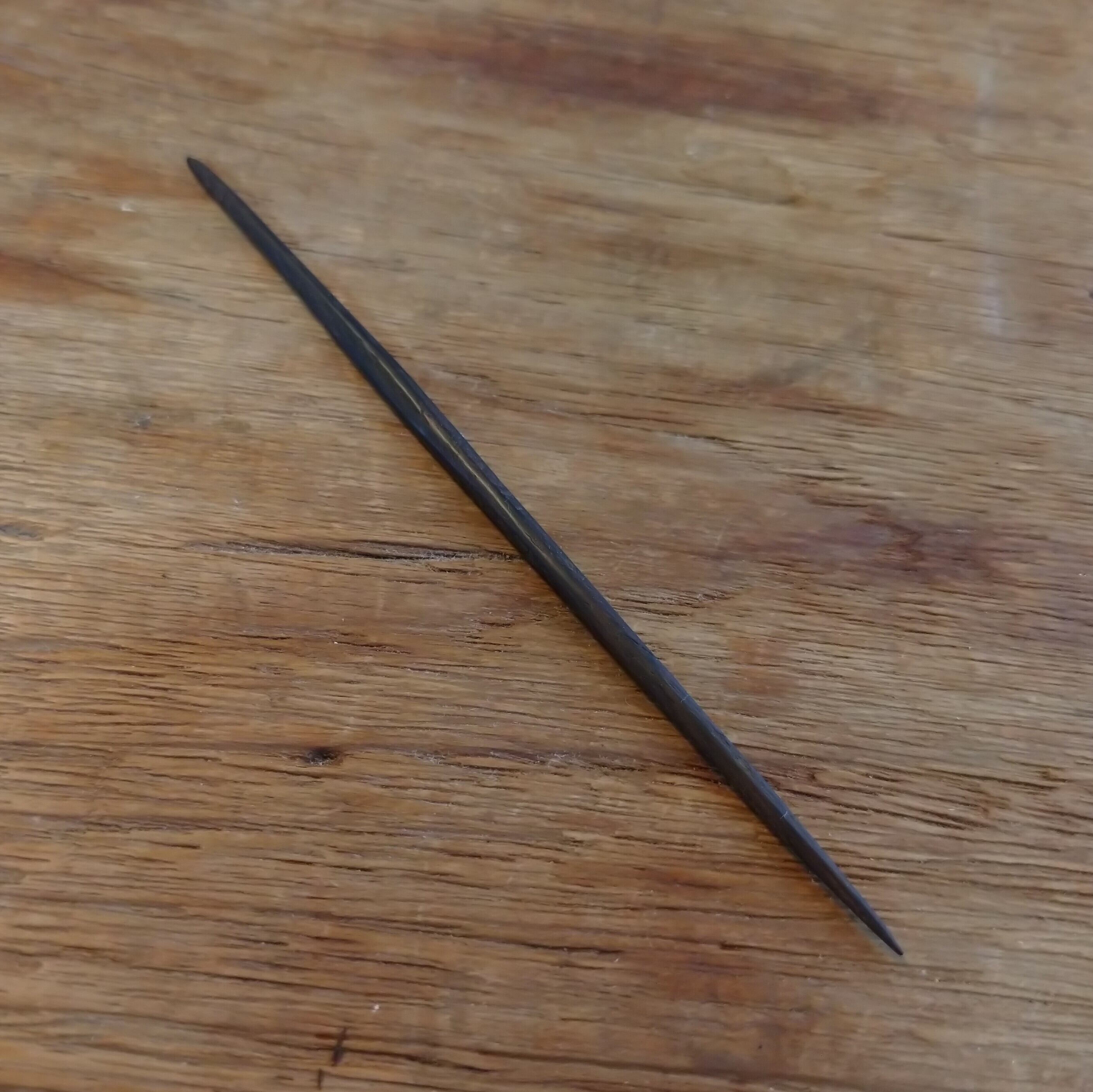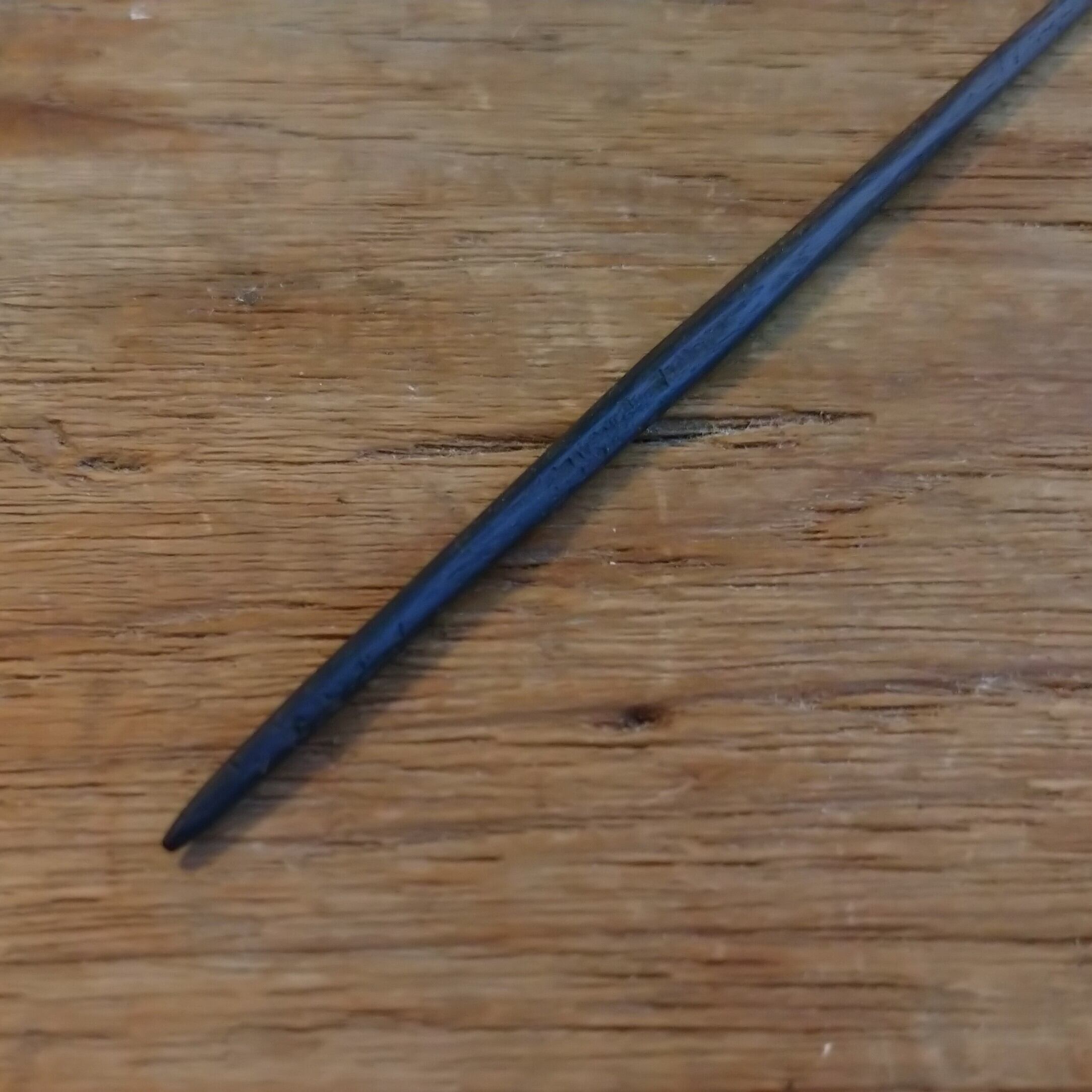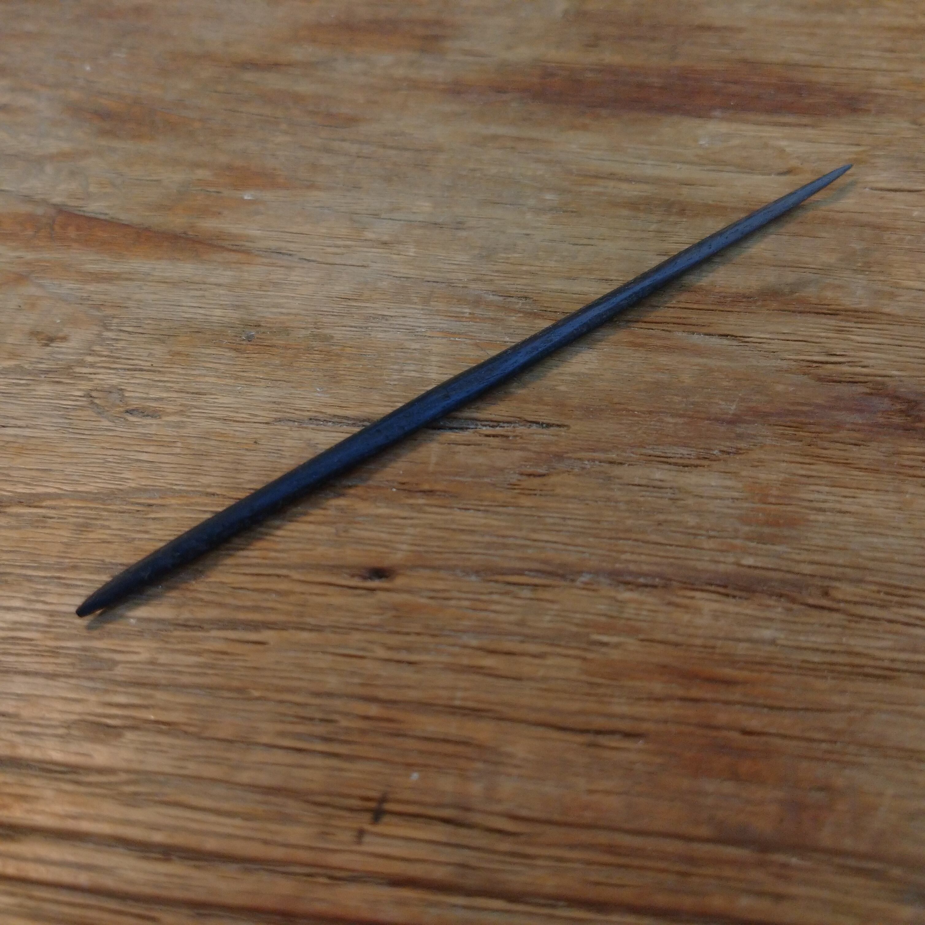 小刀、カンナ で削り出したあとサンディングし、鉄媒染で黒く染めました。最後にクルミ油を塗り、もう一度サンディング(1000番)をして仕上げています。
