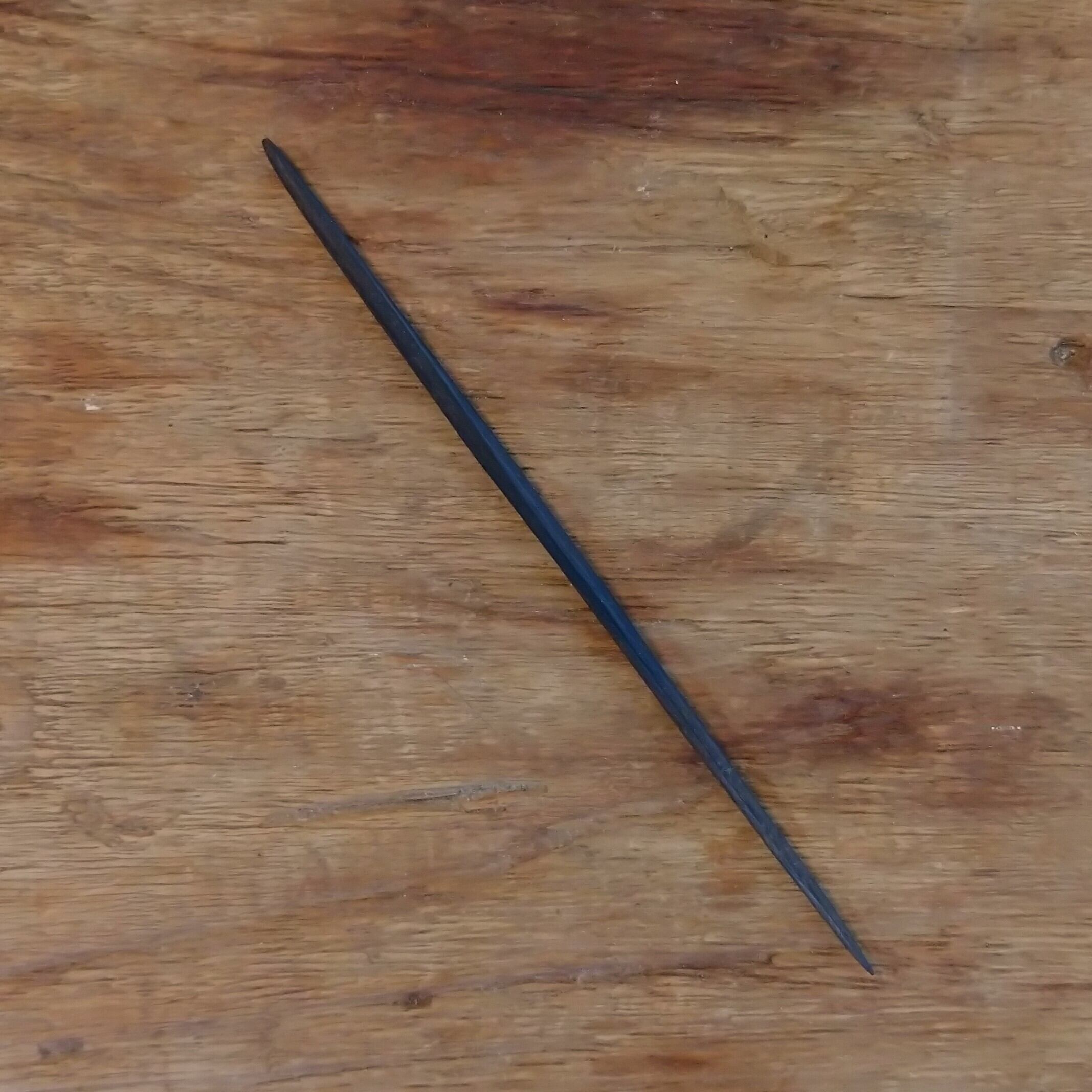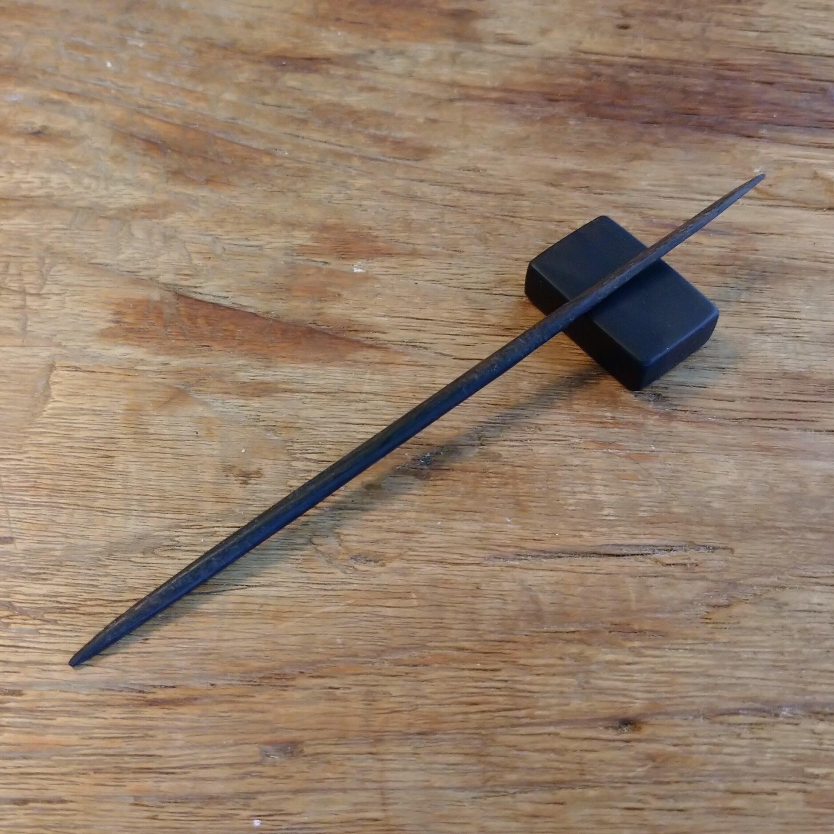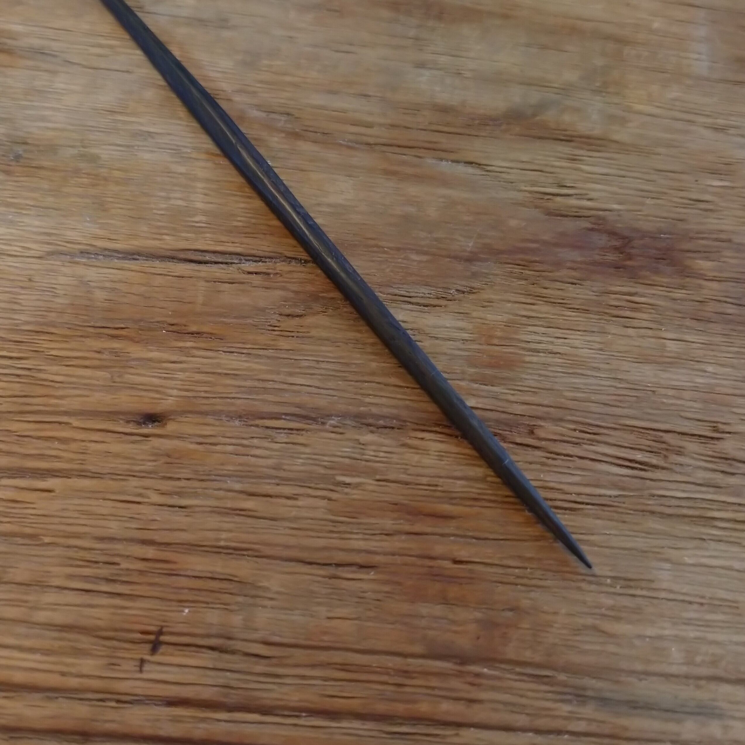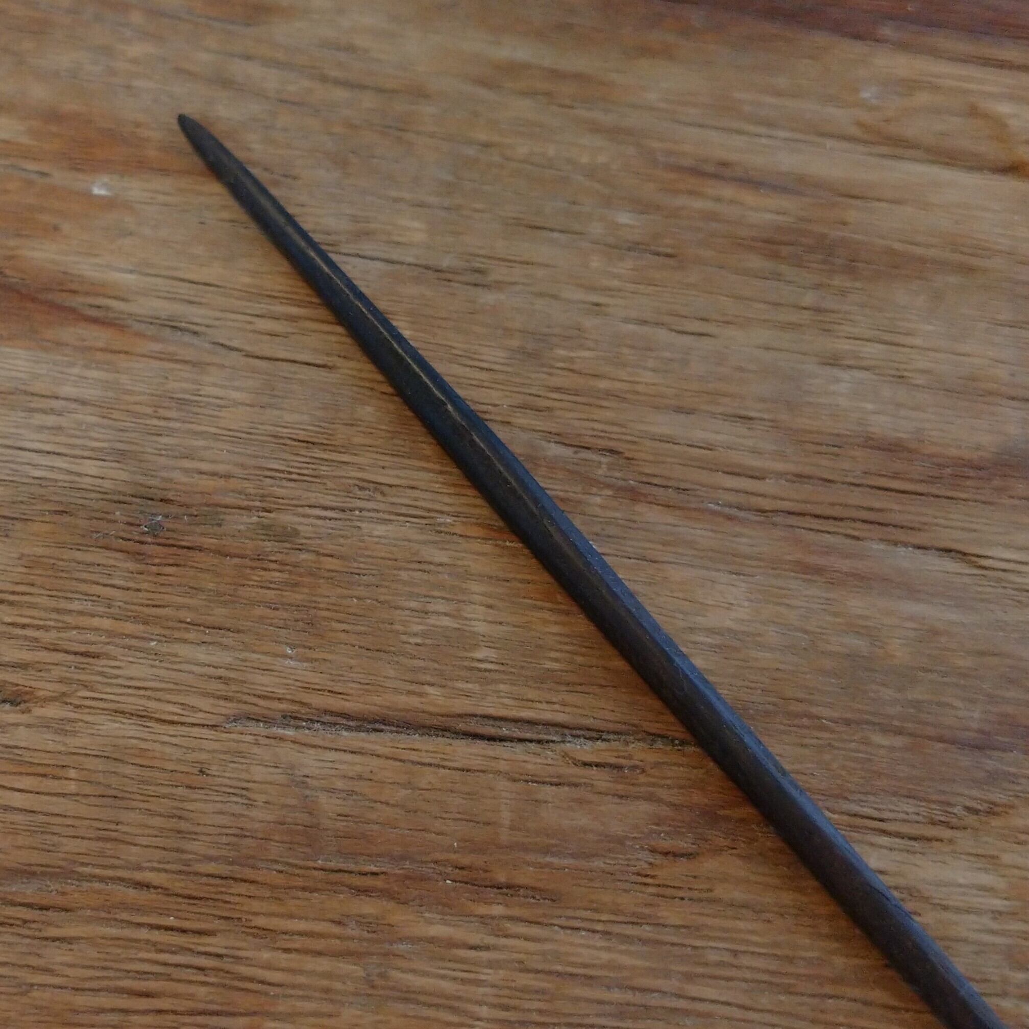 小刀、カンナ で削り出したあとサンディングし、鉄媒染で黒く染めました。最後にクルミ油を塗り、もう一度サンディング(1000番)をして仕上げています。