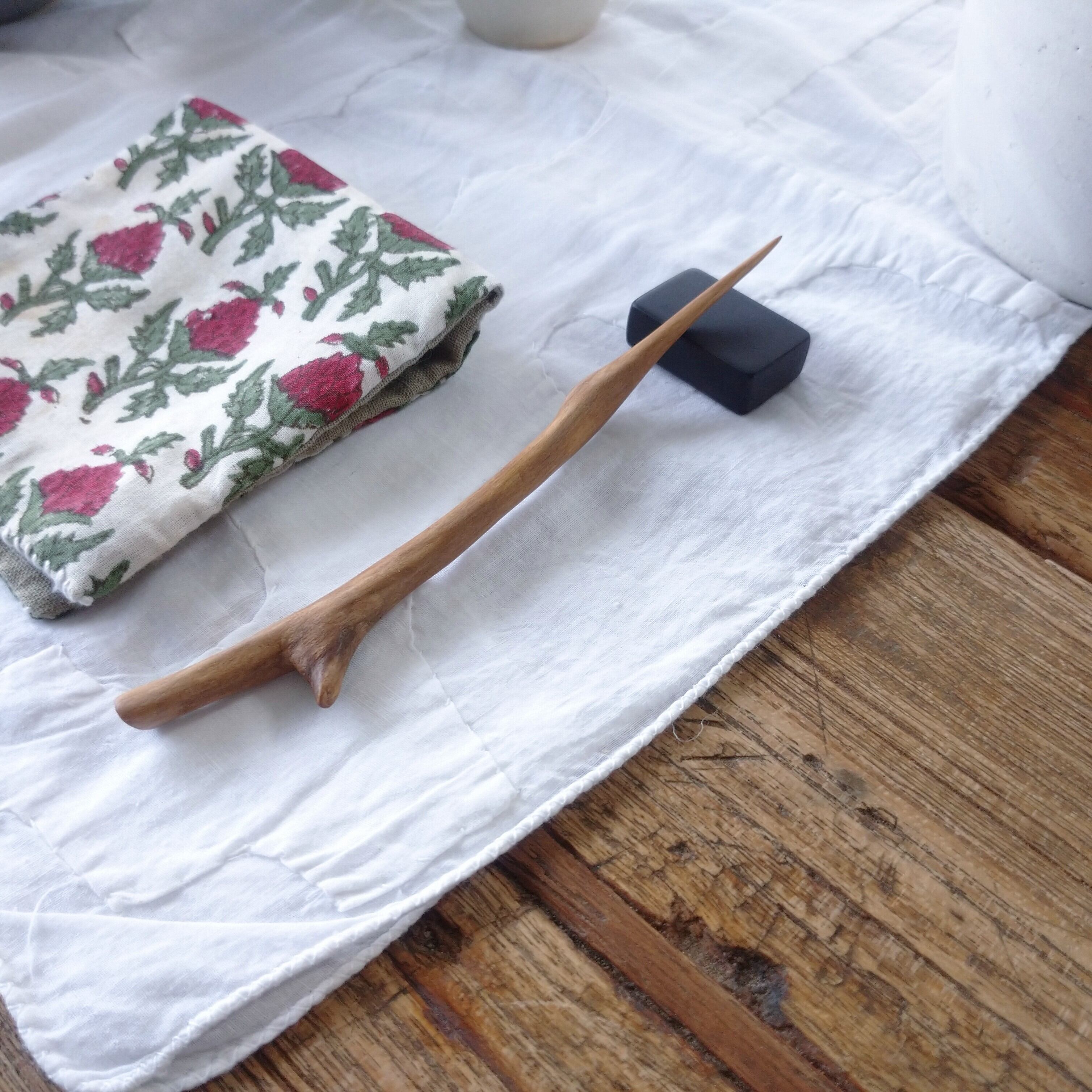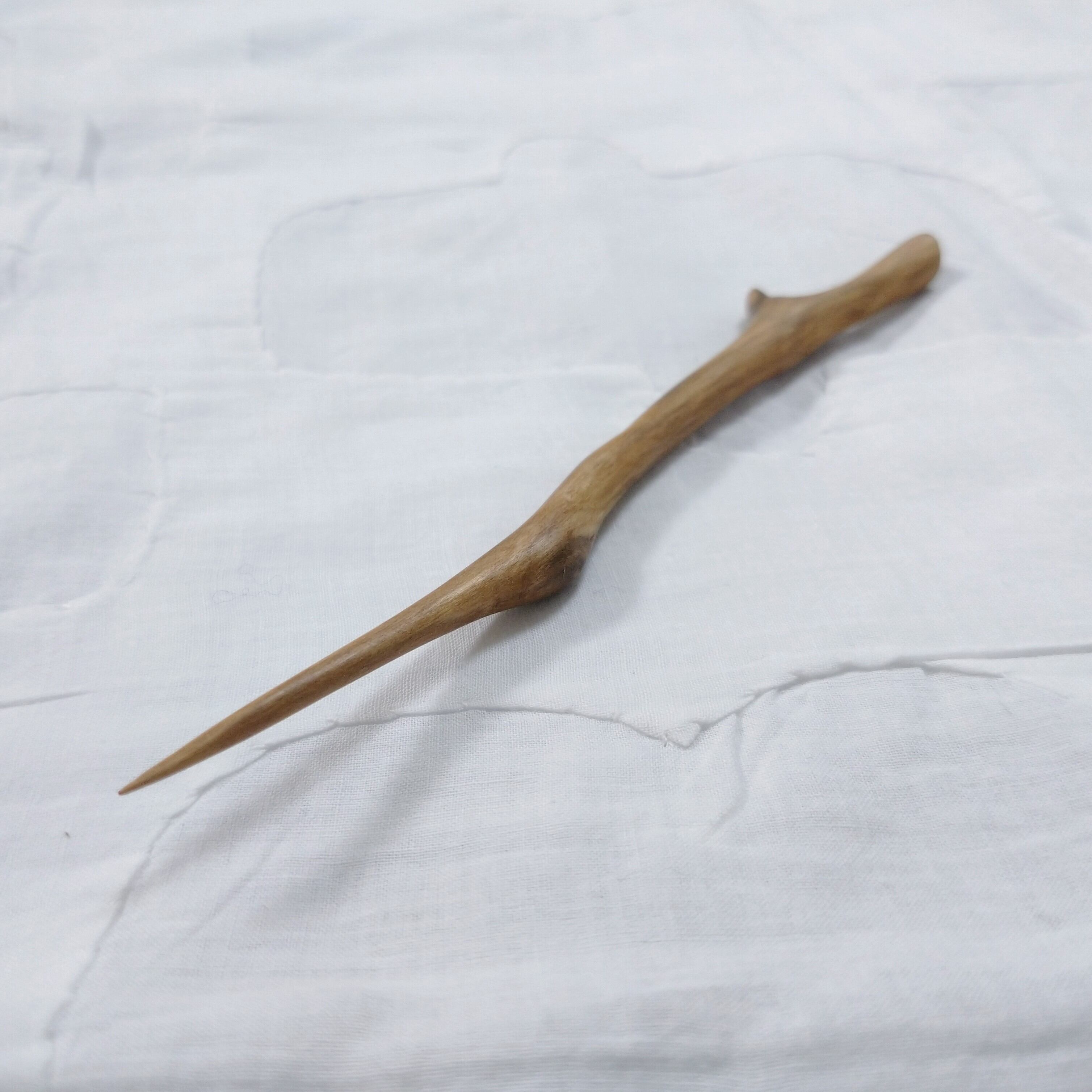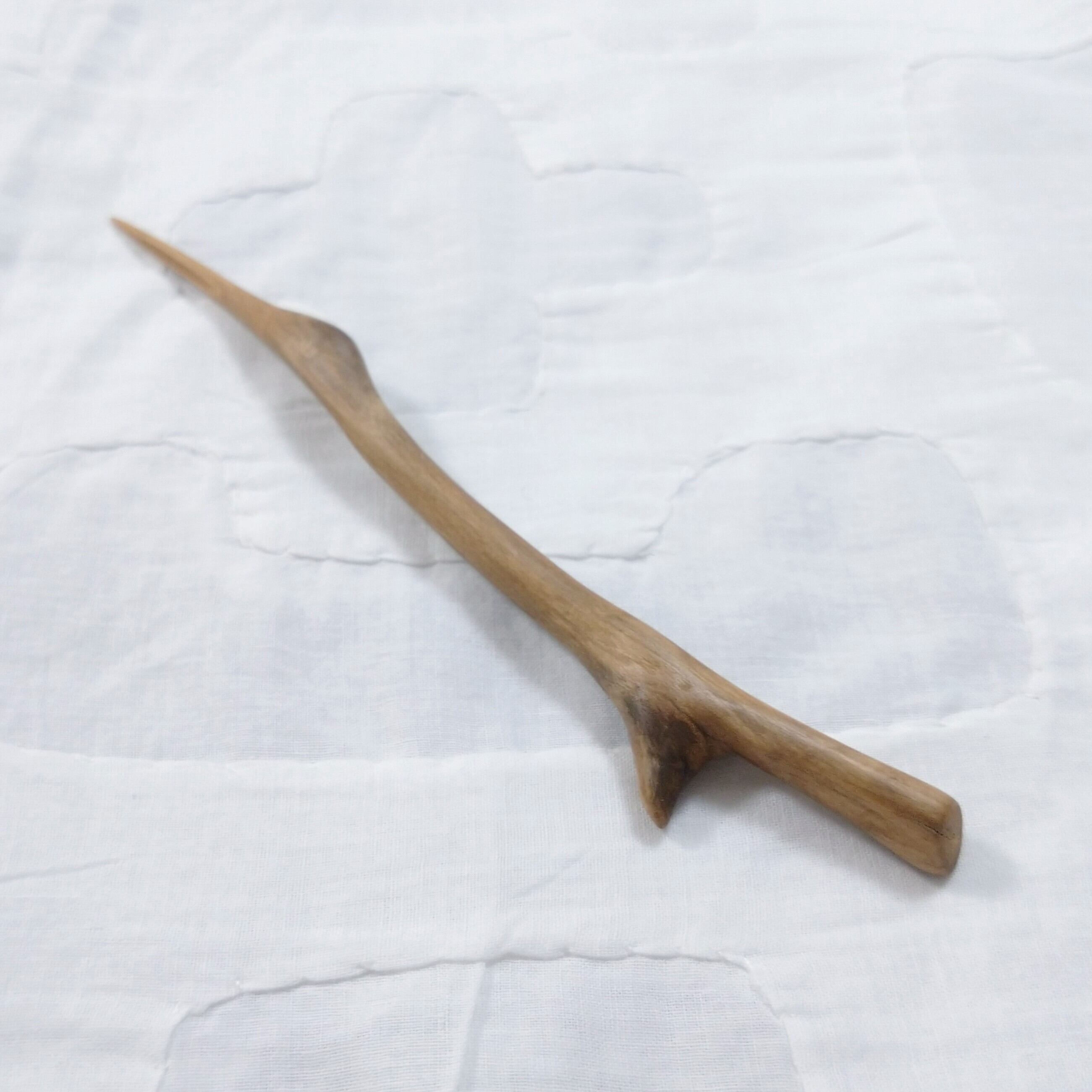 桜の枝を小刀で削った後にサンディングし、最後にクルミ油を塗って仕上げました。