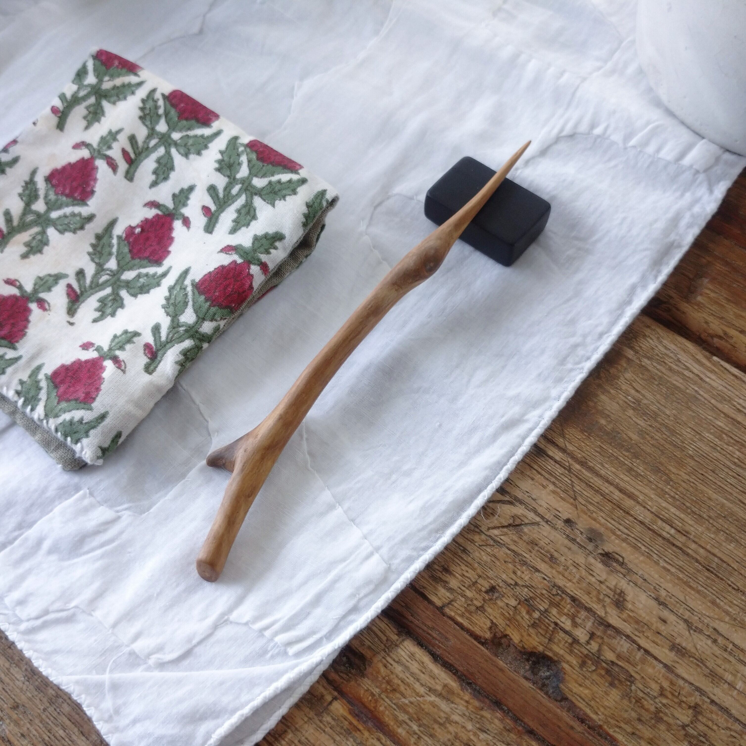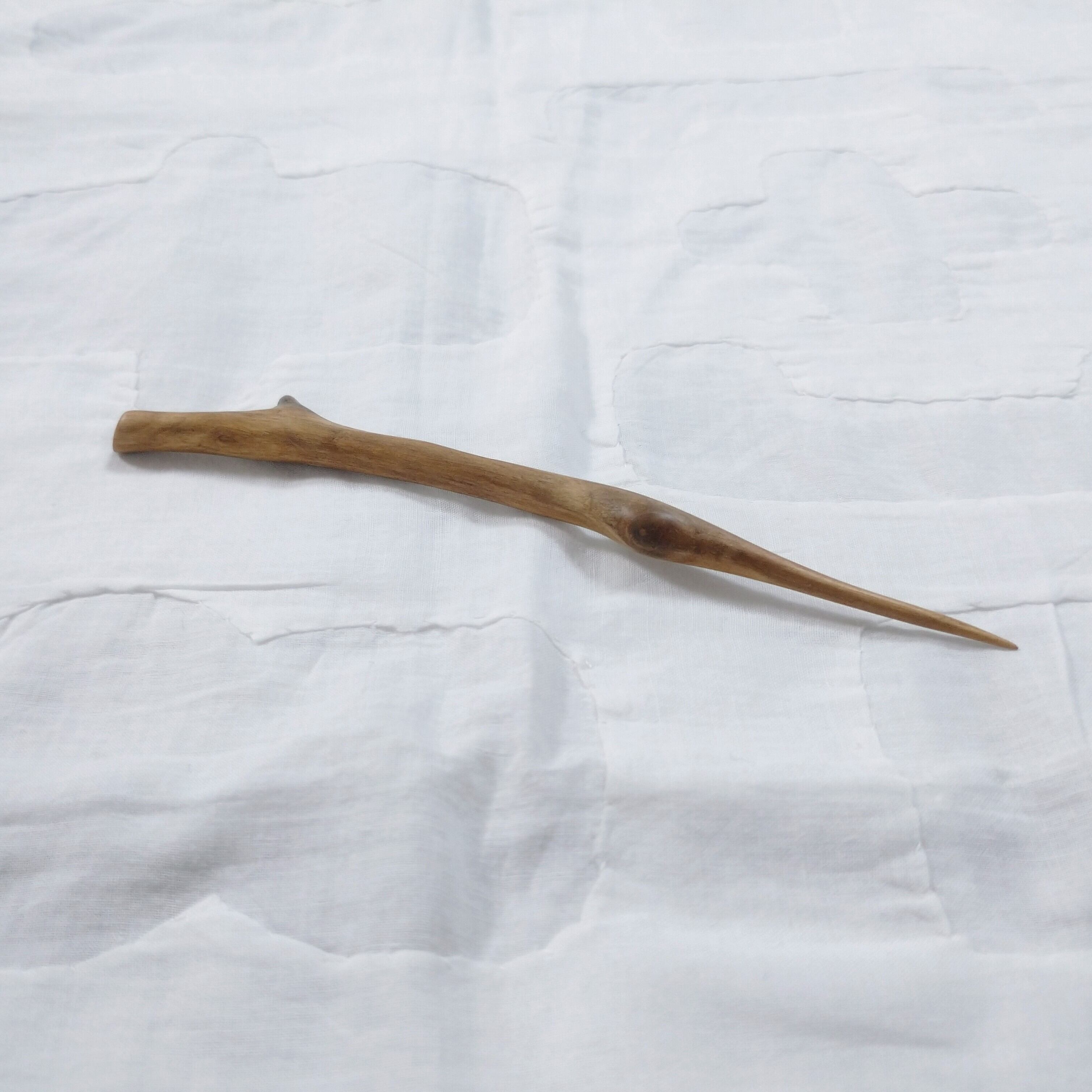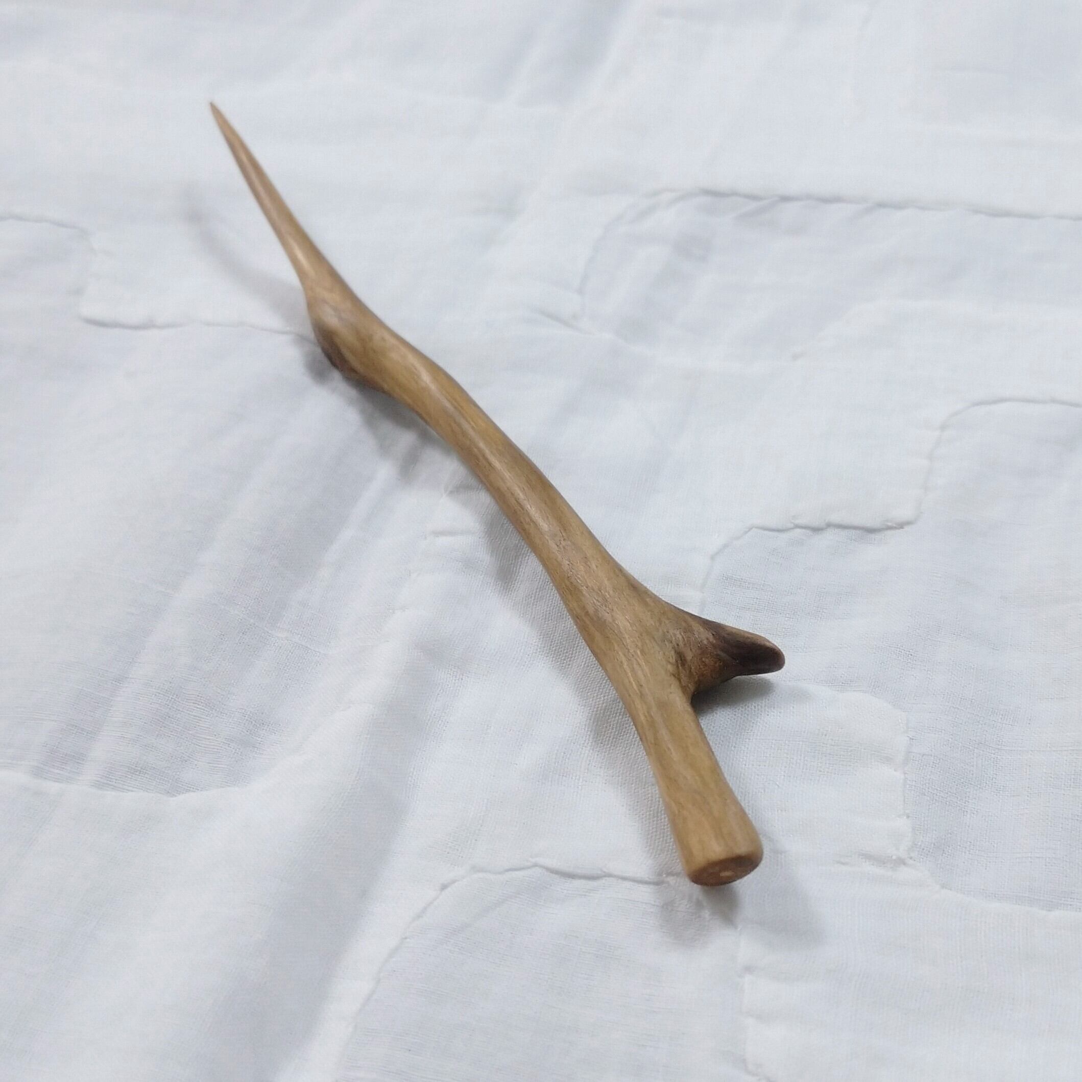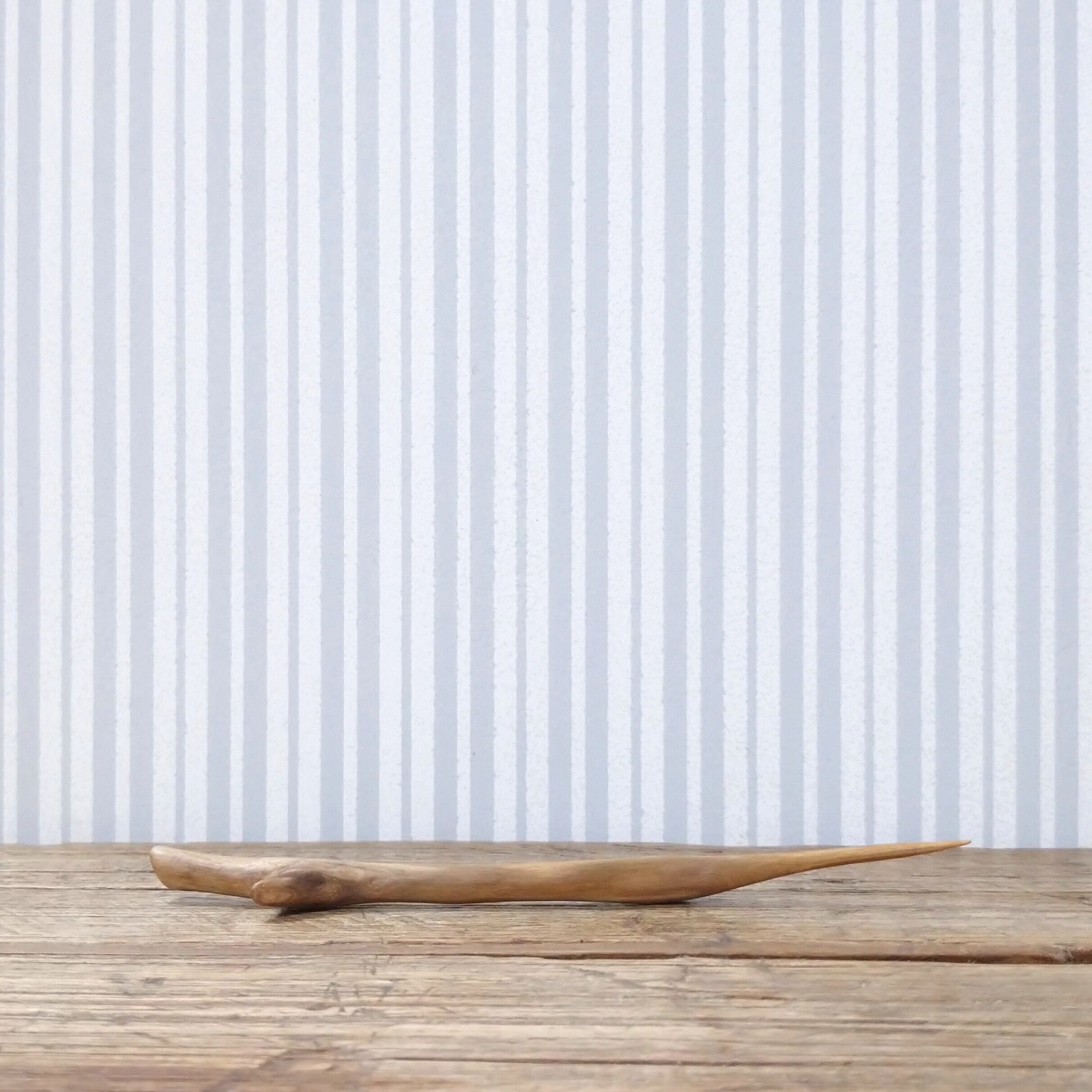 桜の枝を小刀で削った後にサンディングし、最後にクルミ油を塗って仕上げました。