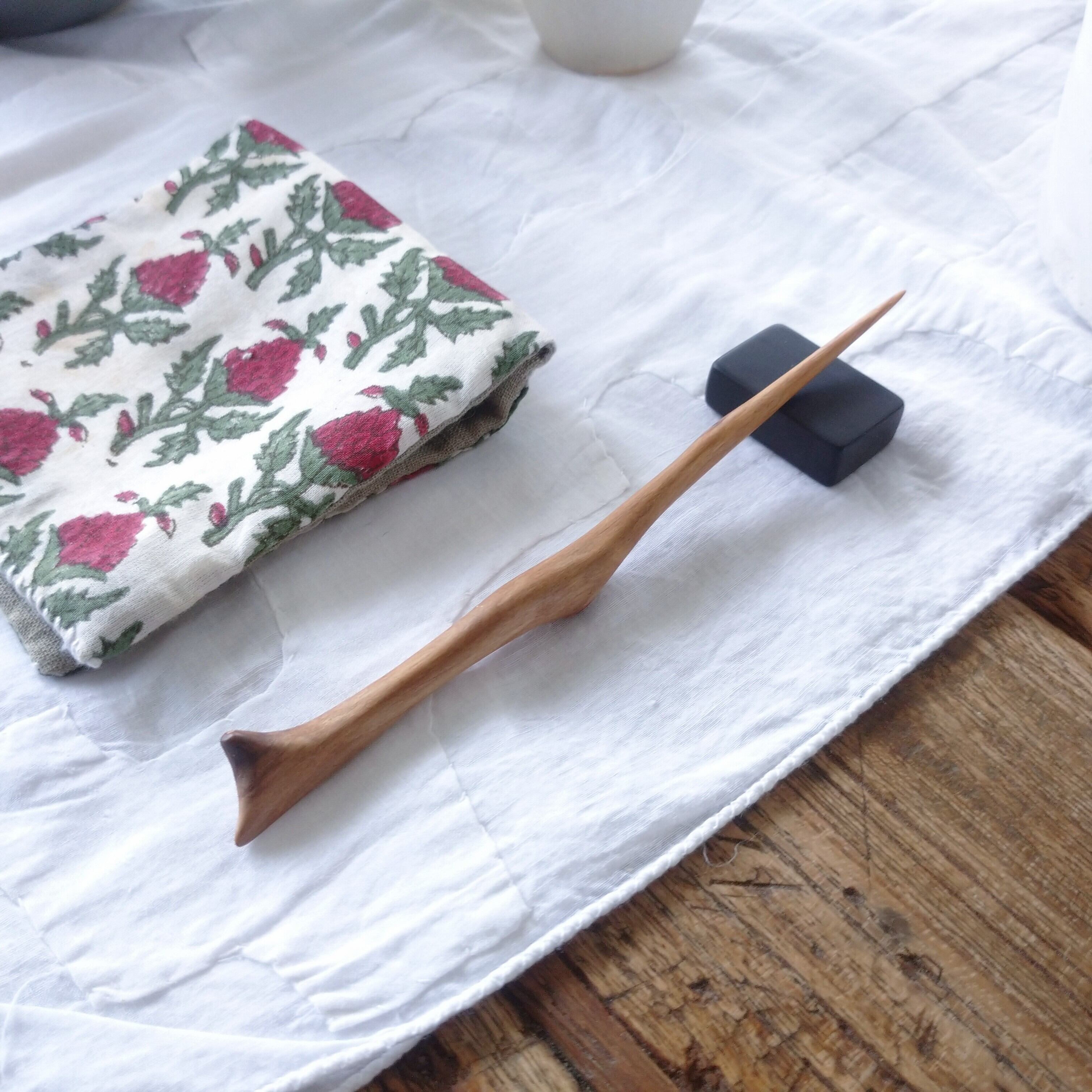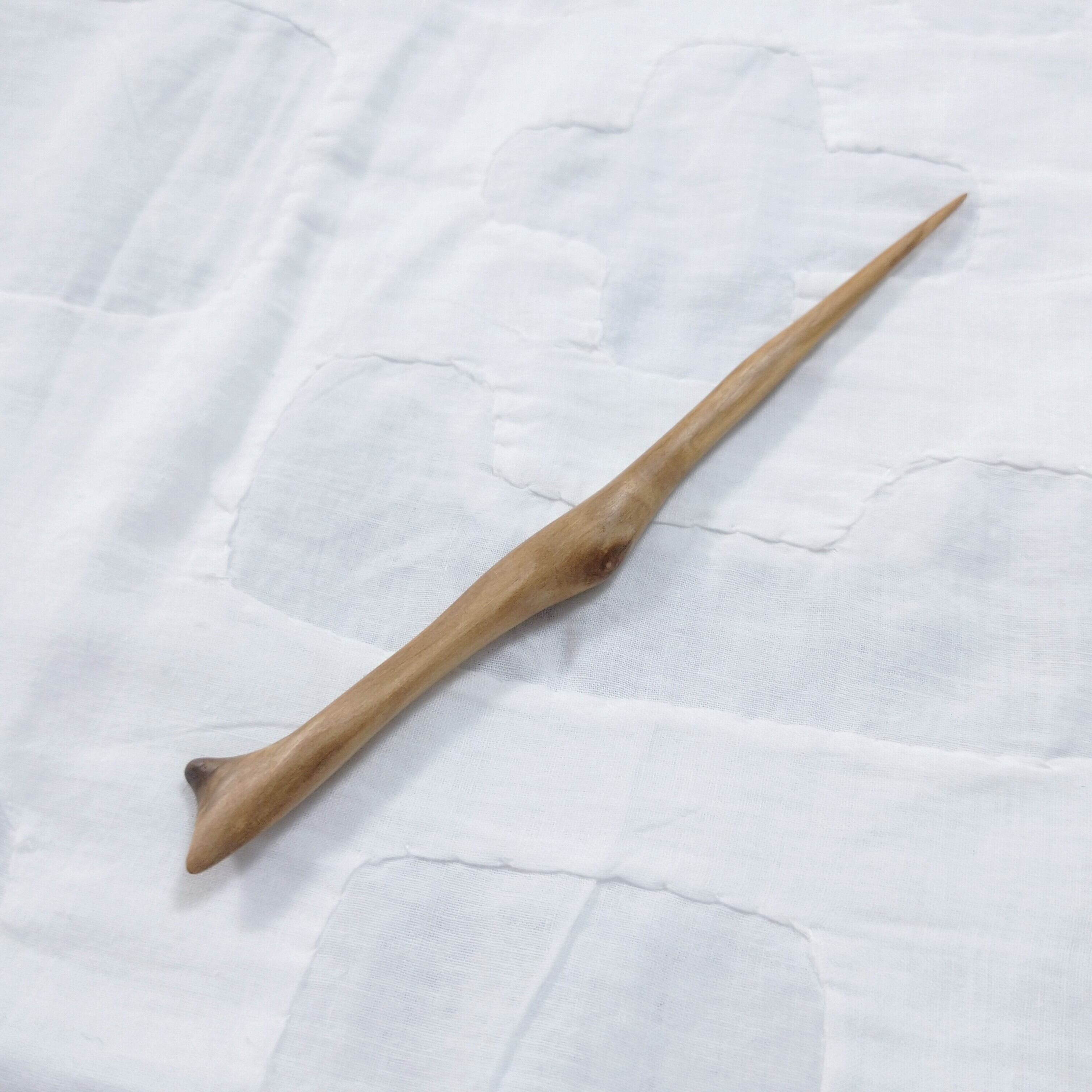 桜の枝を小刀で削った後にサンディングし、最後にクルミ油を塗って仕上げました。