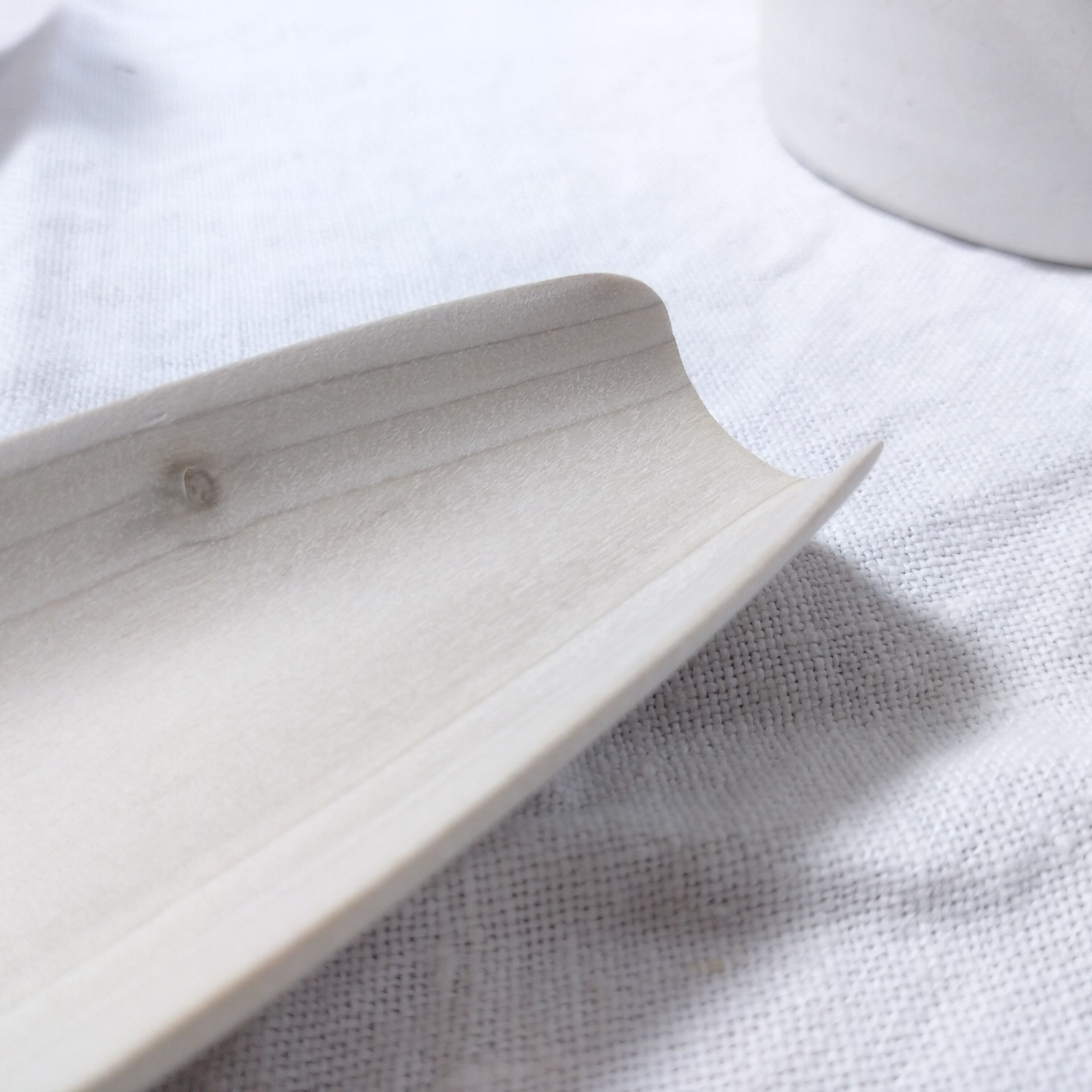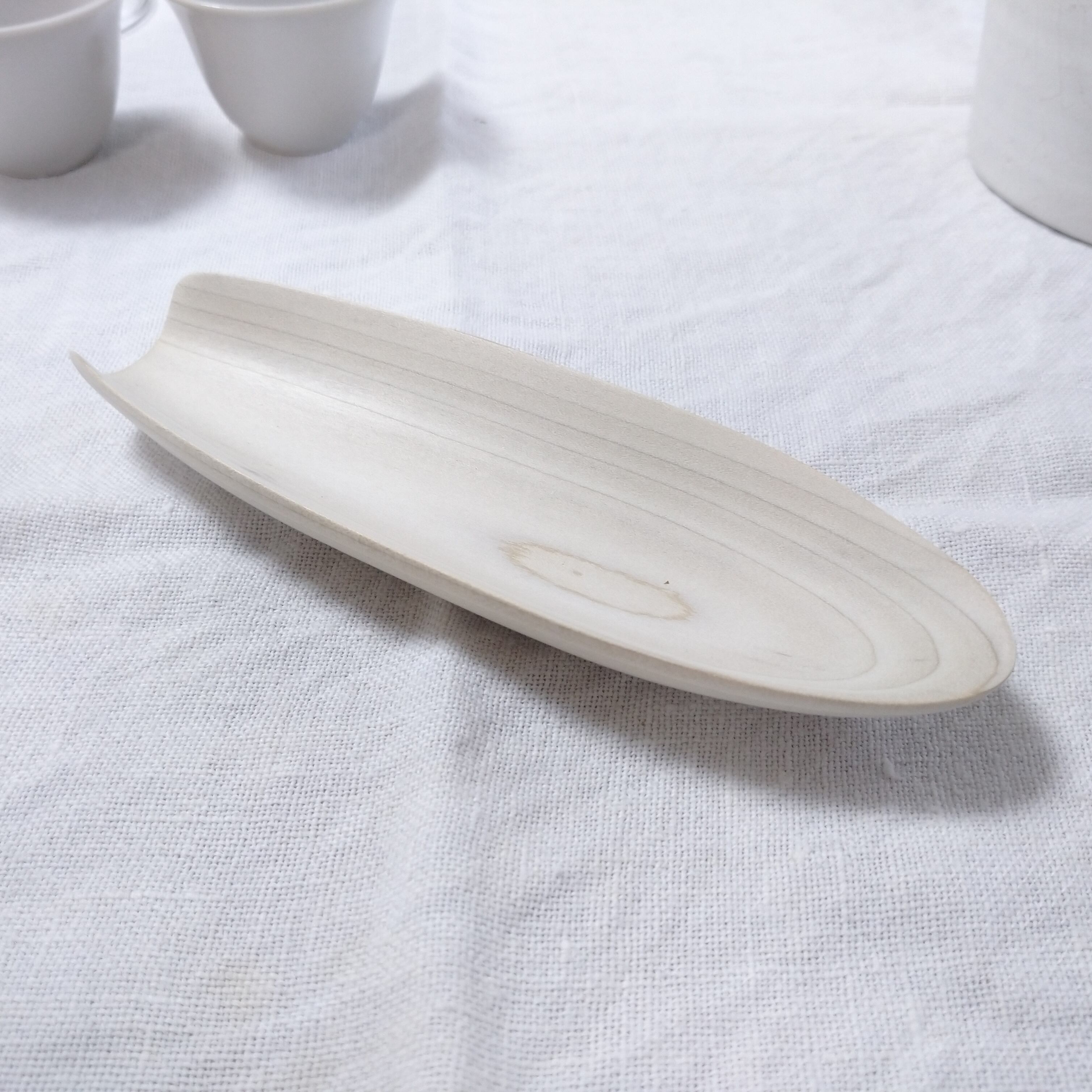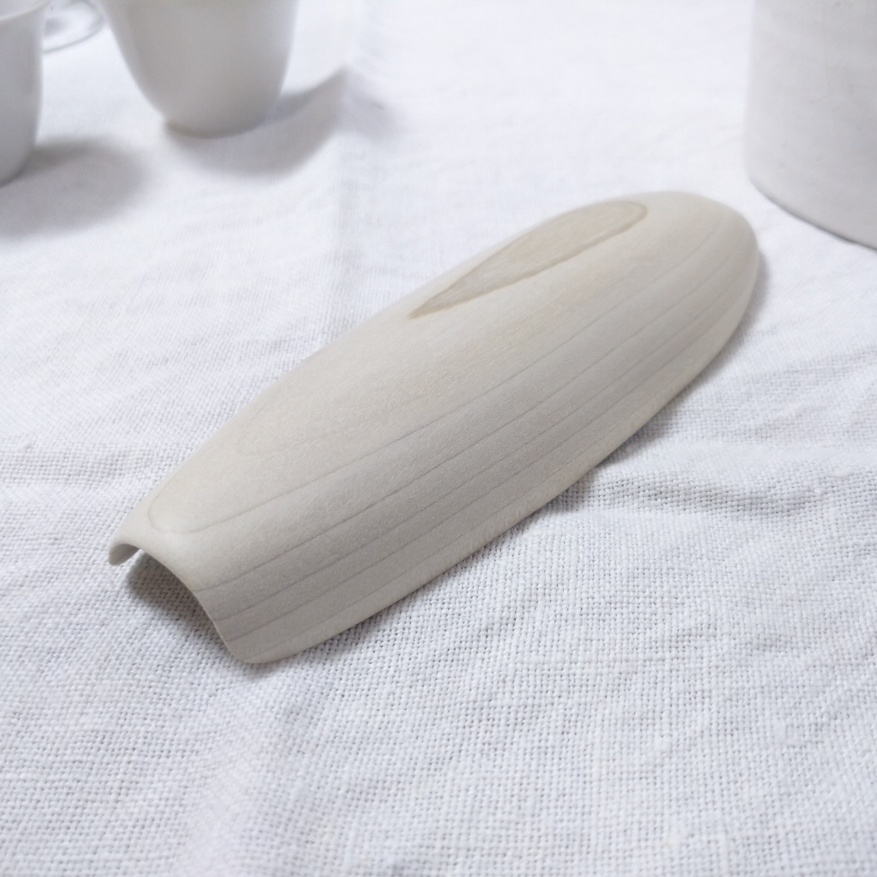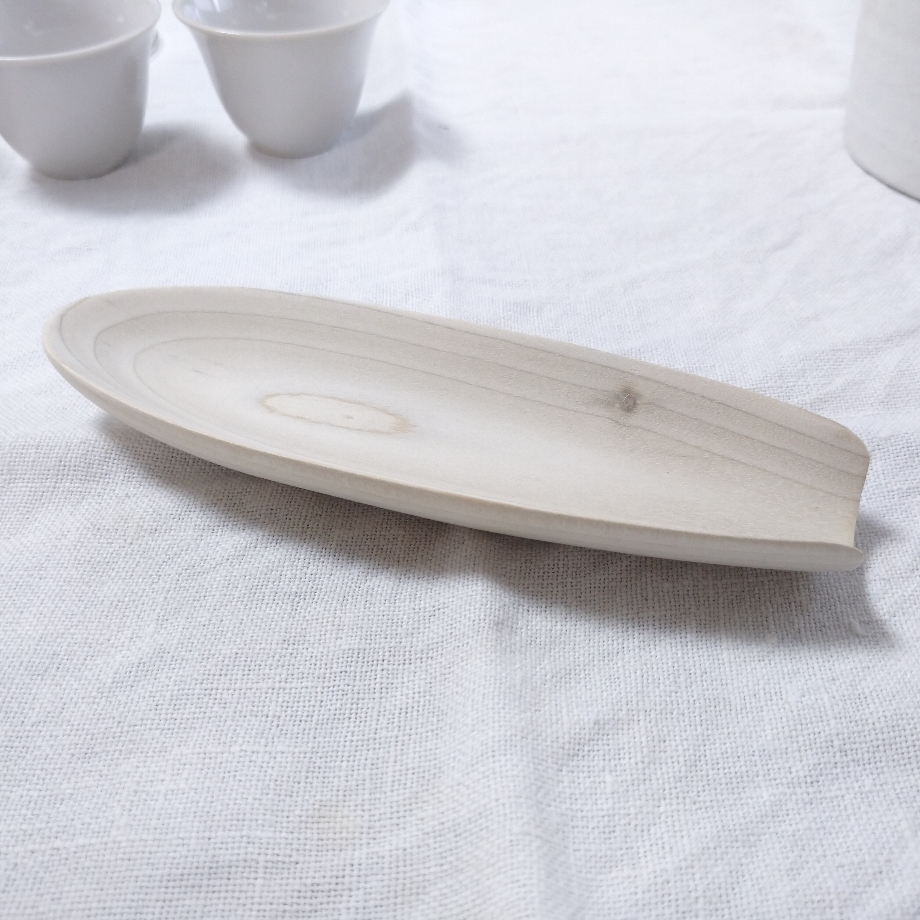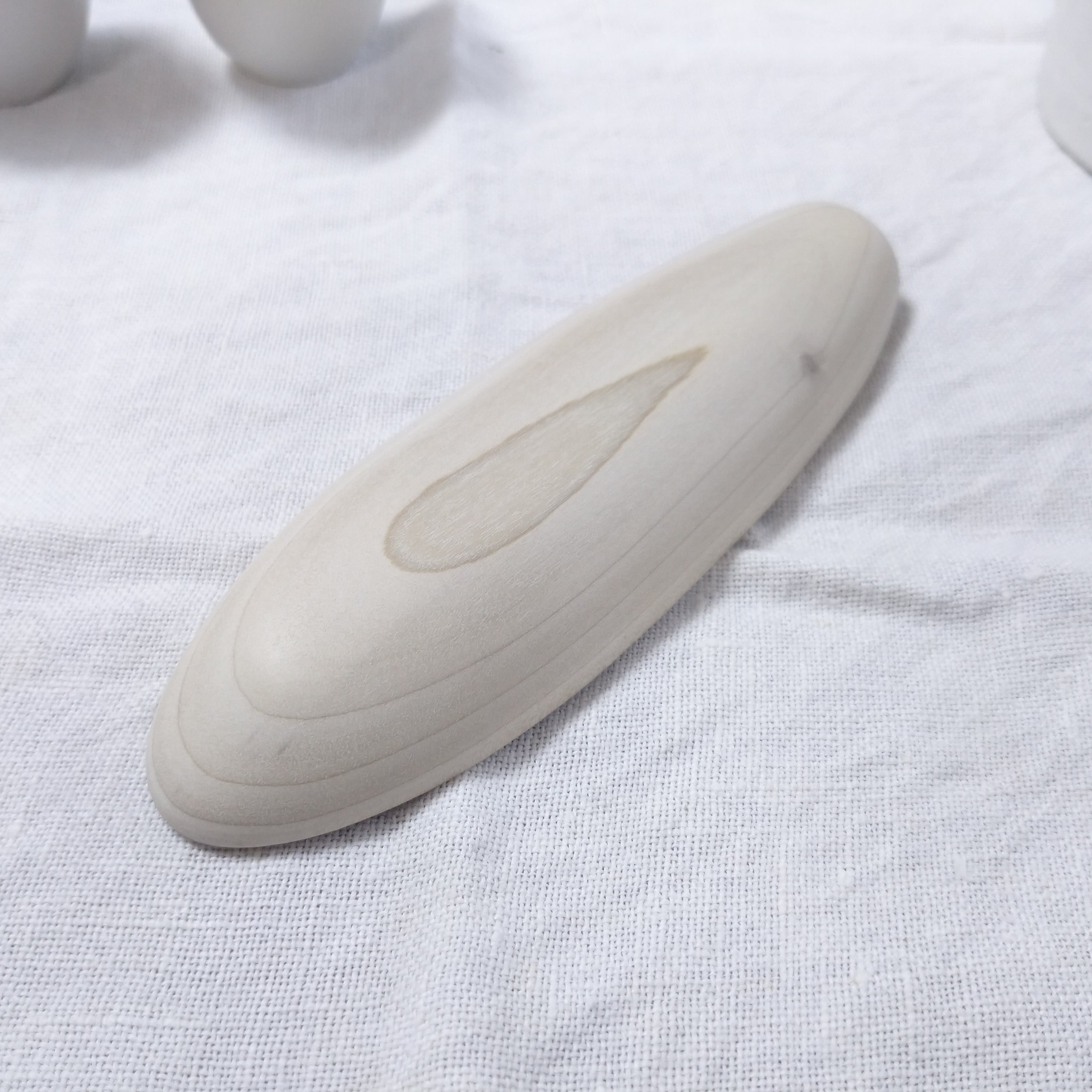 朴の木独特のクリームがかった白さがきれいな茶則ができました。木地の白さを残すため、無塗装で仕上げています。