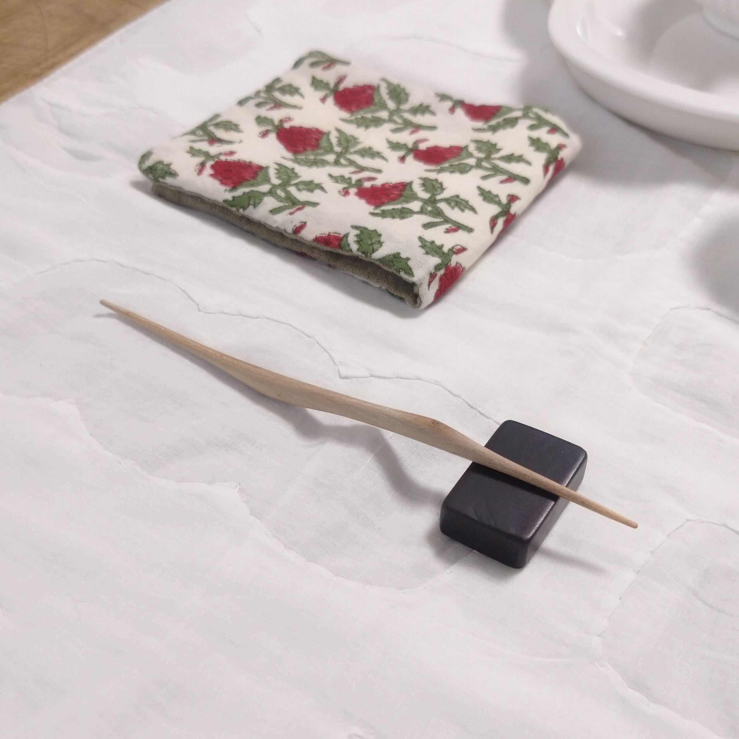 太めの桜の枝から小刀で削り出した後にサンディング(#1000)し、滑らかに仕上げました。