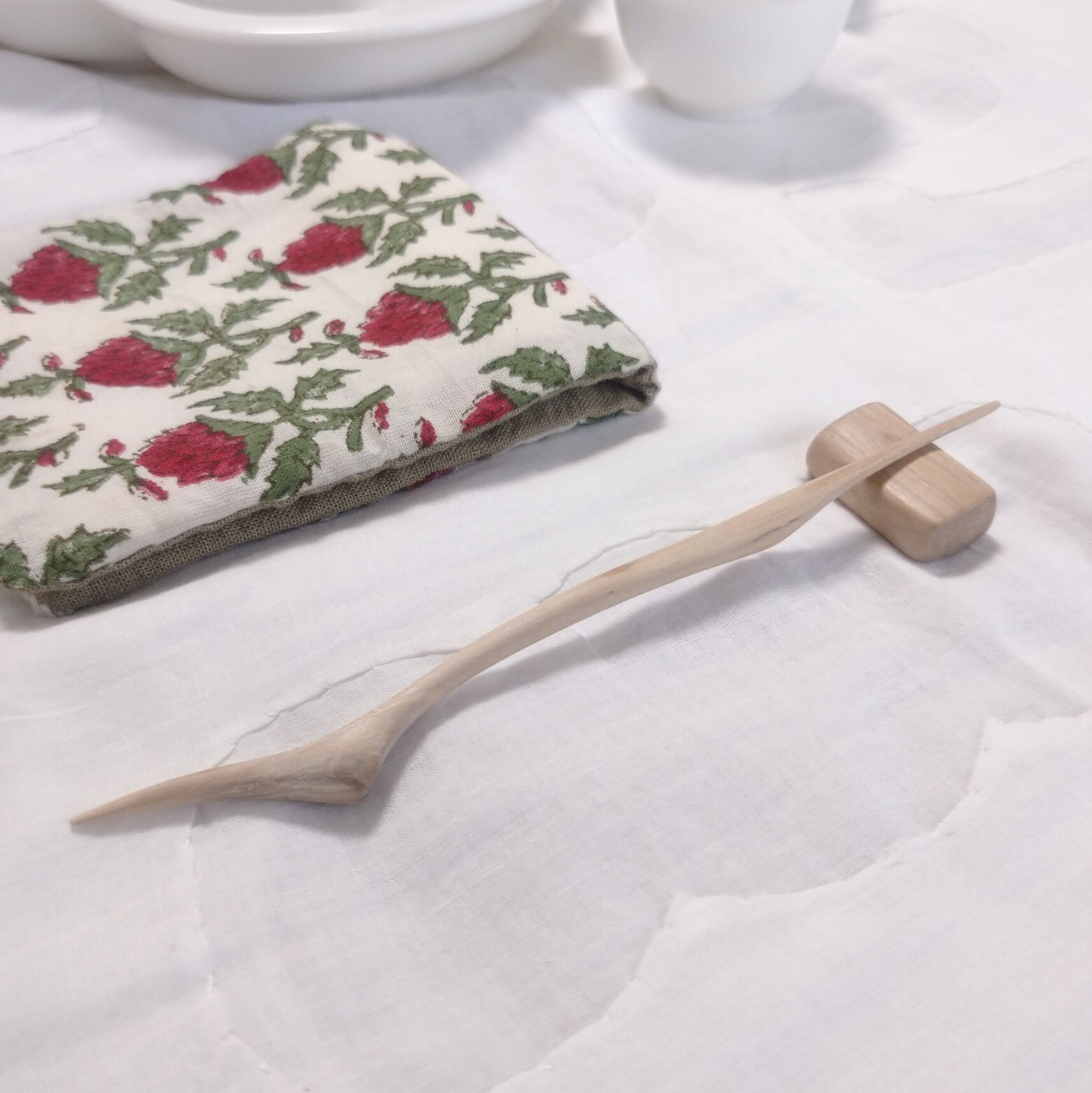 太めの桜の枝から小刀で削り出した後にサンディング(#1000)し、滑らかに仕上げました。