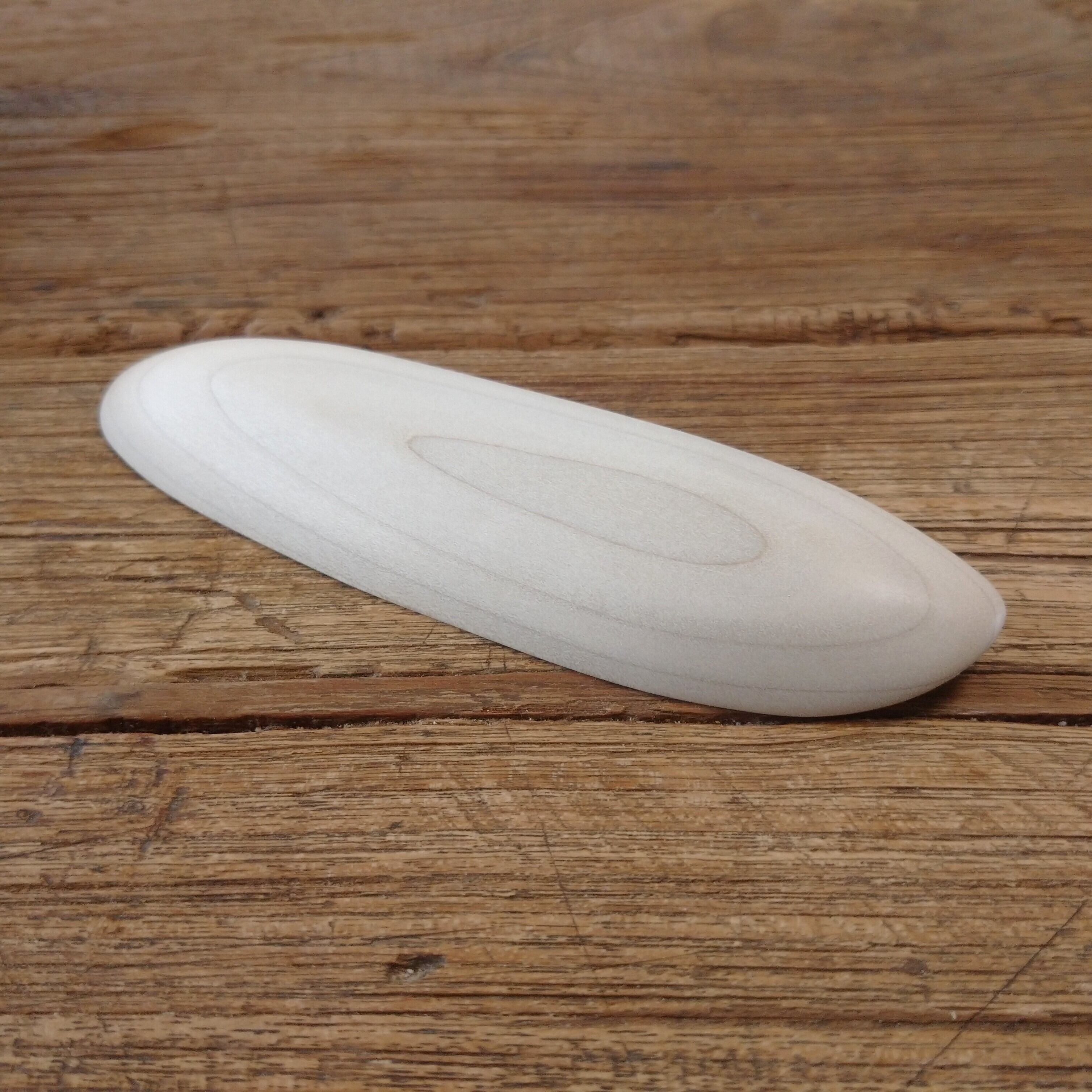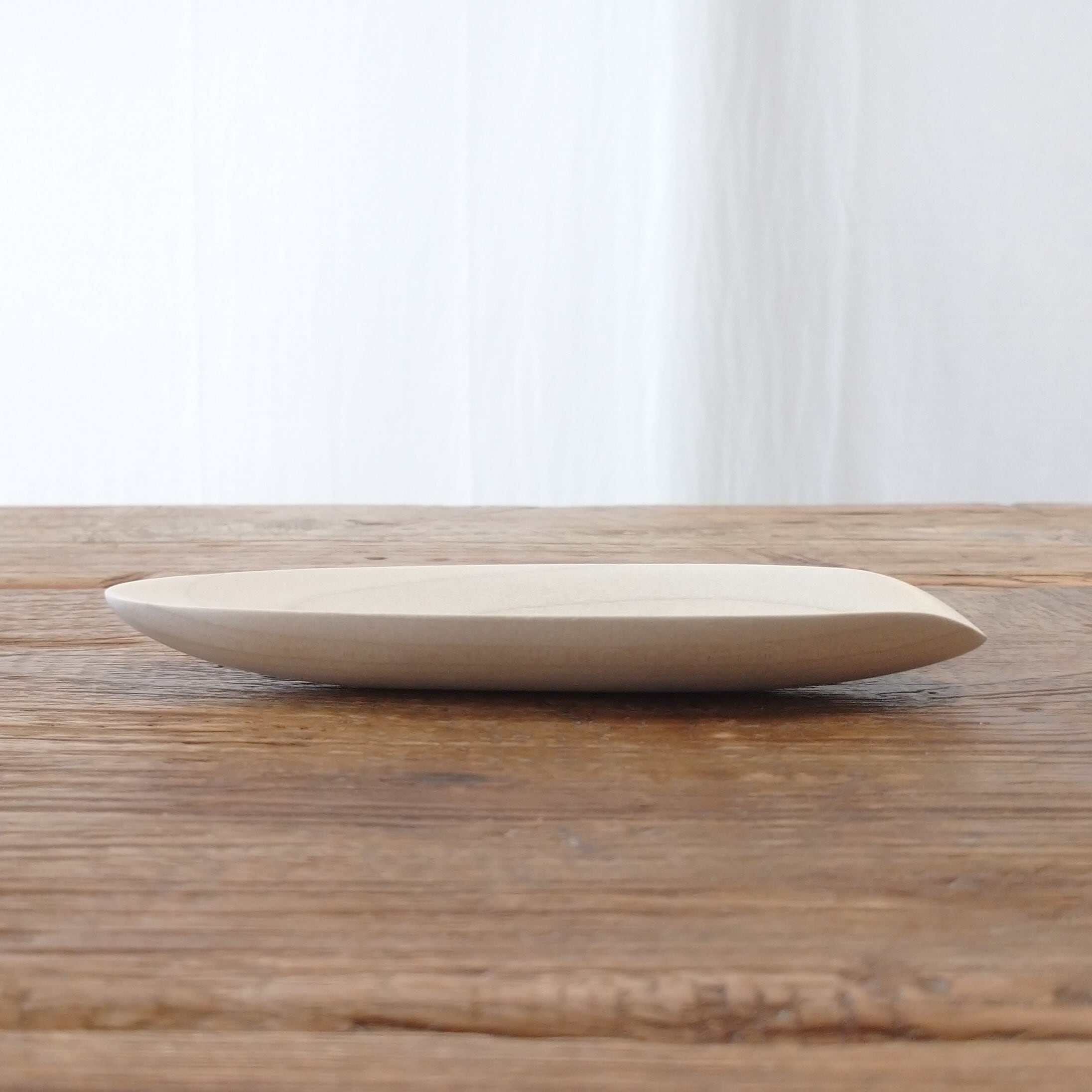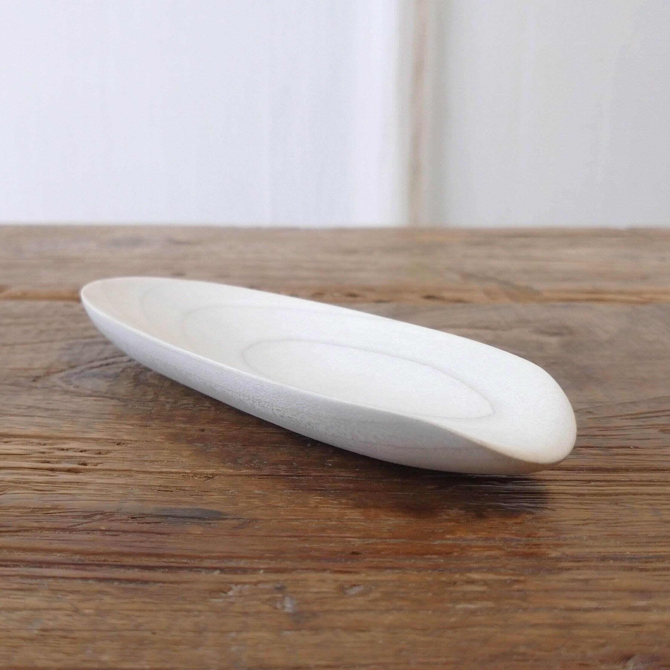 ノミ、鉋、彫刻刀などを使って削り出し、最後にサンディングをして滑らかに仕上げました。塗装はしていません。
