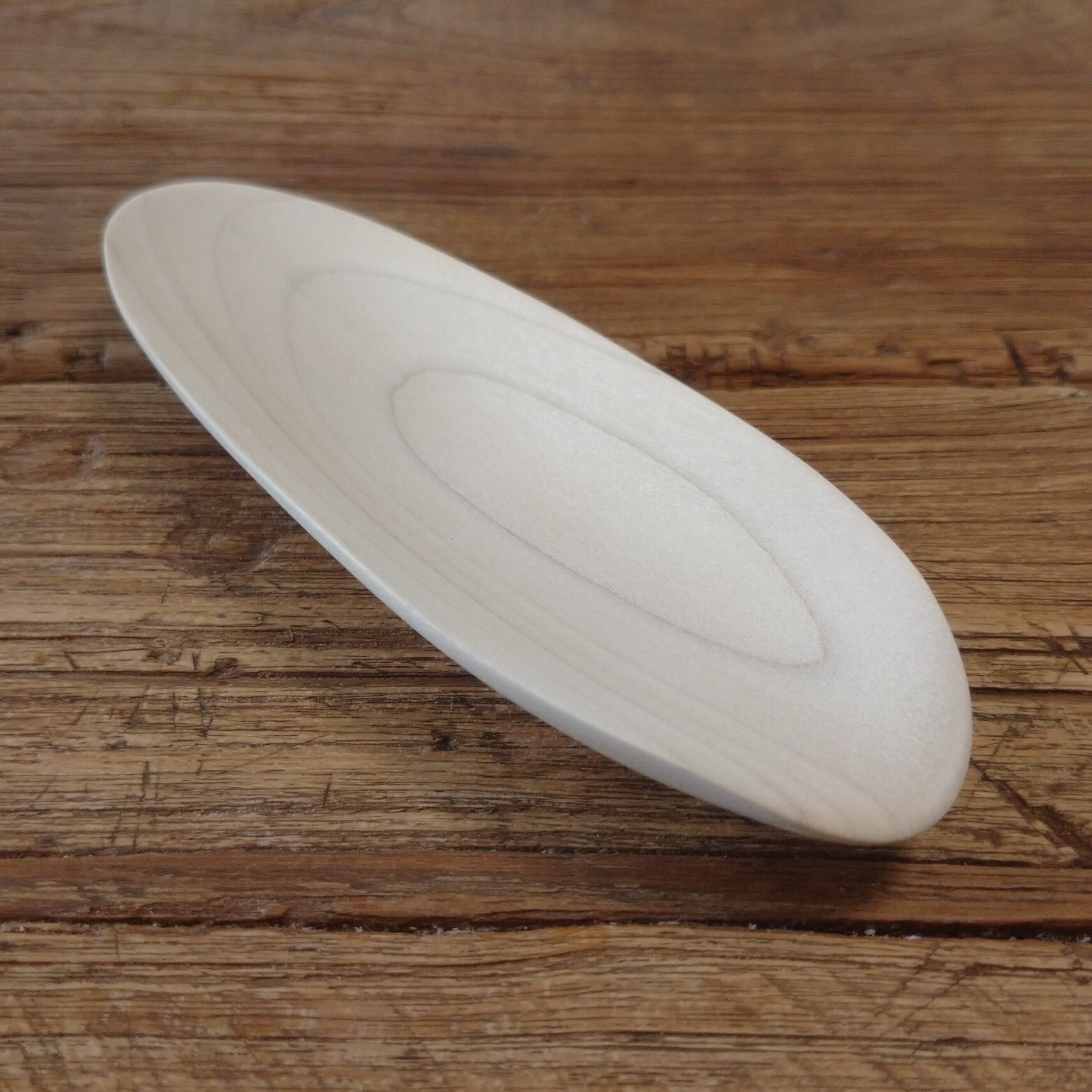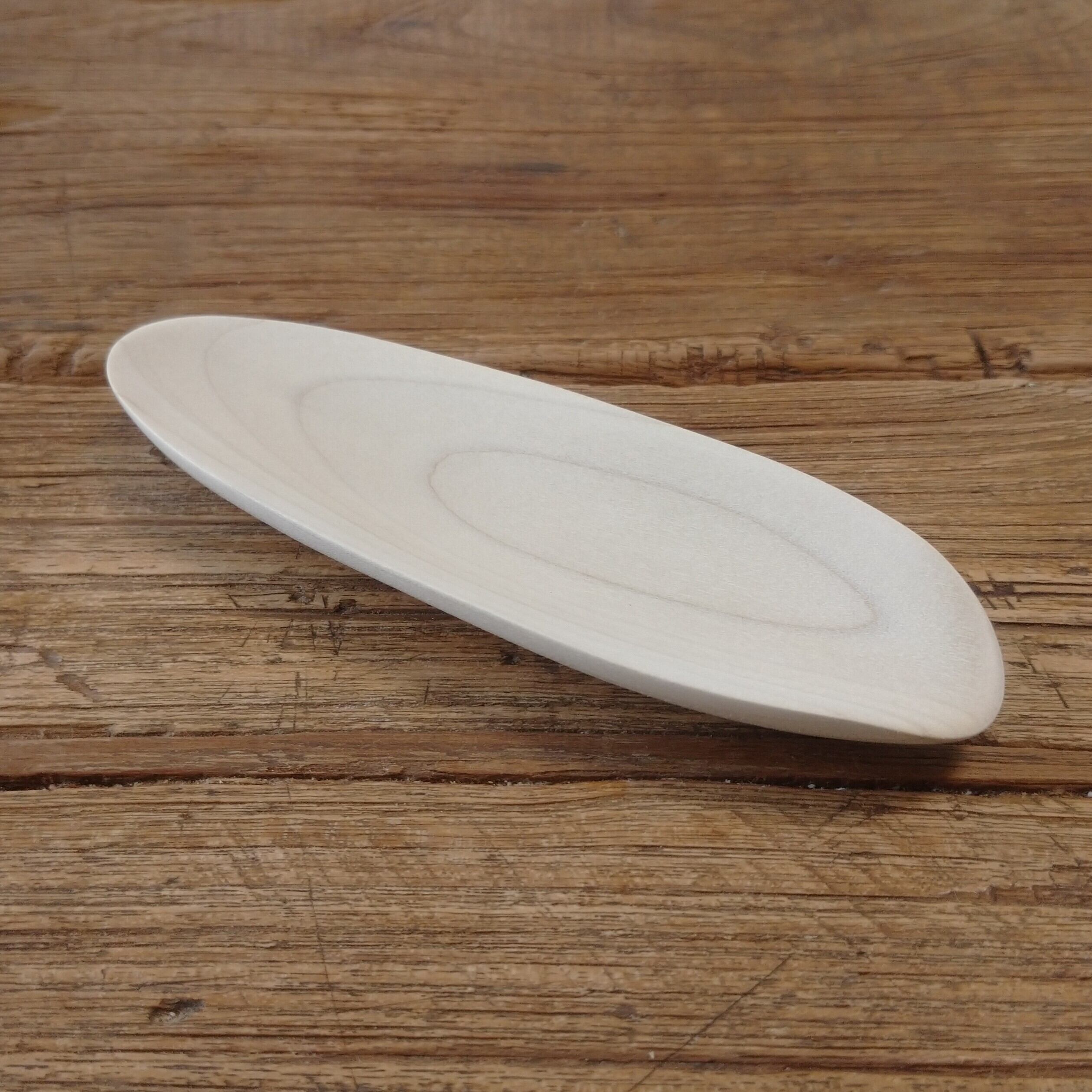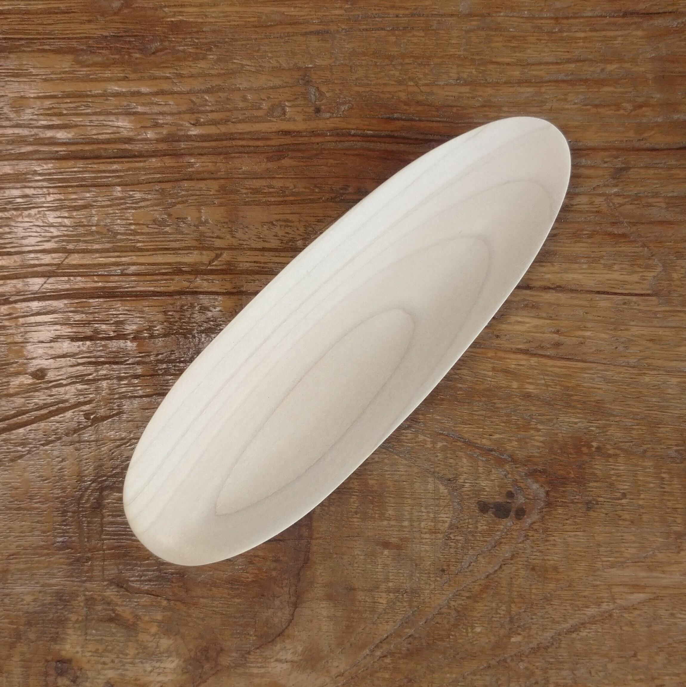 ノミ、鉋、彫刻刀などを使って削り出し、最後にサンディングをして滑らかに仕上げました。塗装はしていません。
