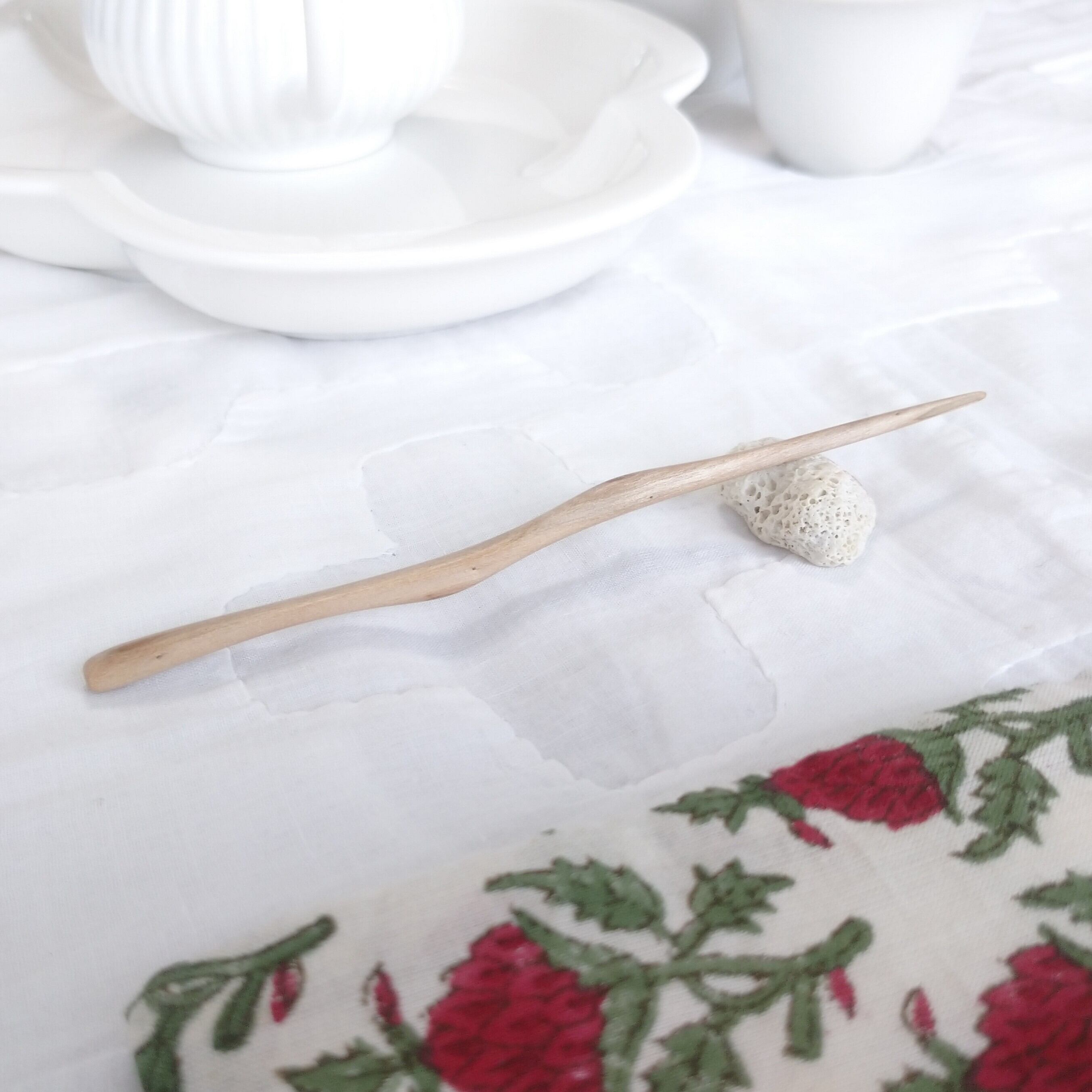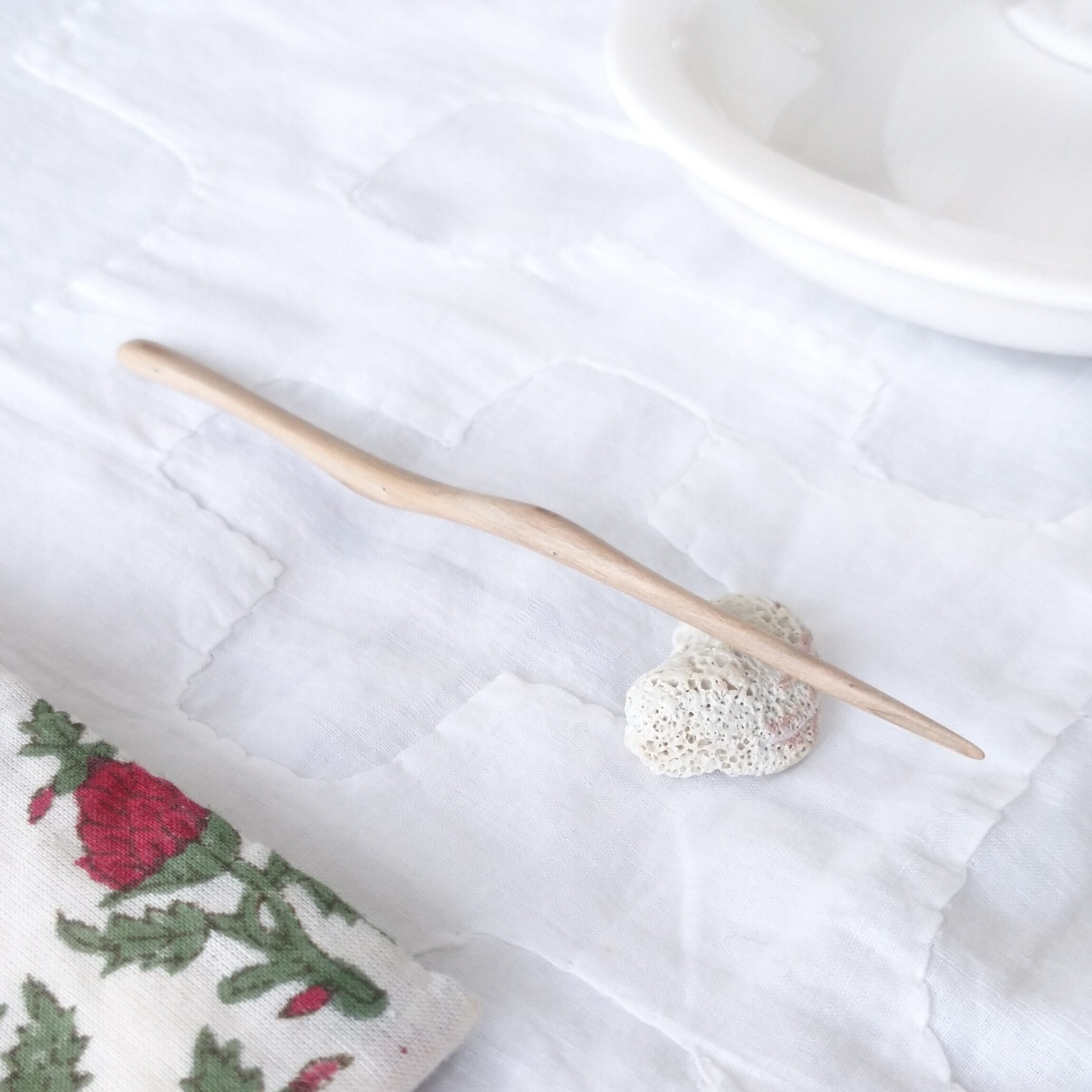 太めの桜の枝から小刀で削り出した後にサンディングし、滑らかに仕上げました。