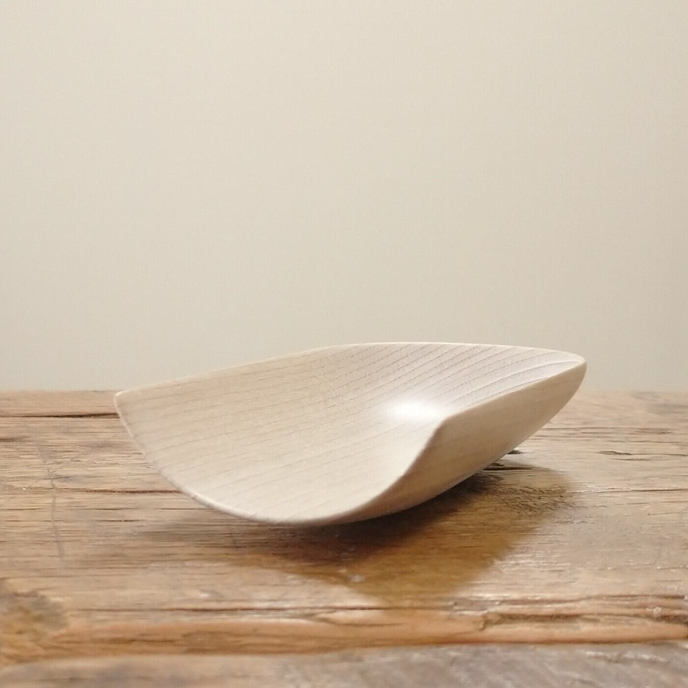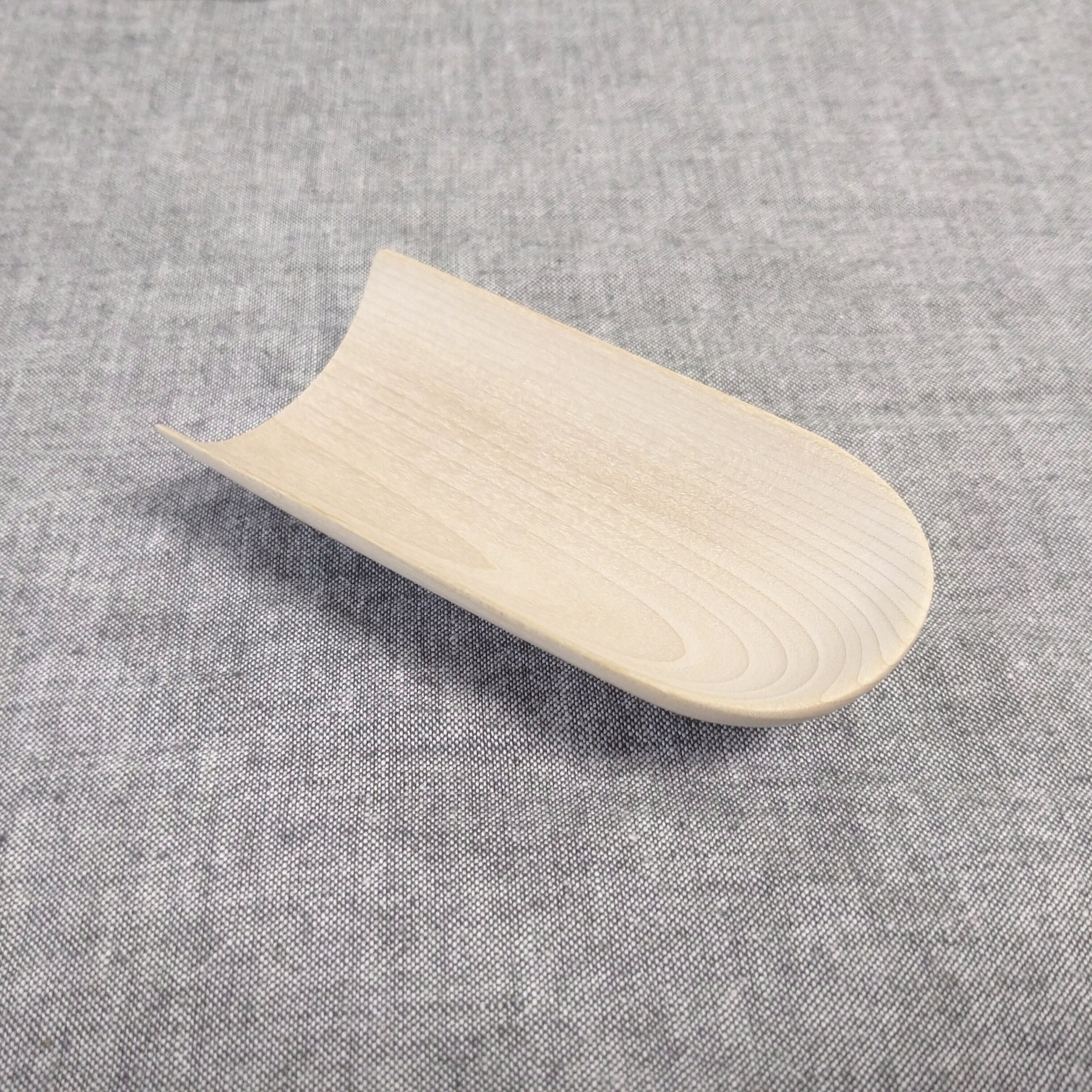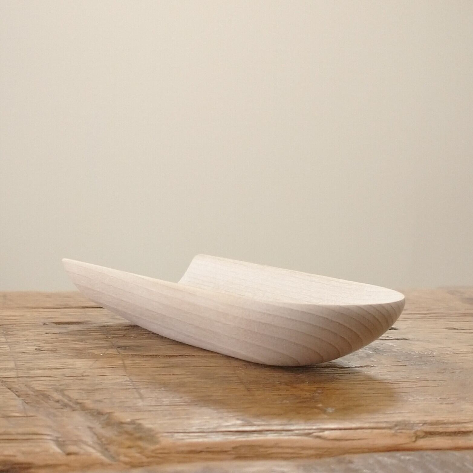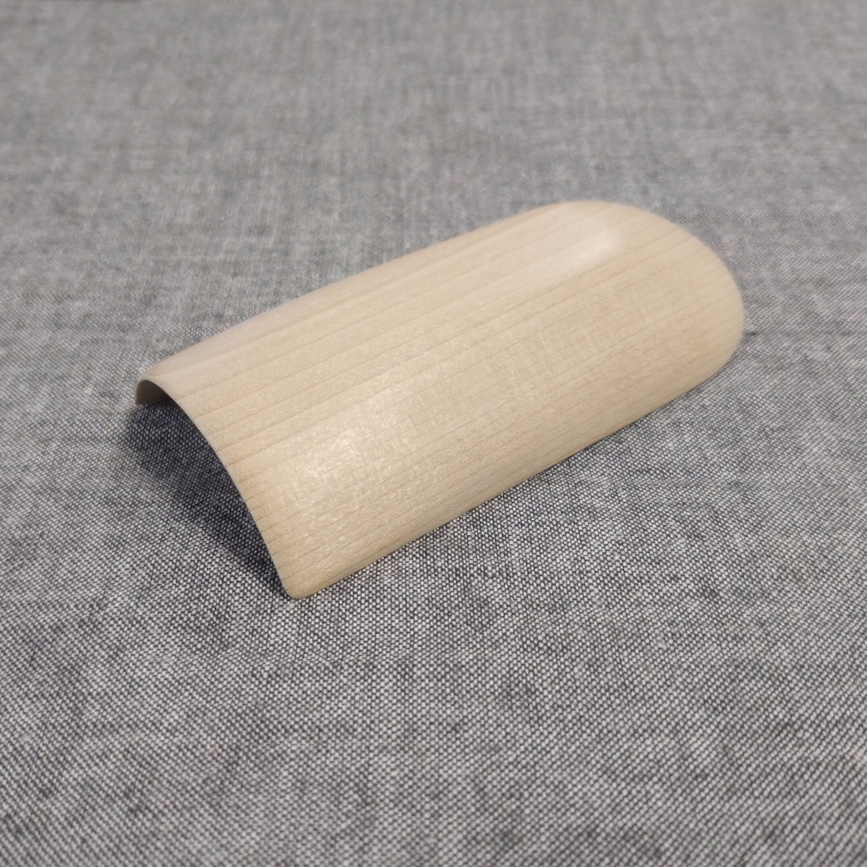 ノミ、鉋、彫刻刀などを使って削り出し、最後にやすりがけ(仕上げ#1000)をして滑らかに仕上げました。塗装はしていません。