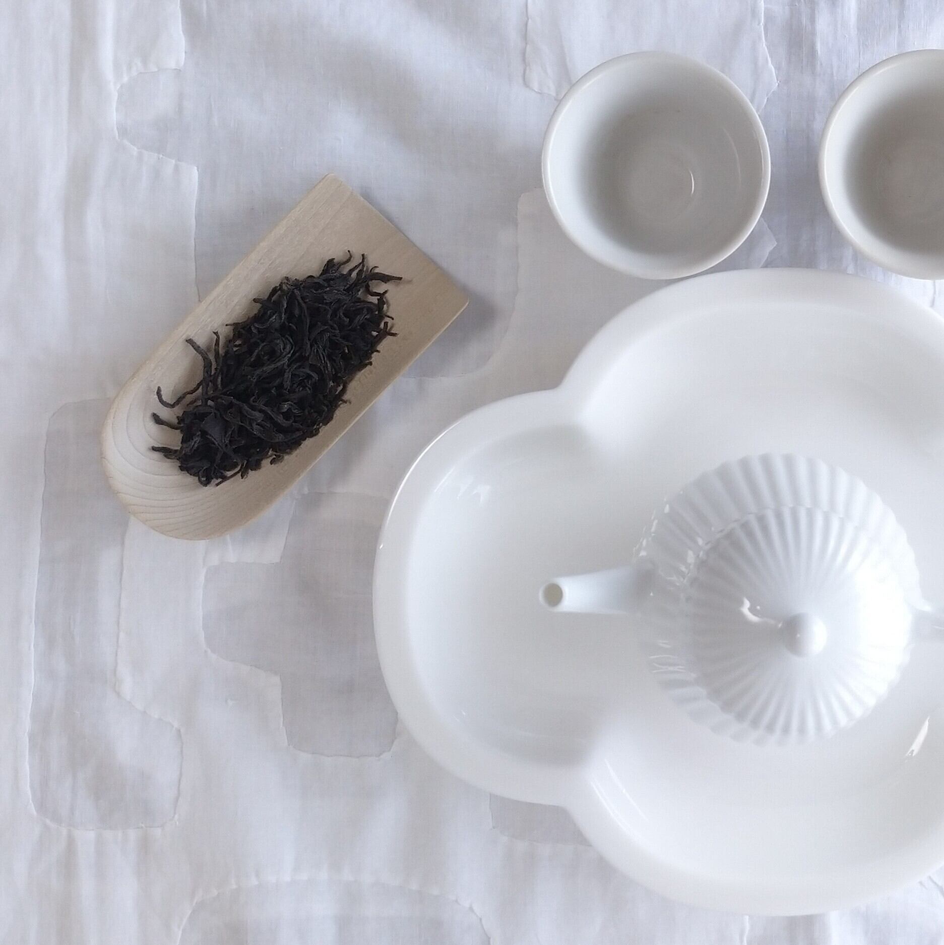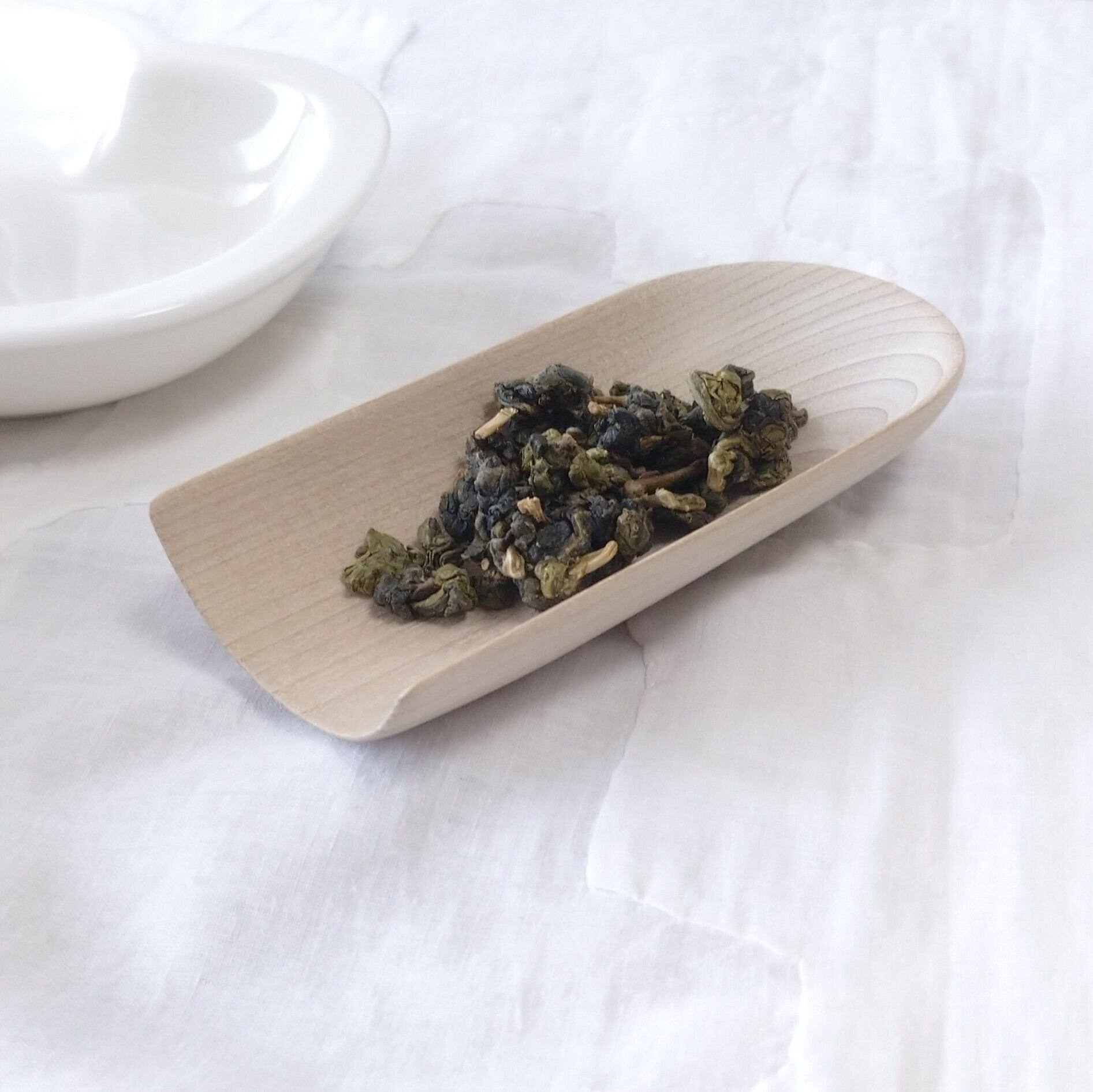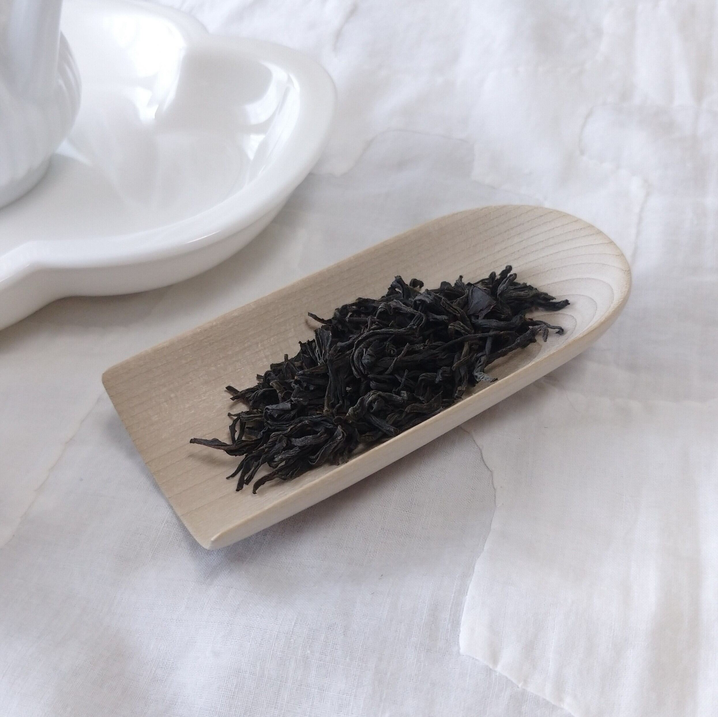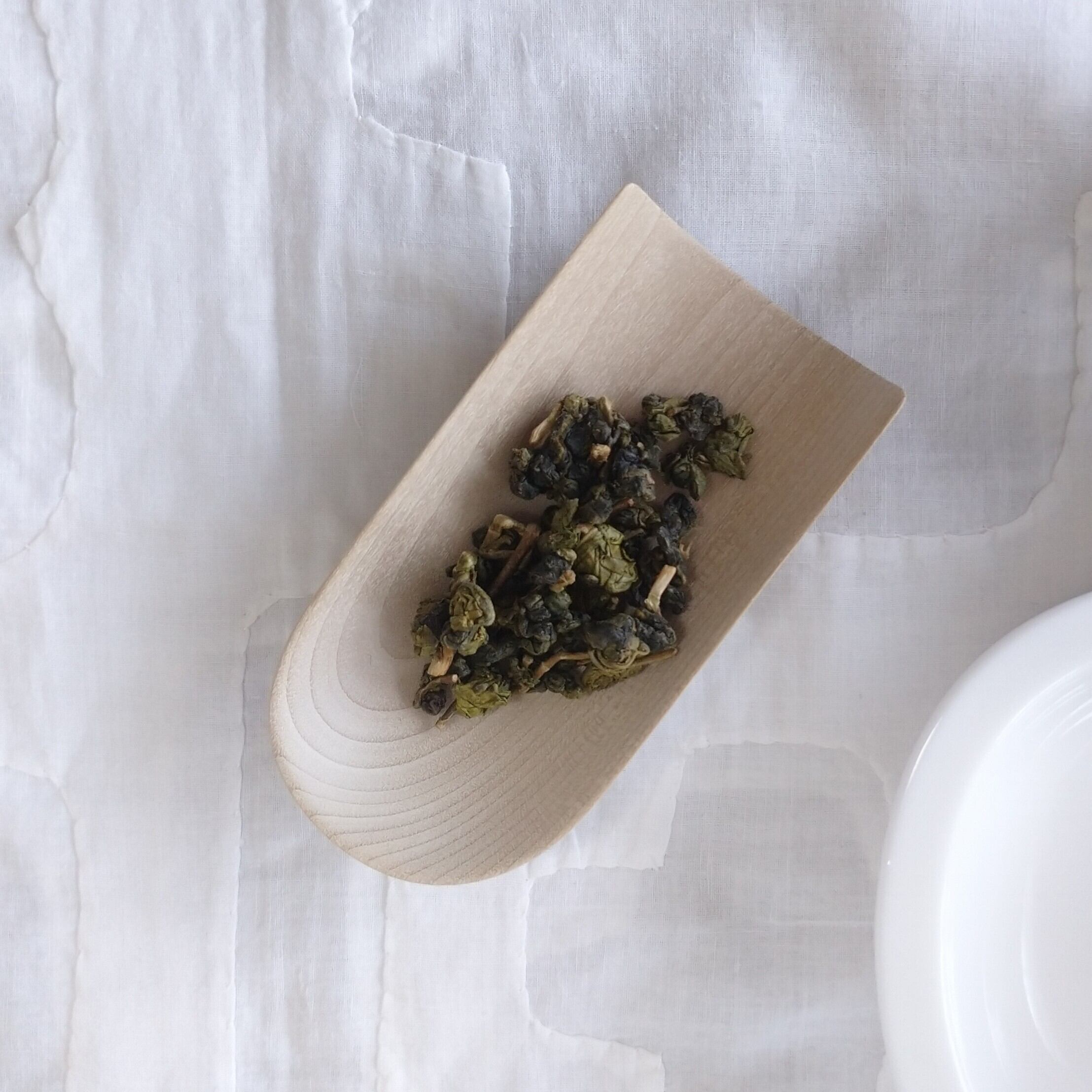 やや浅めの茶則なので、小さめ~中程度の茶葉を載せるのに向いています。(写真はそれぞれ、武夷野生紅茶を3g、梨山烏龍を5g載せています。)