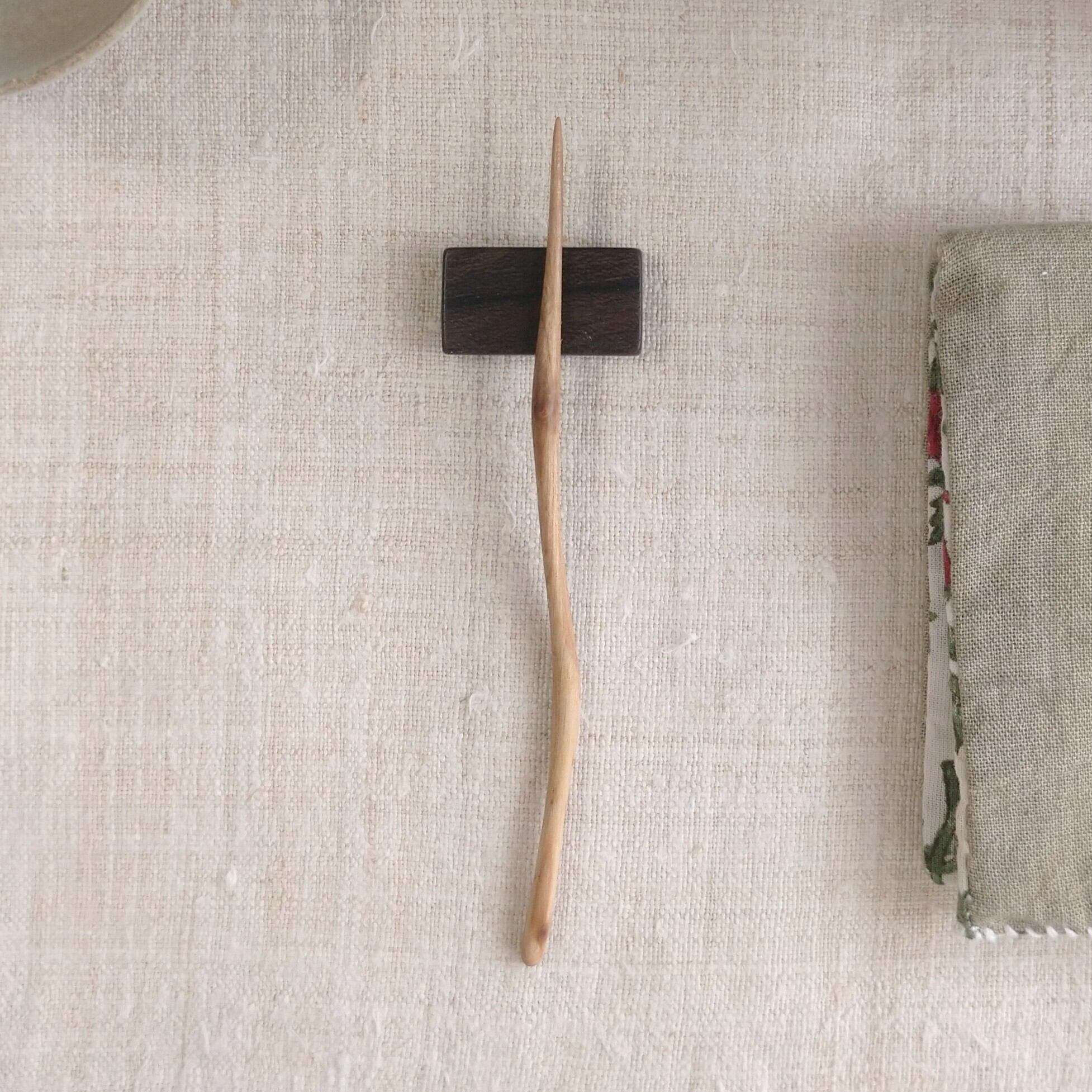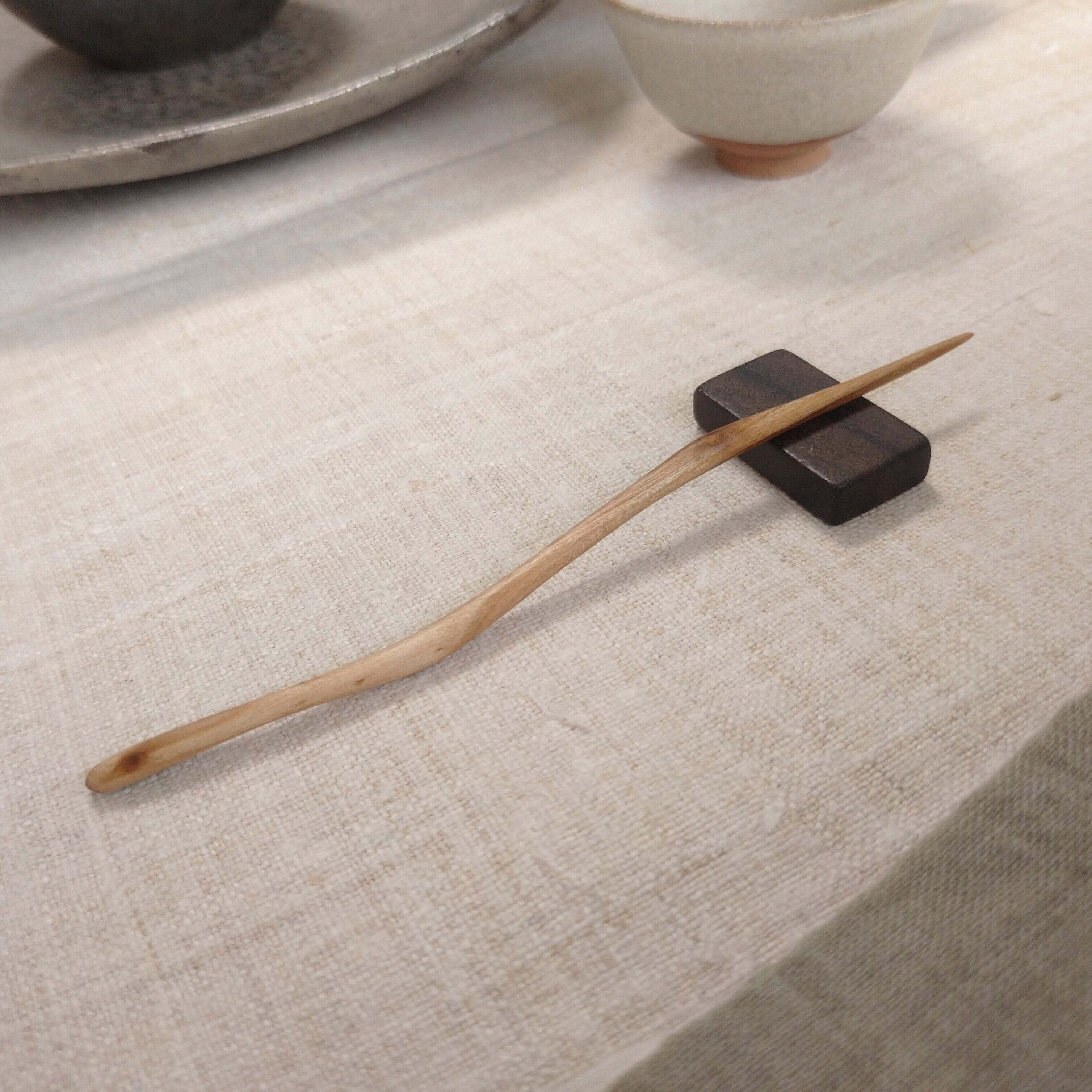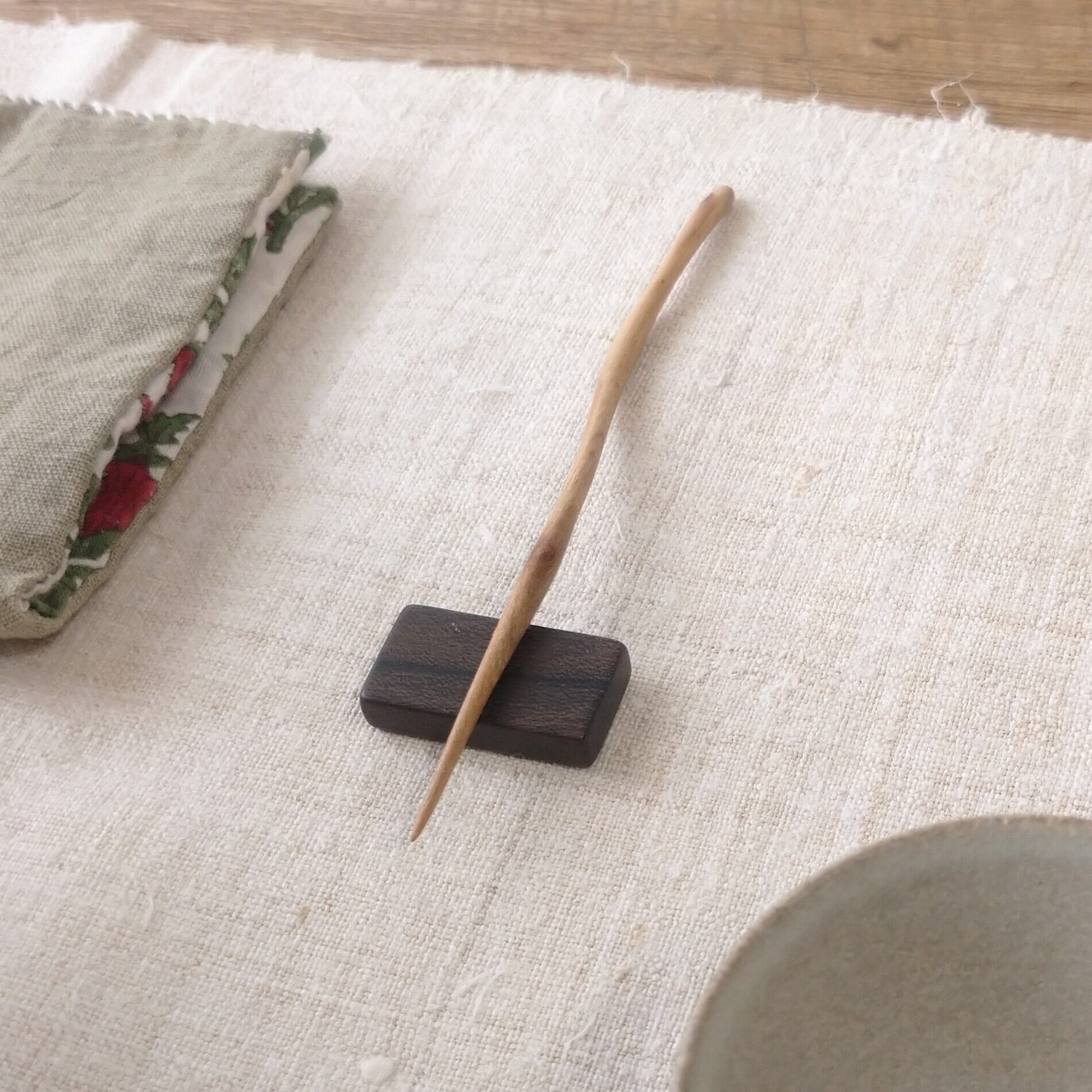 桜の枝を小刀で削った後にやすりがけをし、最後にクルミ油を塗って仕上げました。