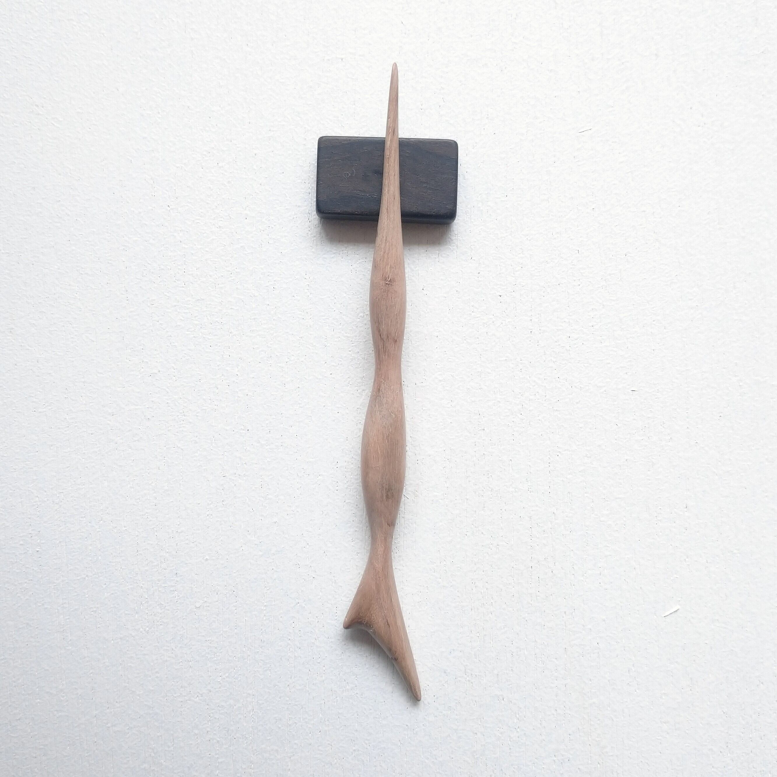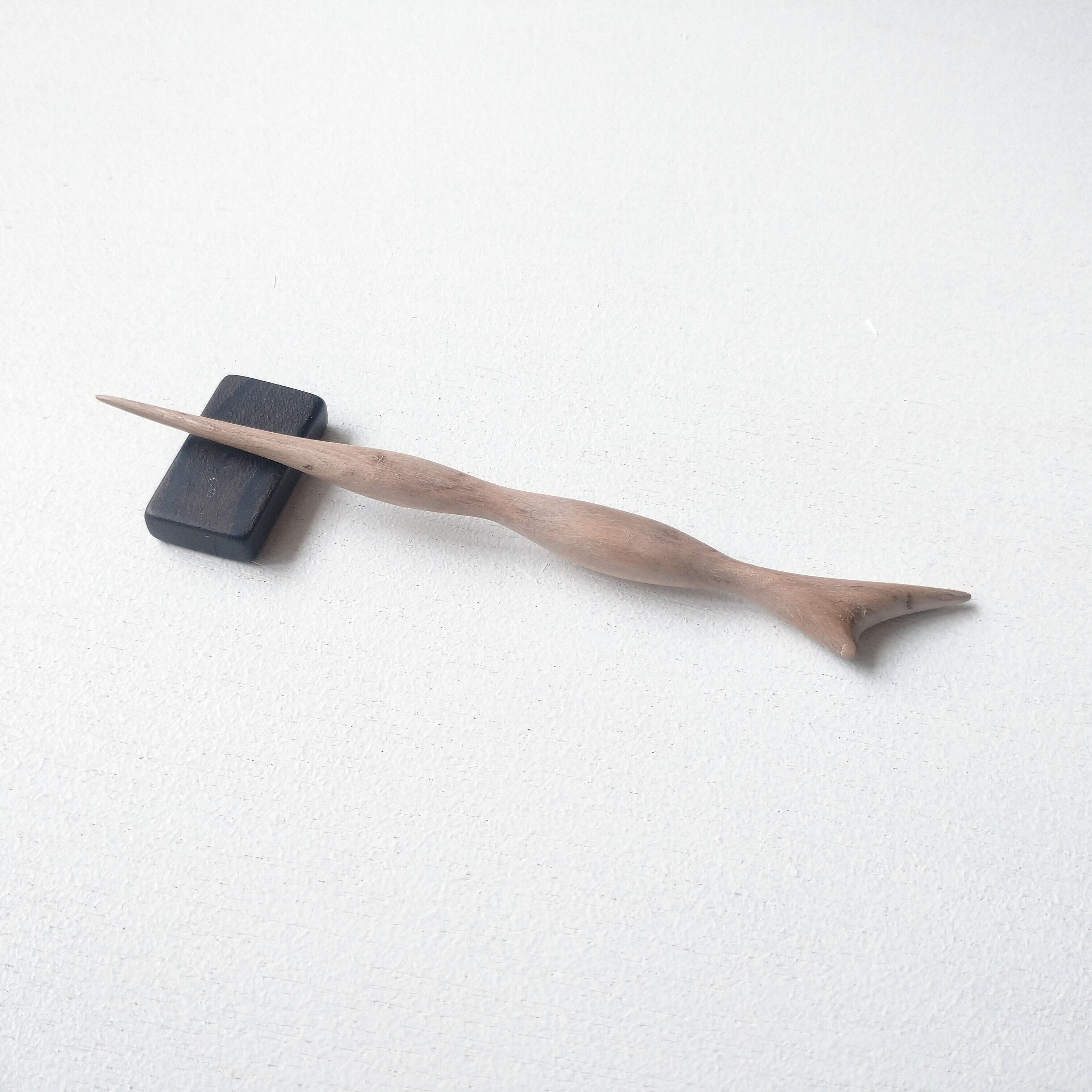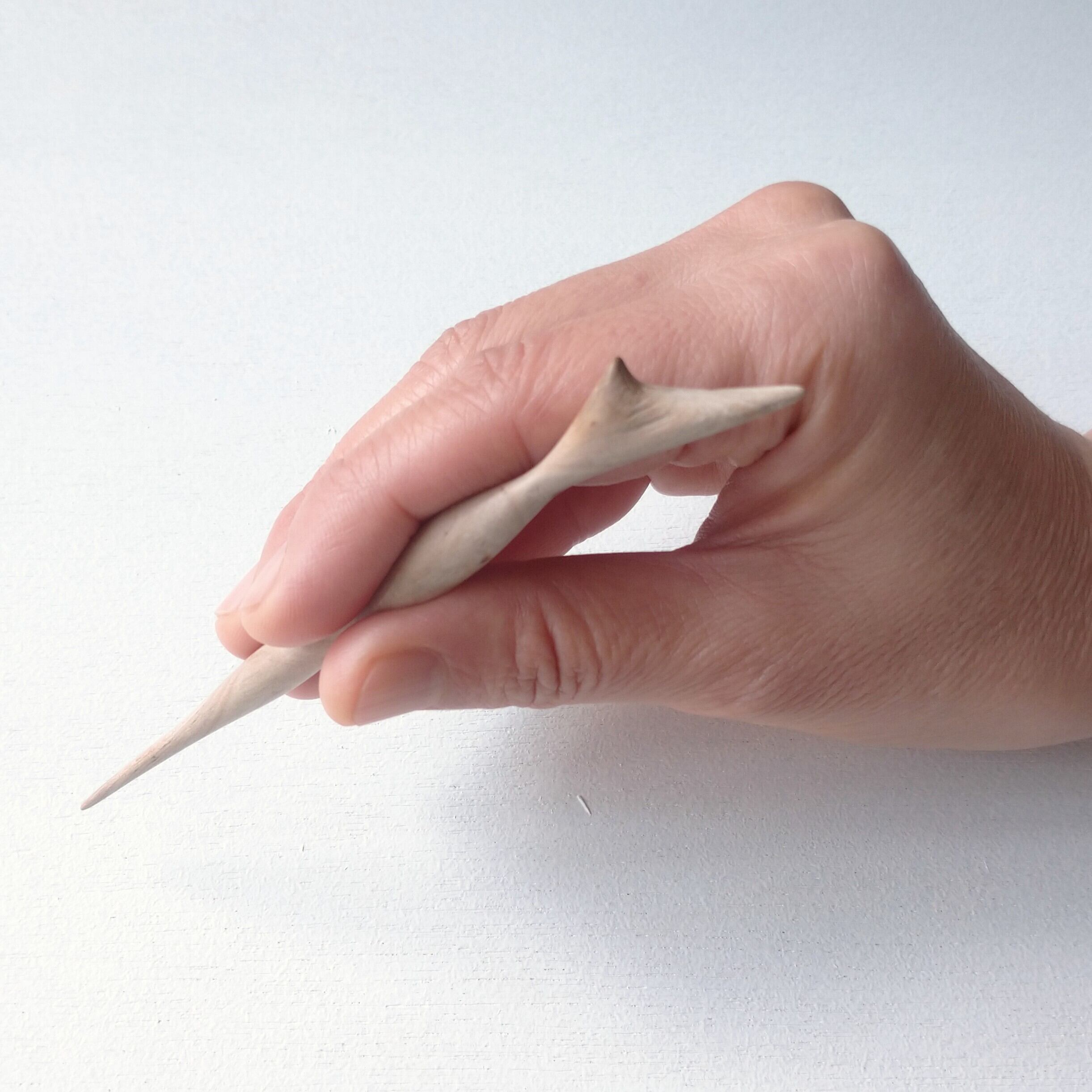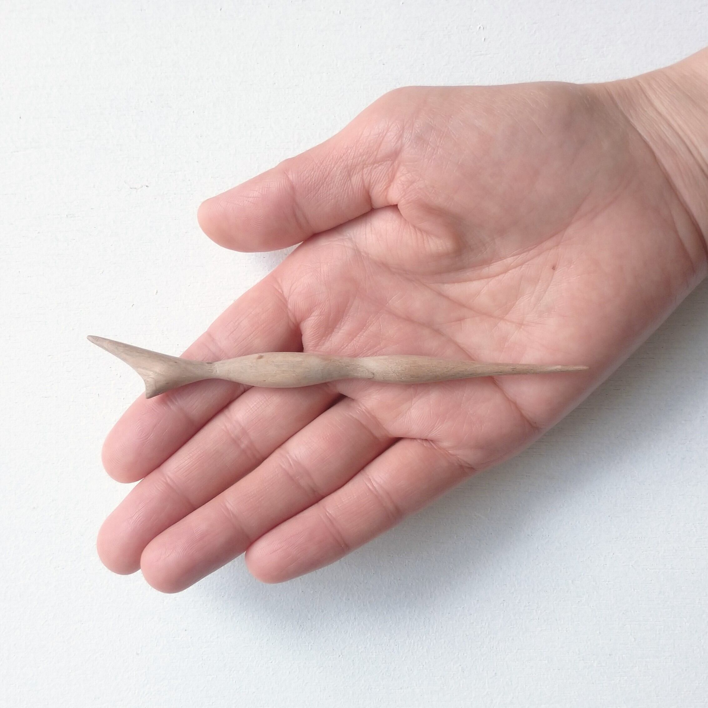 太めの桜の枝から小刀で削り出した後にやすりがけ(仕上げ#1000)をし、滑らかに仕上げました。