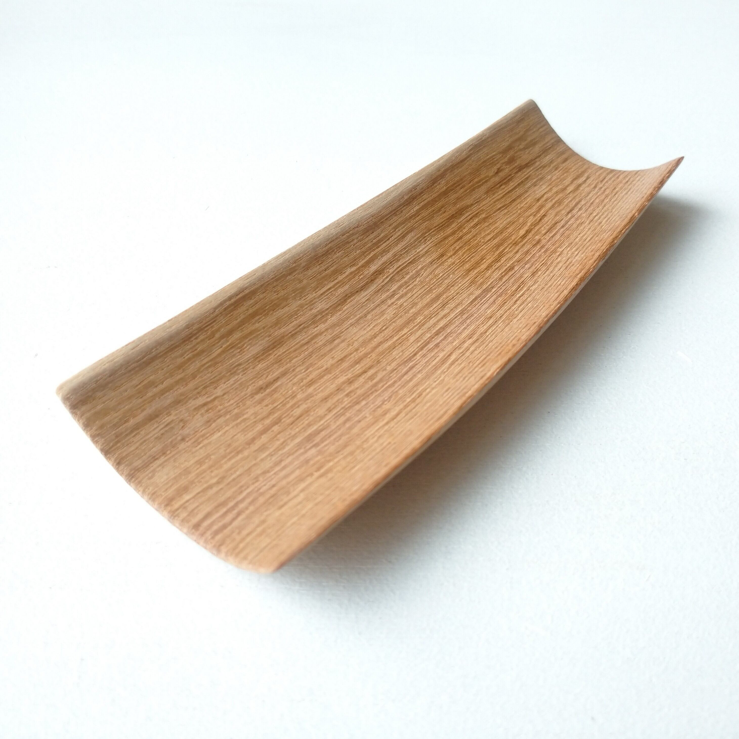 木目に沿って形の湾曲した茶則を作ってみました。(茶則-221も同じように作っていますが、こちらのほうが幅が広いです。比較できる写真も載せています。[左が茶則-220])