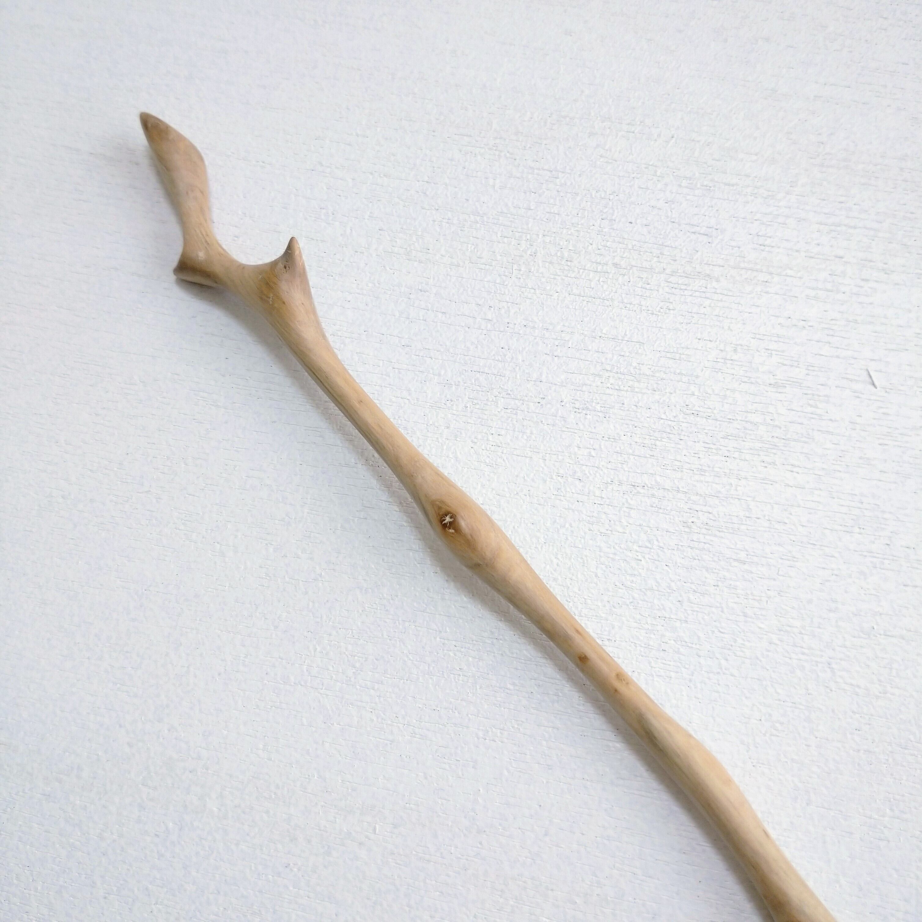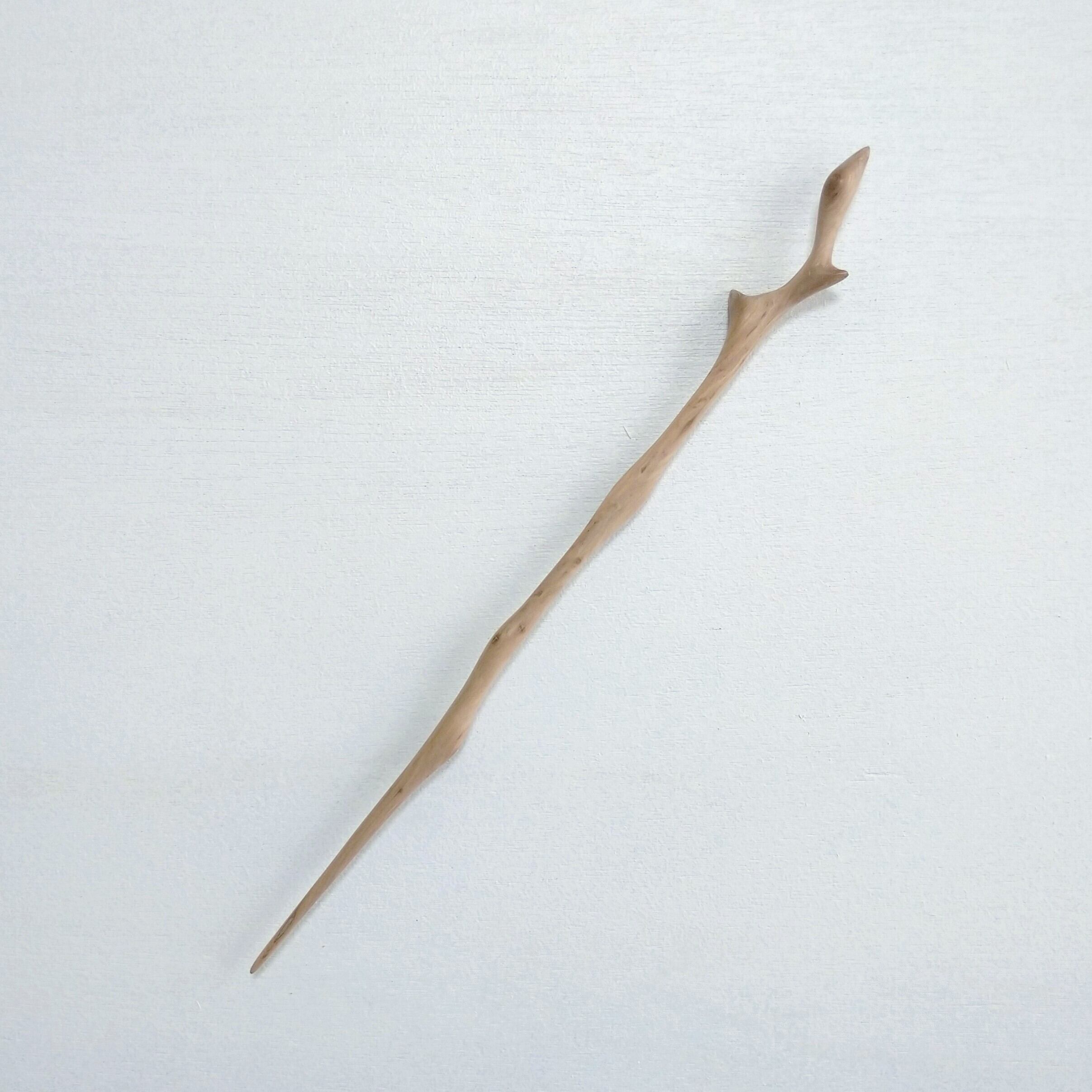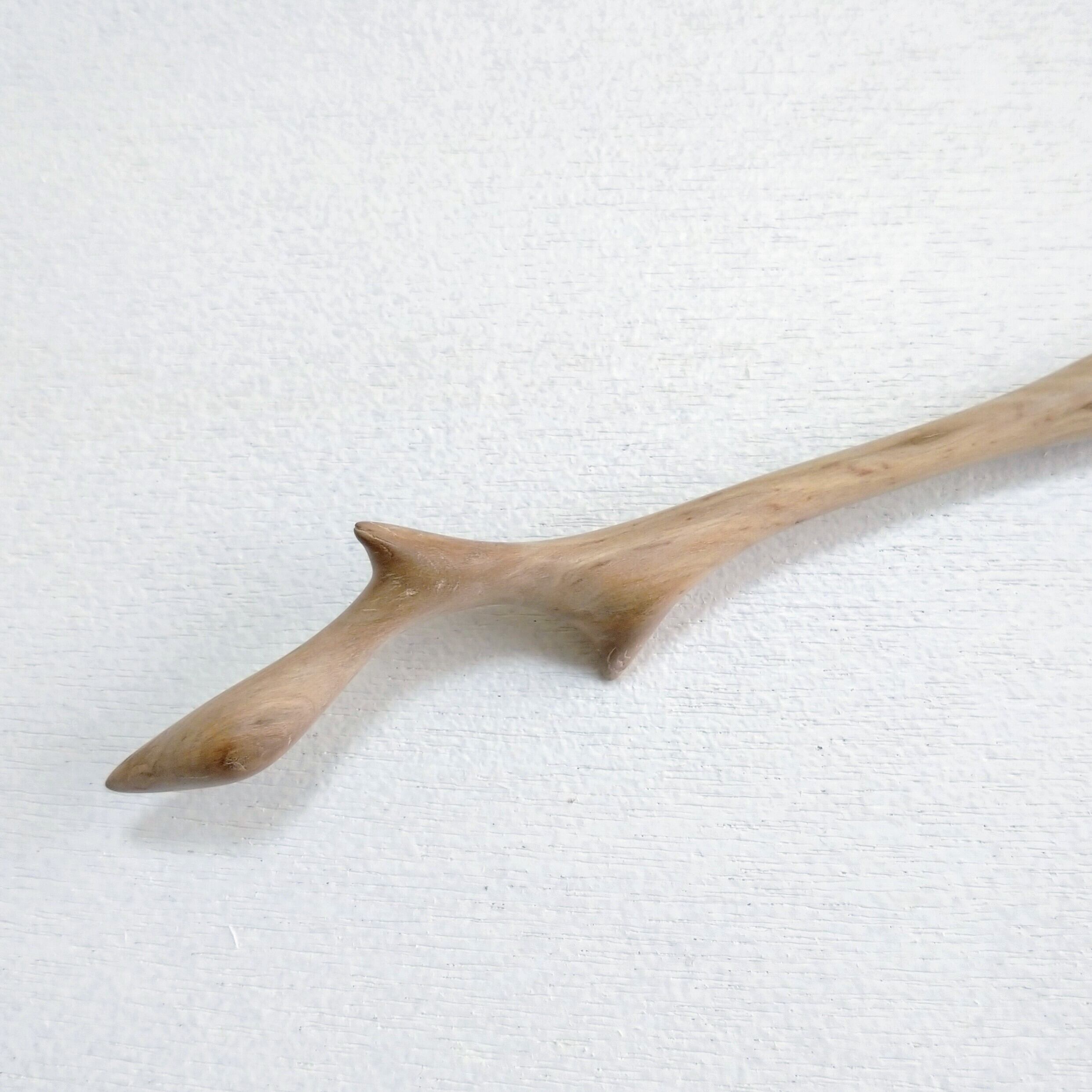 太めの桜の枝から小刀で削り出した後にやすりがけ(仕上げ#1000)をし、滑らかに仕上げました。