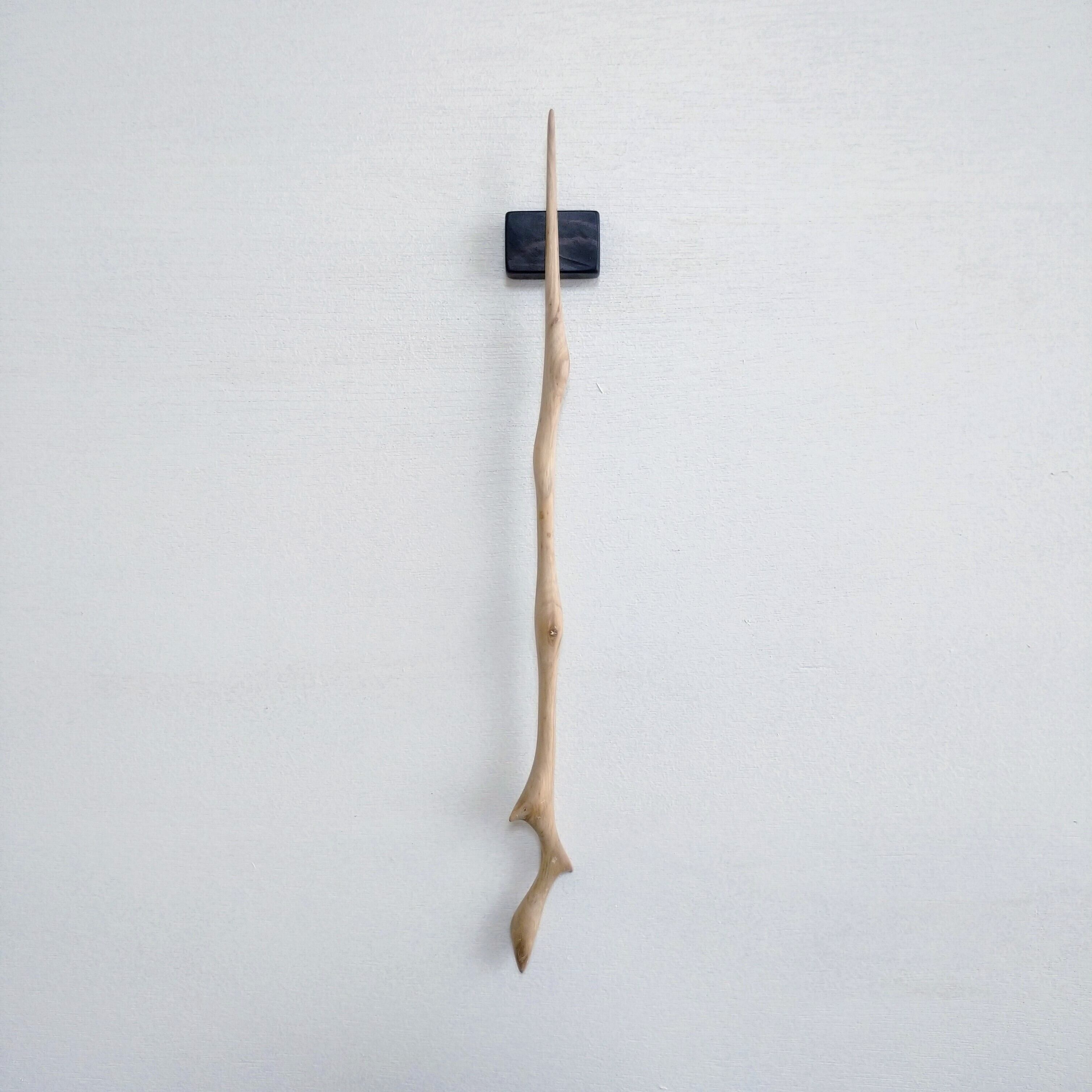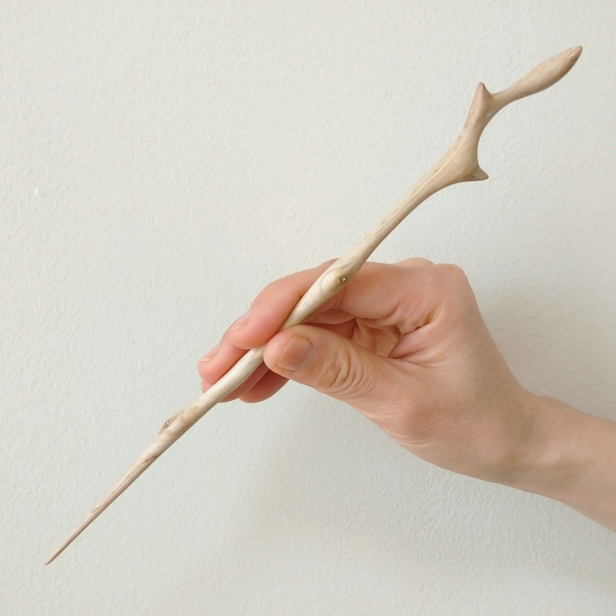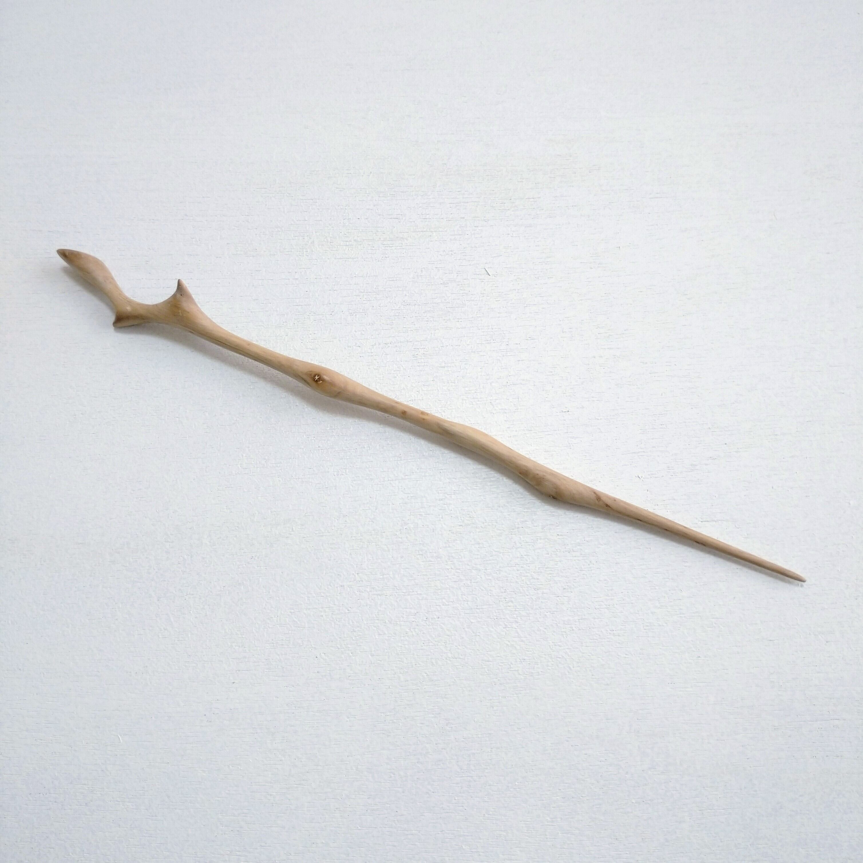 太めの桜の枝から小刀で削り出した後にやすりがけ(仕上げ#1000)をし、滑らかに仕上げました。