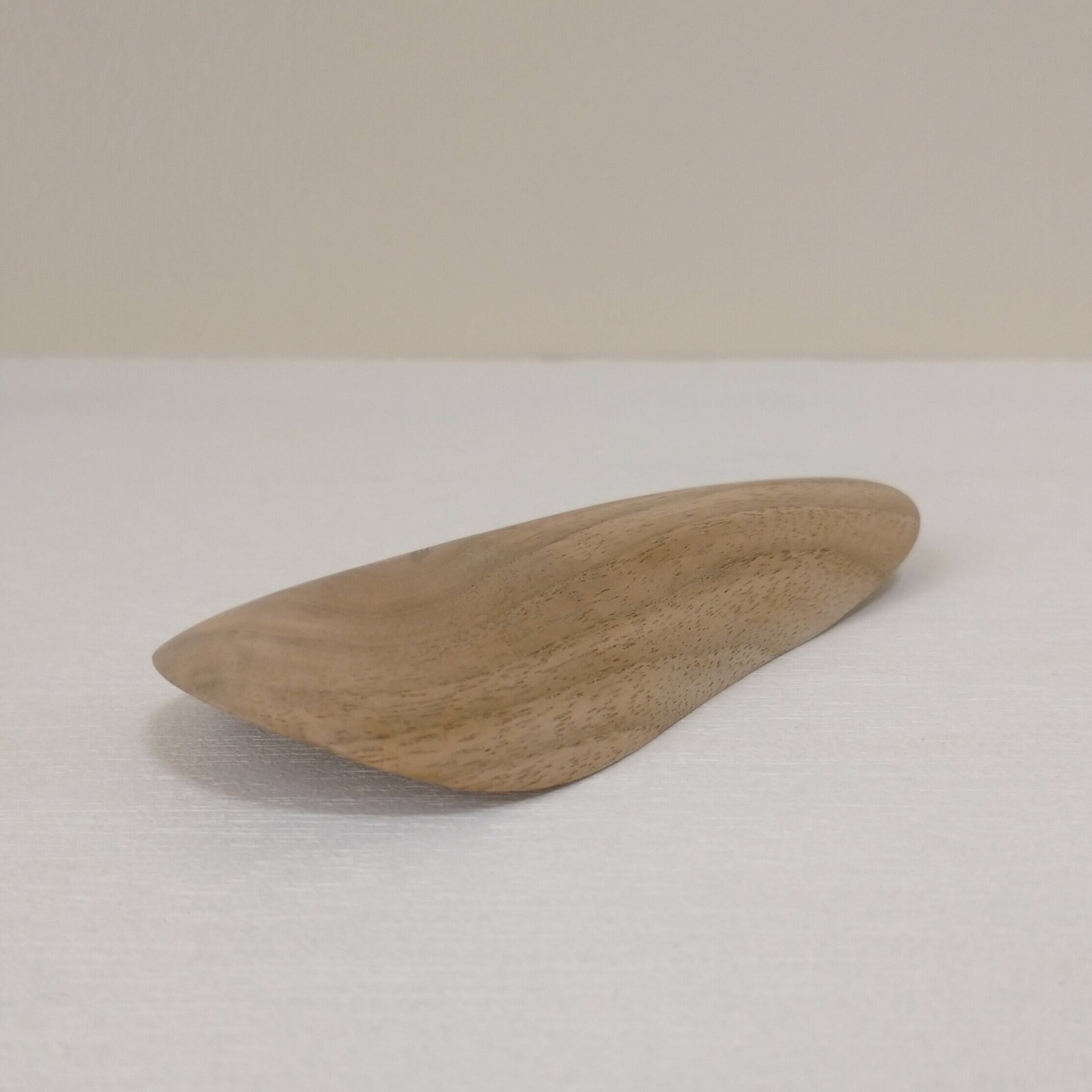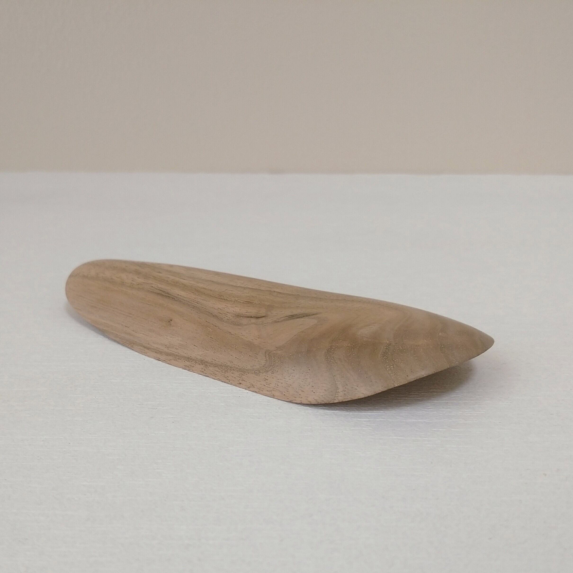 ノミと鉋を使って削り出し、最後にやすりがけ(仕上げ#1000)をして滑らかに仕上げました。塗装はしていません。