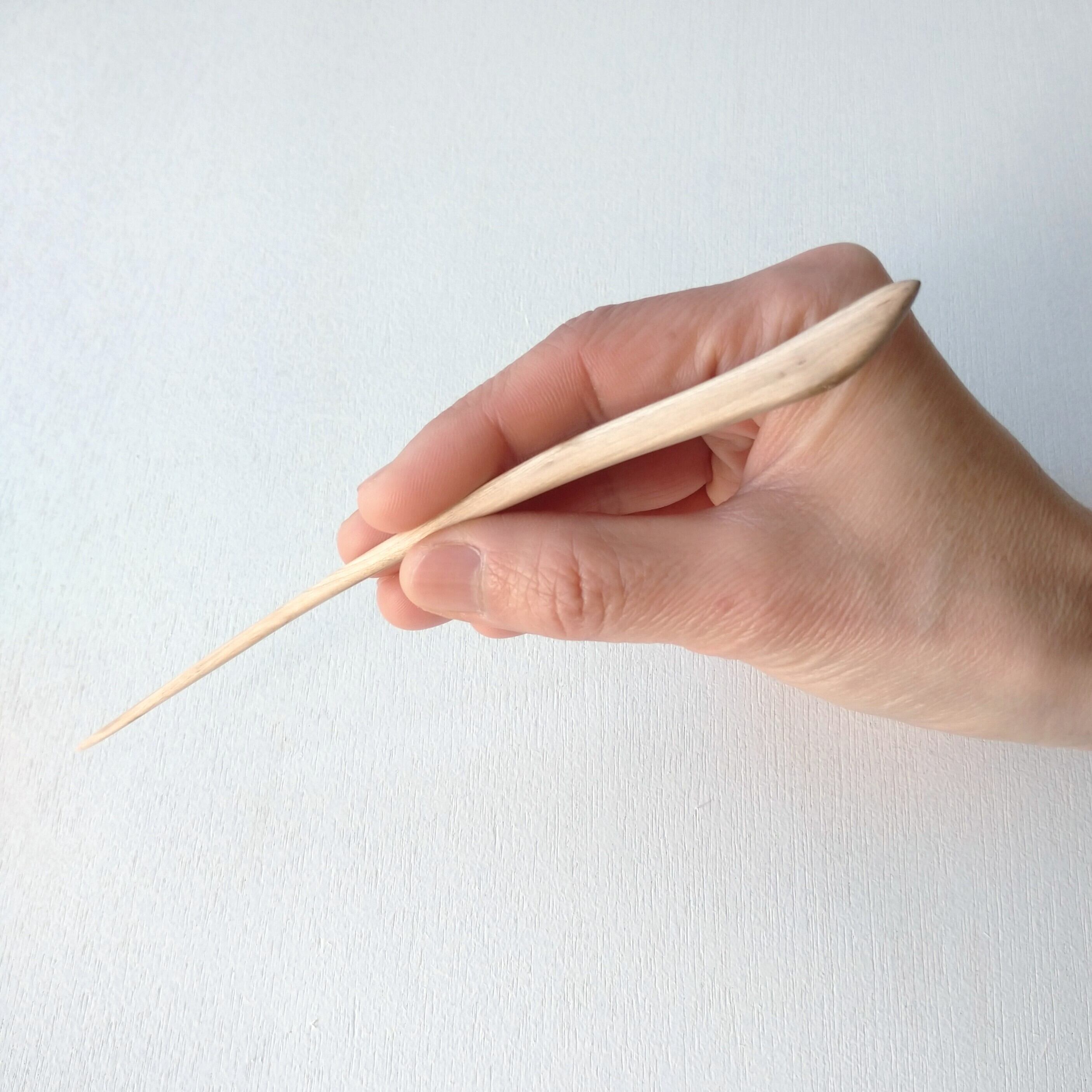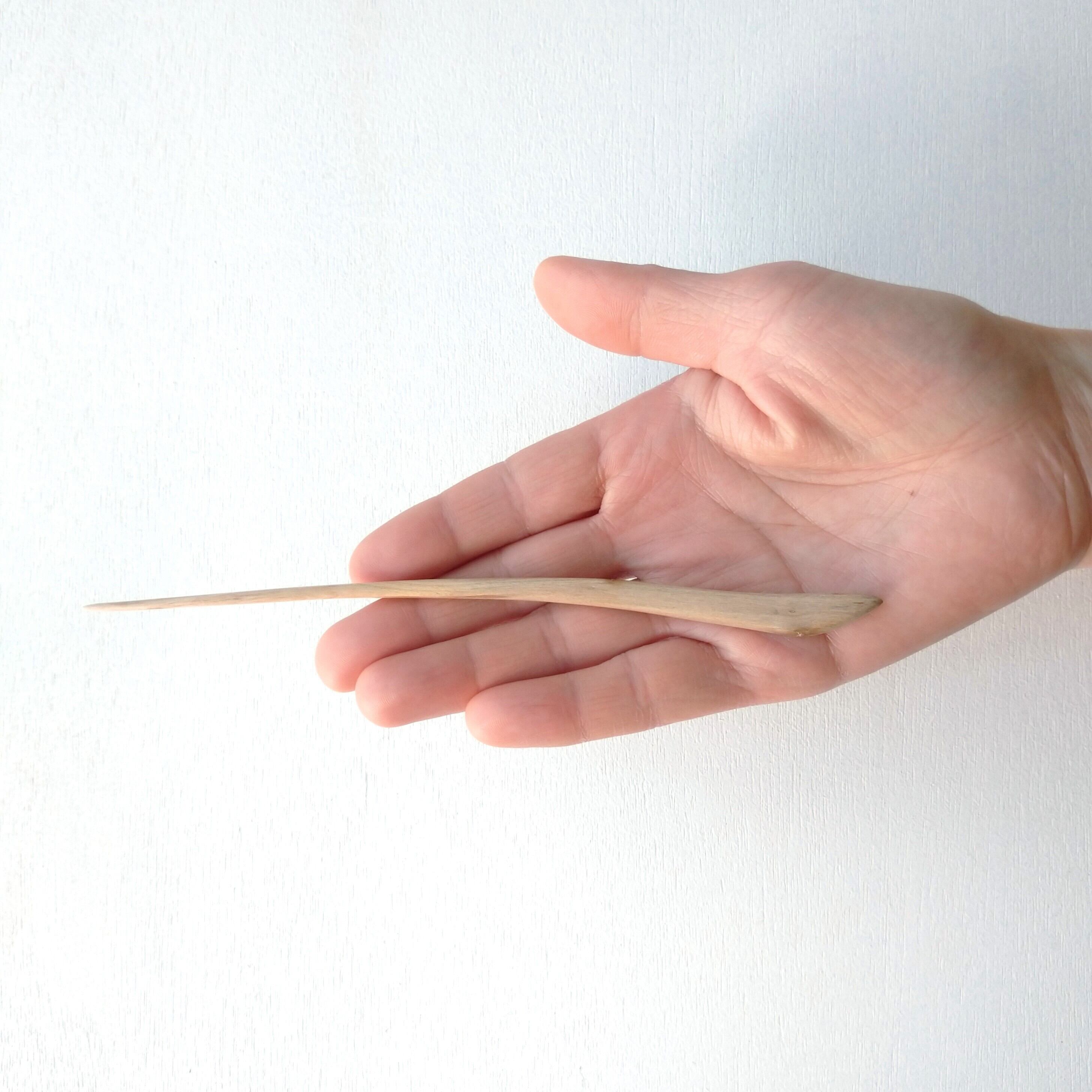 桜の枝から小刀と鉋で削り出した後にやすりがけ(仕上げ#1000)をし、滑らかに仕上げました。