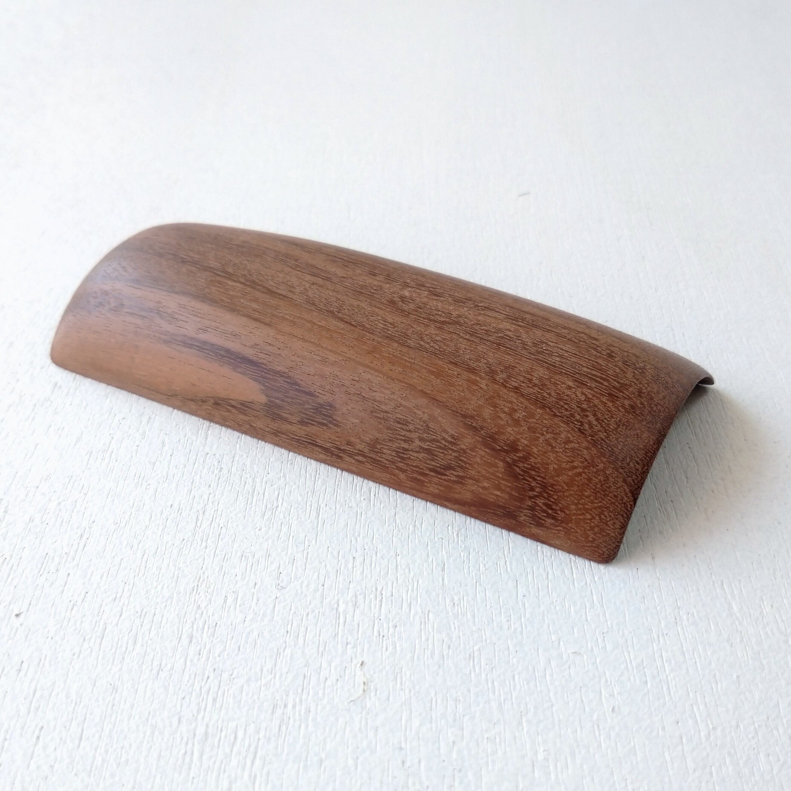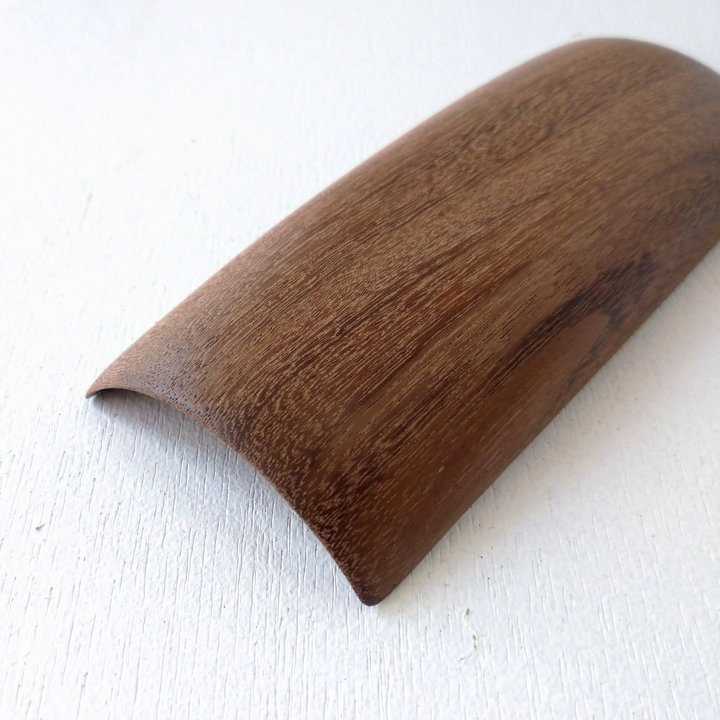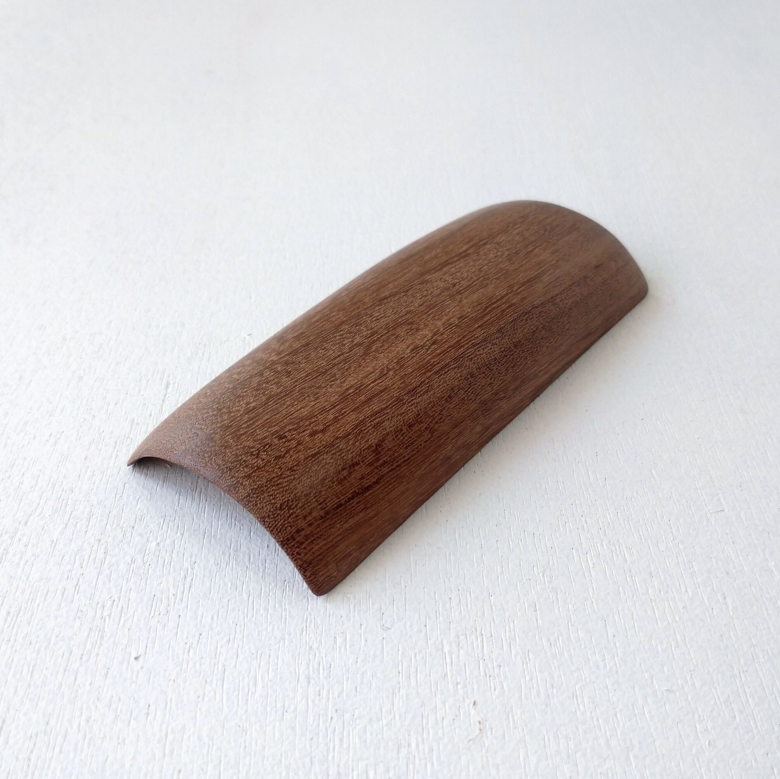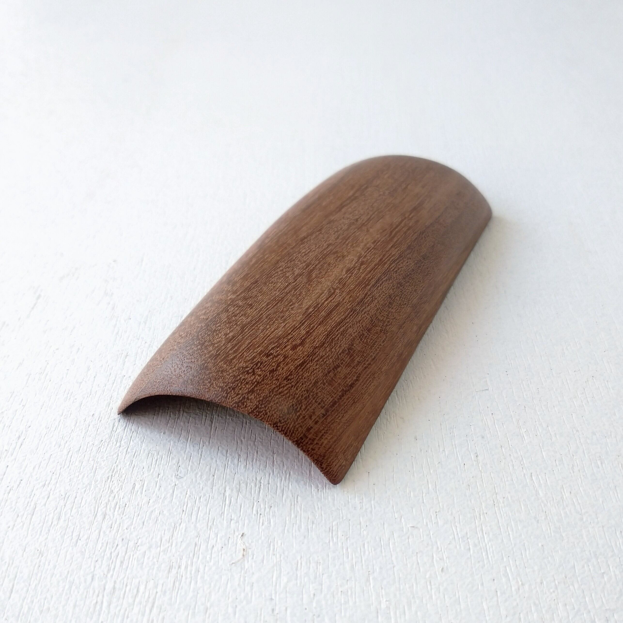 ノミ、鉋、彫刻刀などを使って削り出し、最後にサンディング(#1000)をして滑らかに仕上げました。塗装はしていません。