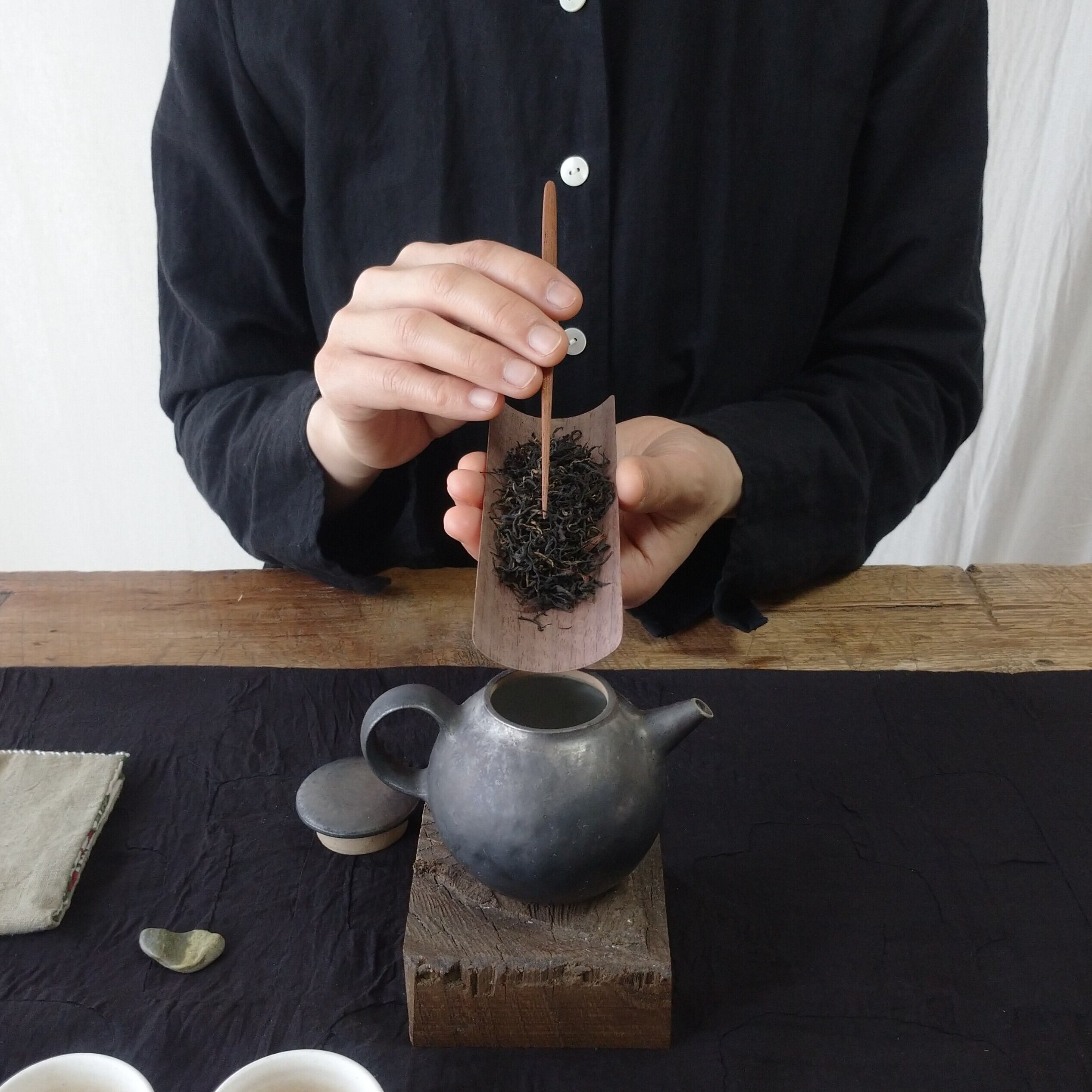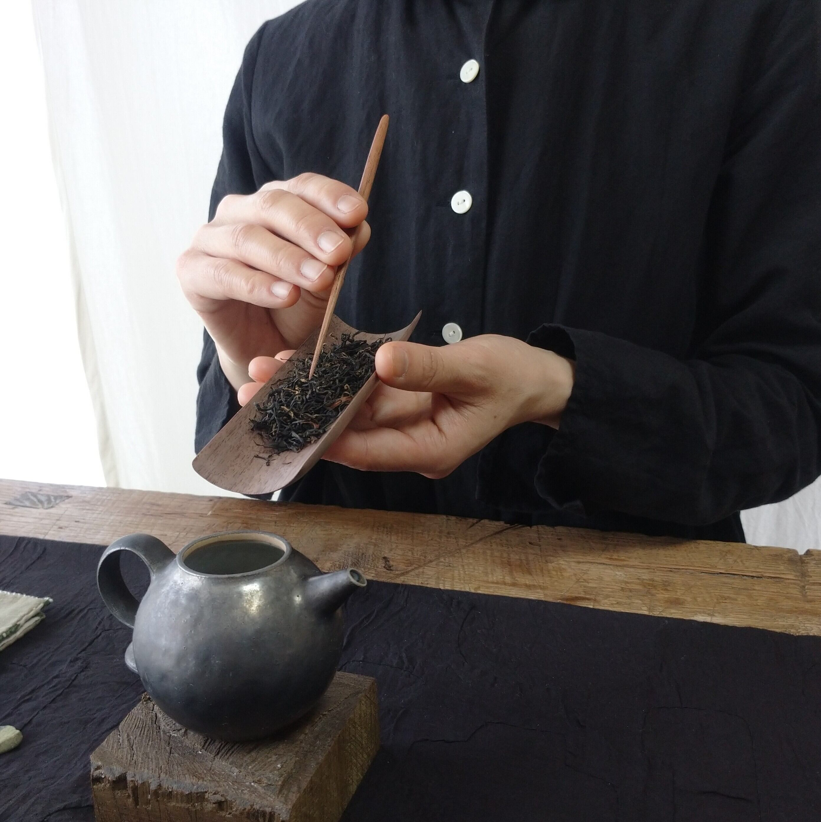 口の大きな茶壺や蓋碗に合わせて使うのに向いていますが、小さめの茶葉でしたら、口の小さな茶壺にも入れ易いです。