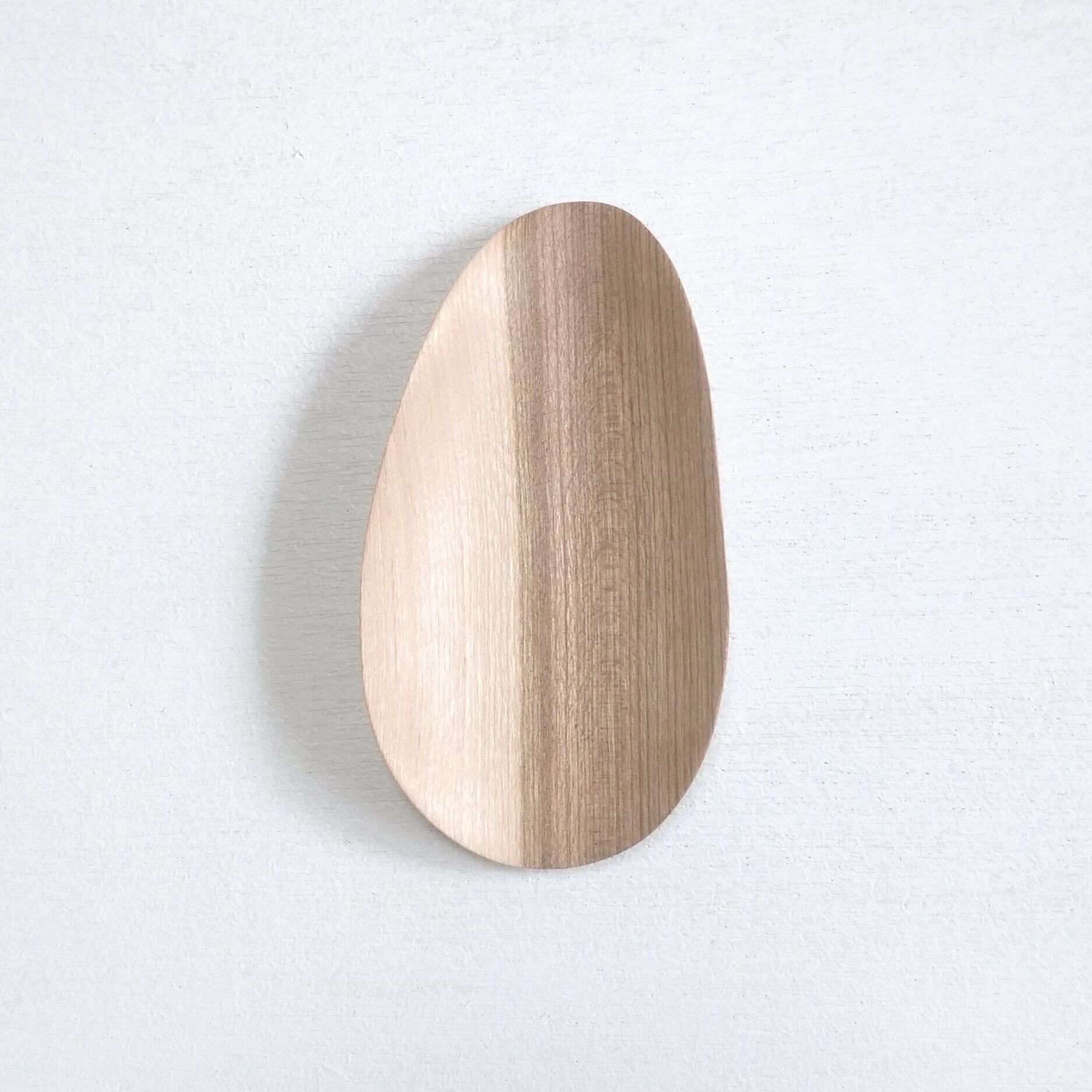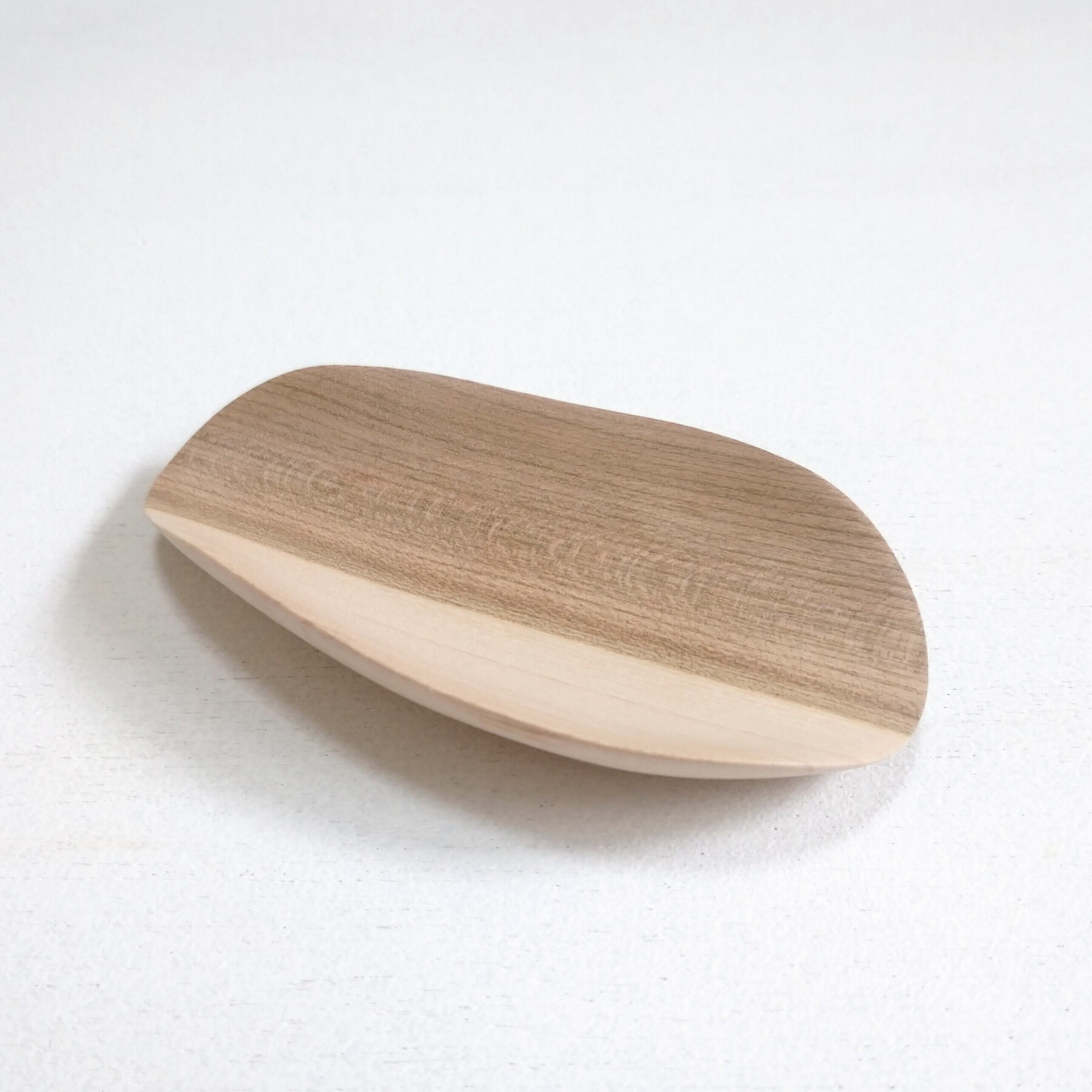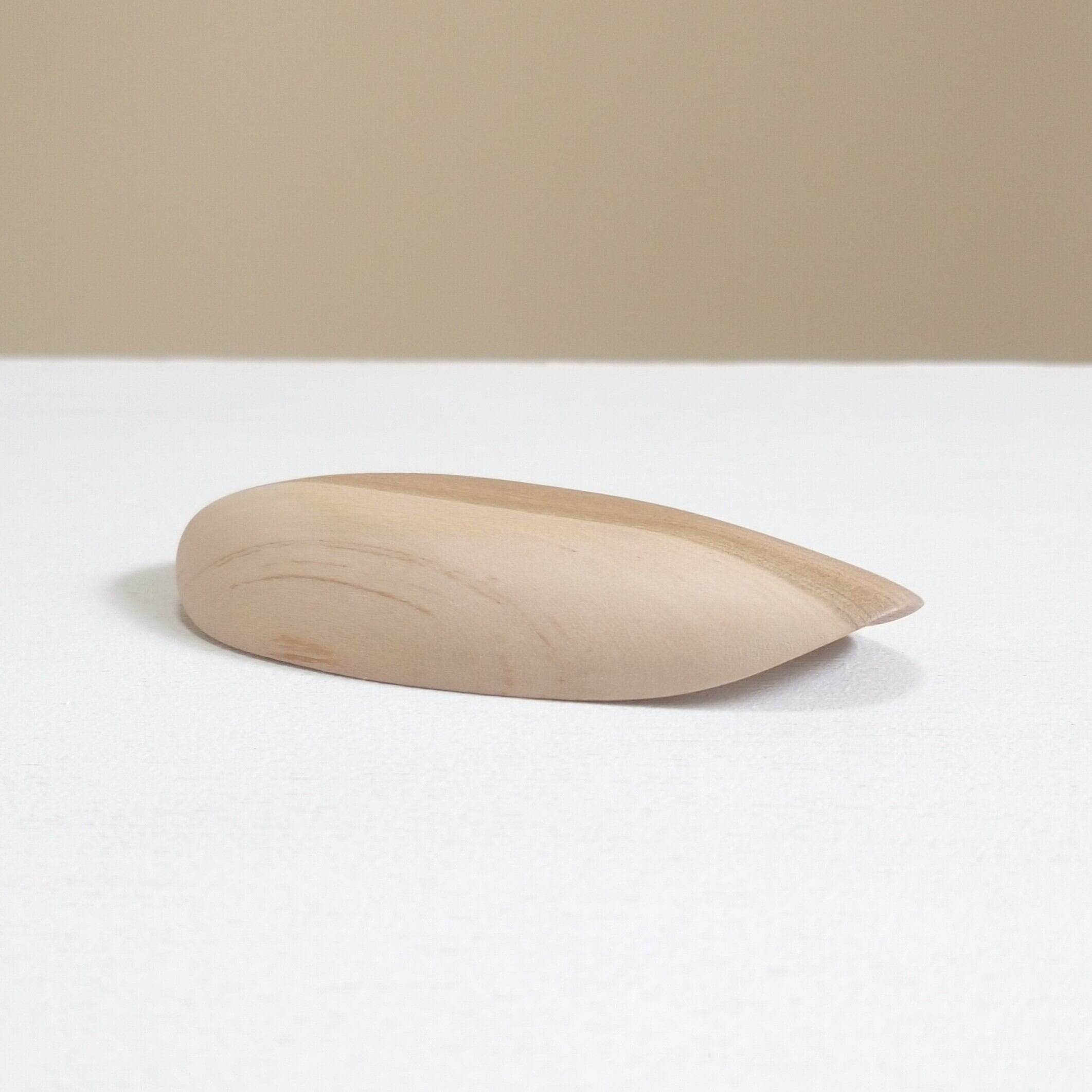 ノミ、彫刻刀、鉋を使って削り出し、最後にやすりがけ(仕上げ#1000)をして滑らかに仕上げました。塗装はしていません。