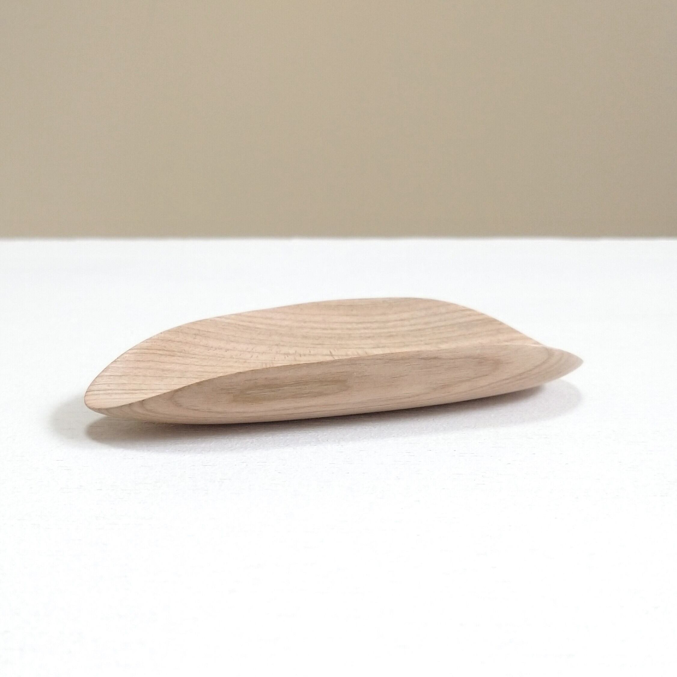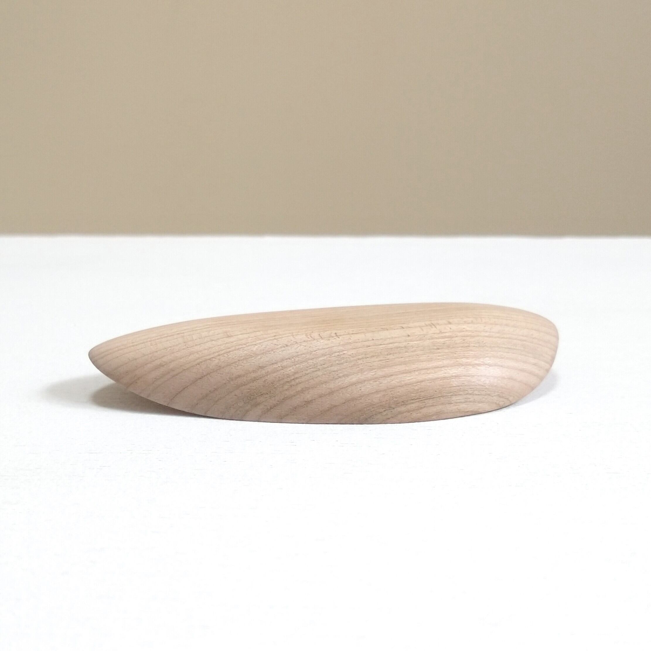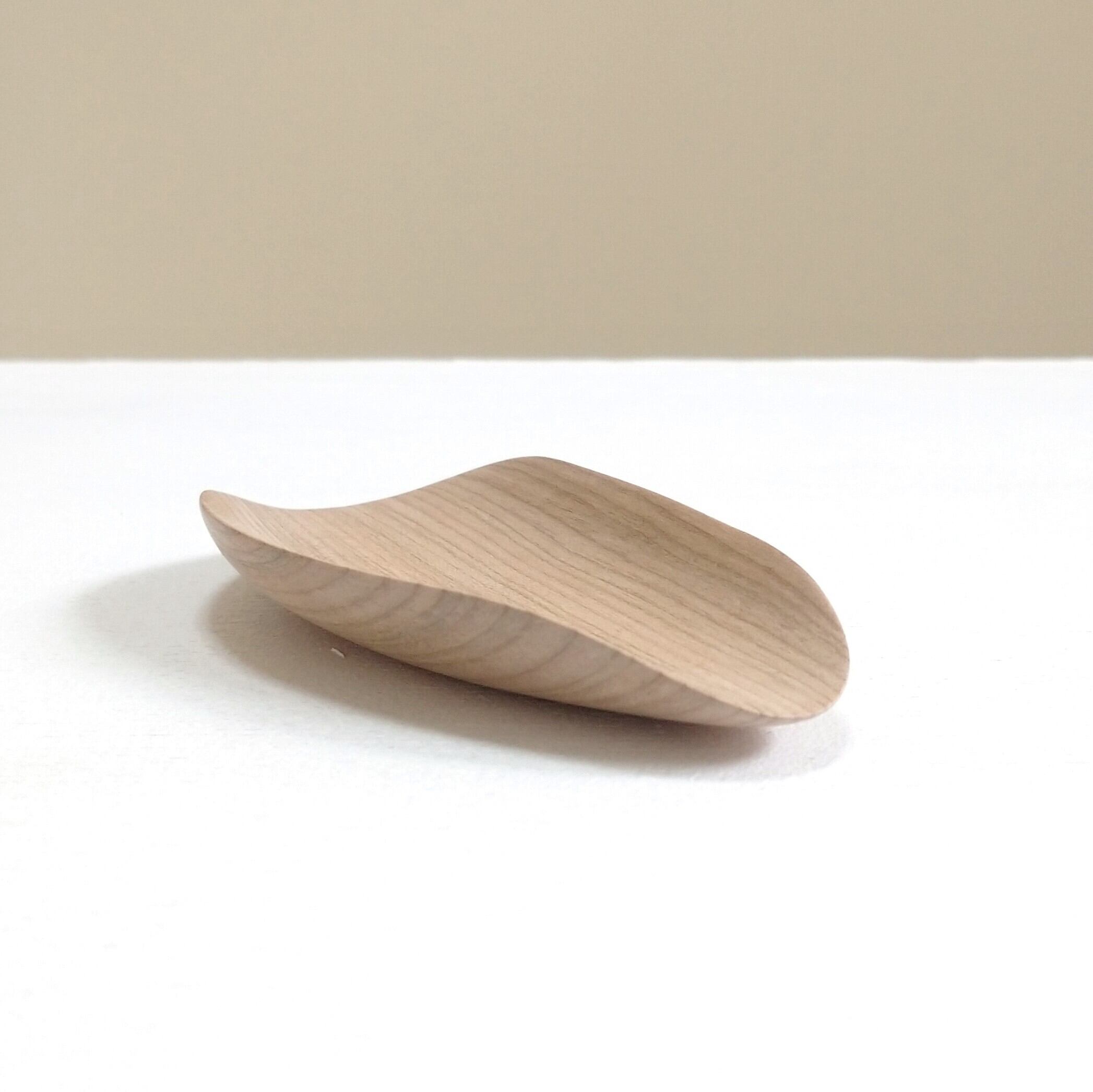 ノミ、彫刻刀、鉋を使って削り出し、最後にやすりがけ(仕上げ#1000)をして滑らかに仕上げました。塗装はしていません。