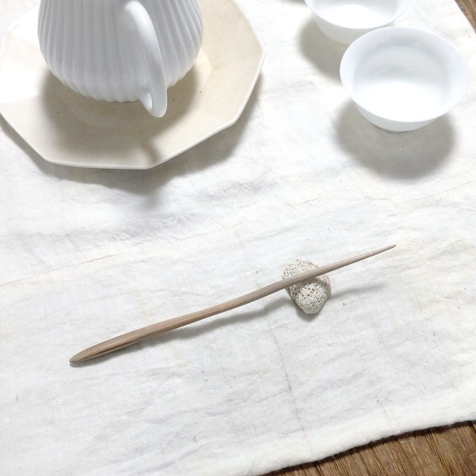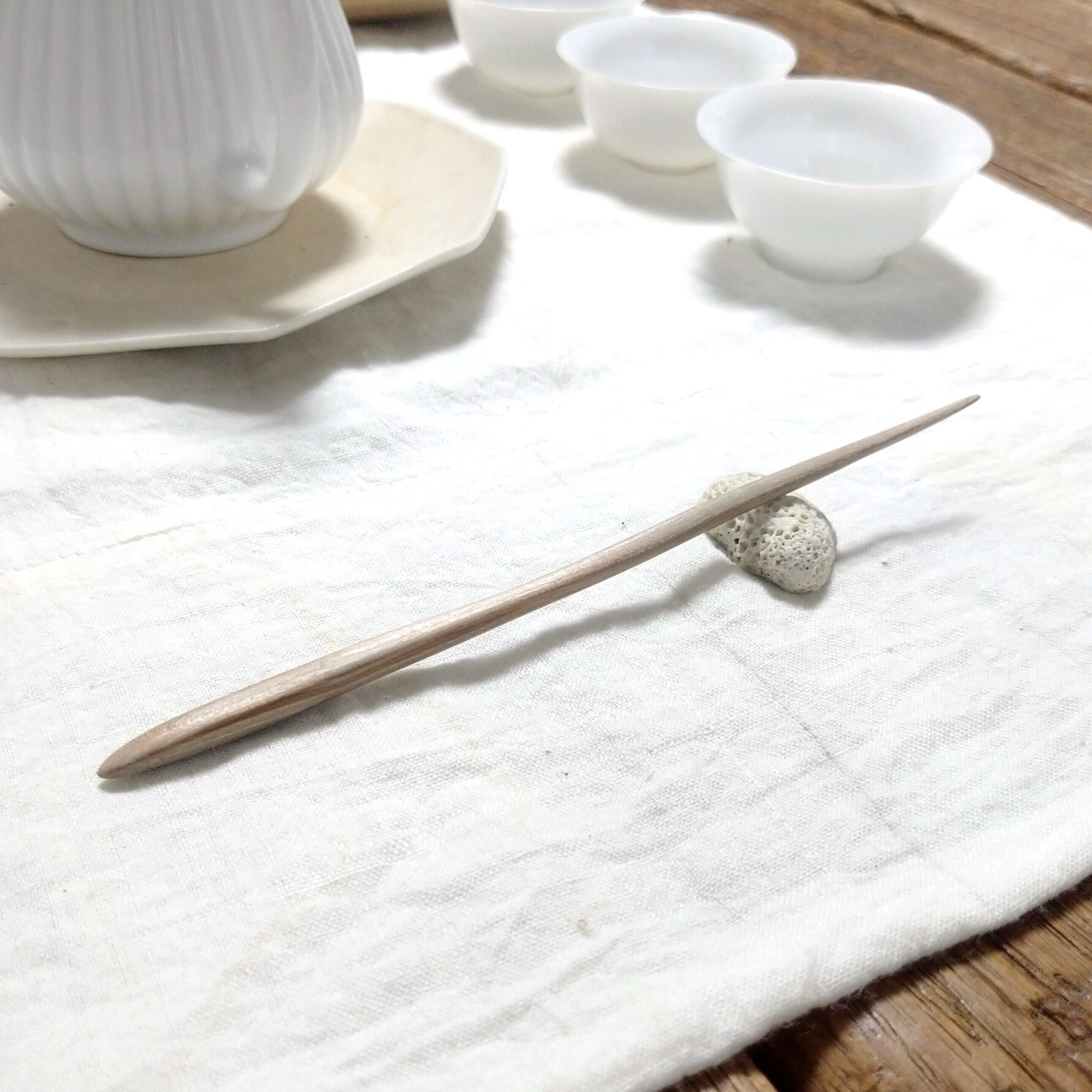 太めの桜の枝から小刀で削り出した後にやすりがけ(仕上げ#1000)をし、滑らかに仕上げました。