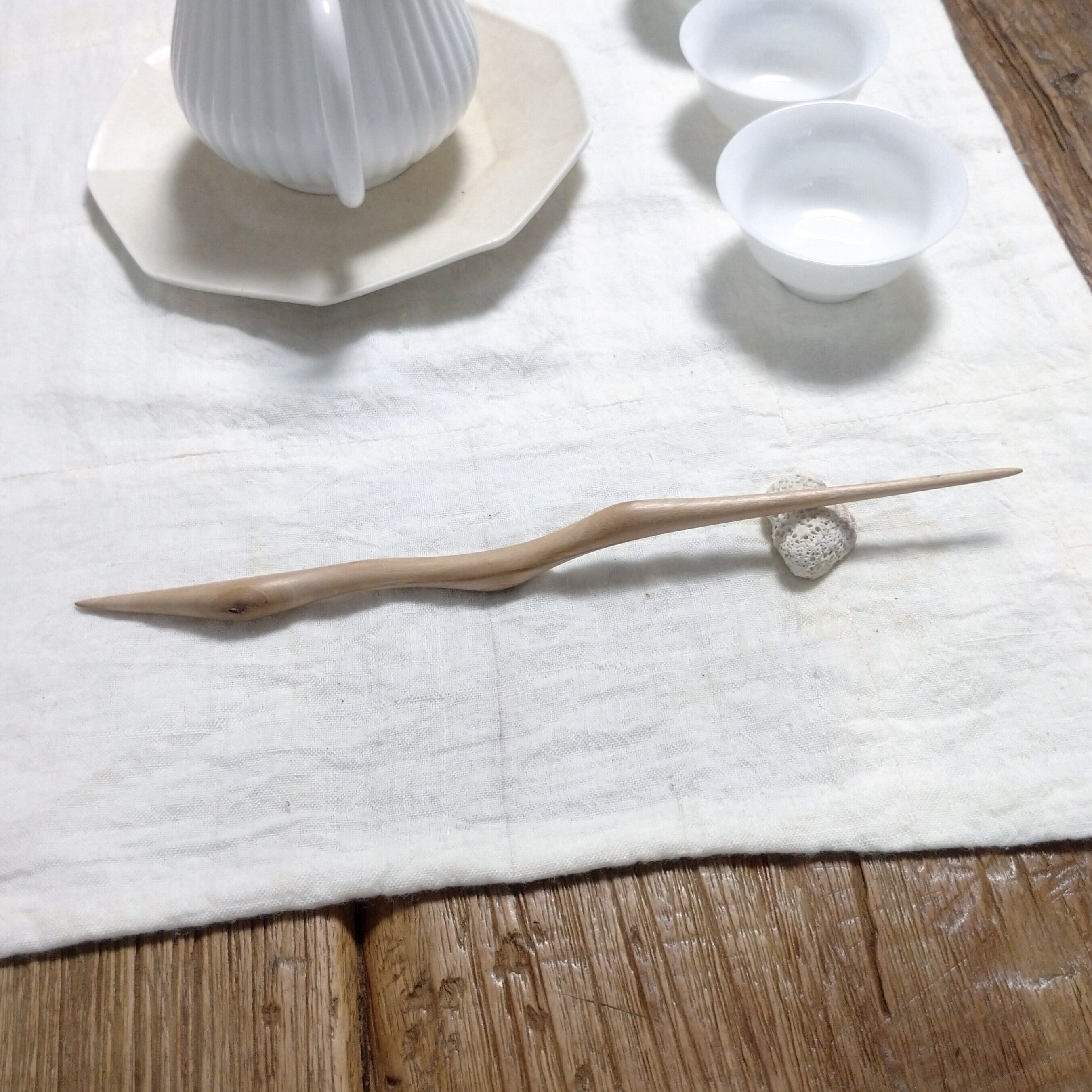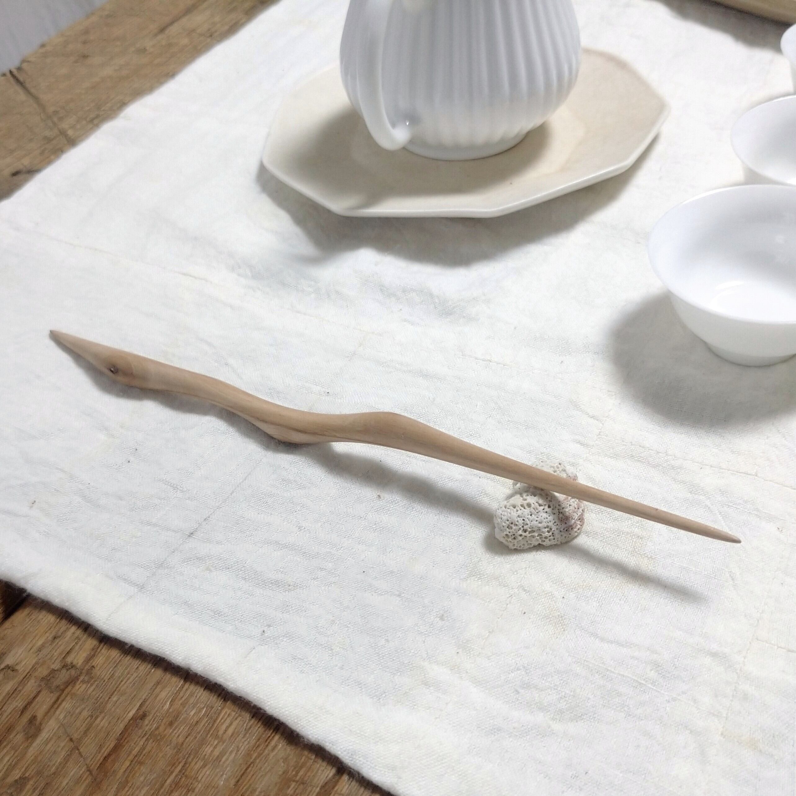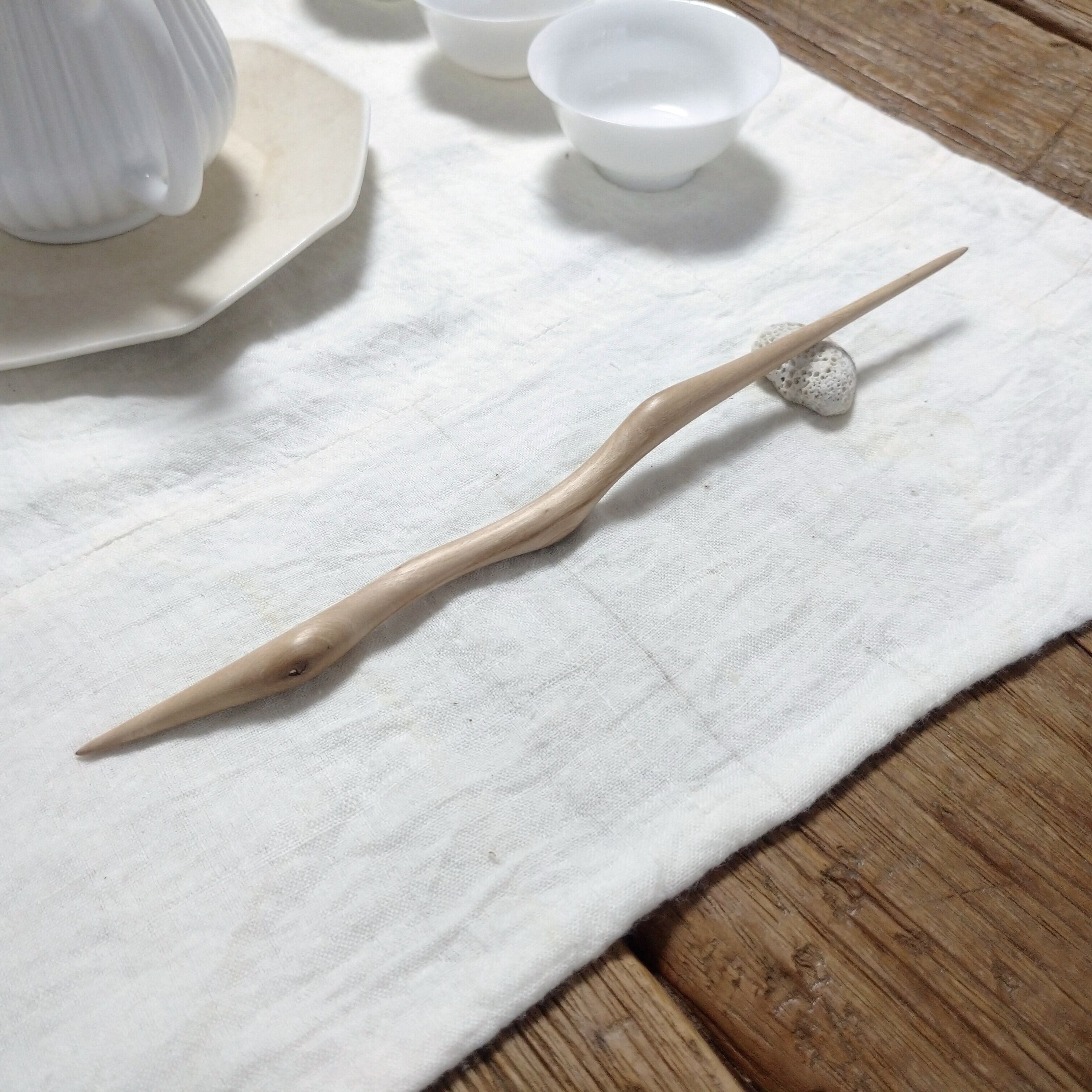 桜の枝から小刀で削り出した後にやすりがけ(仕上げ#1000)をし、滑らかに仕上げました。