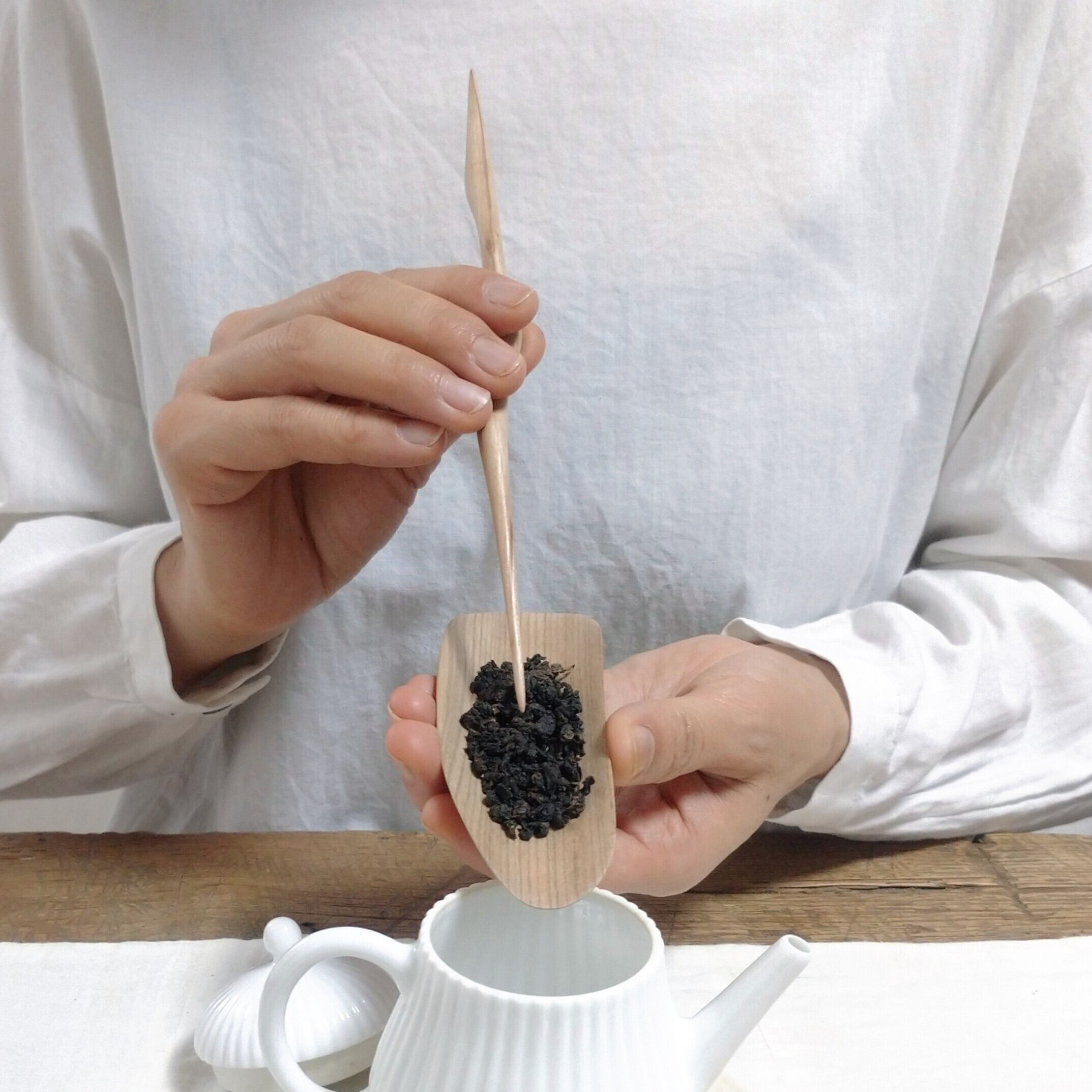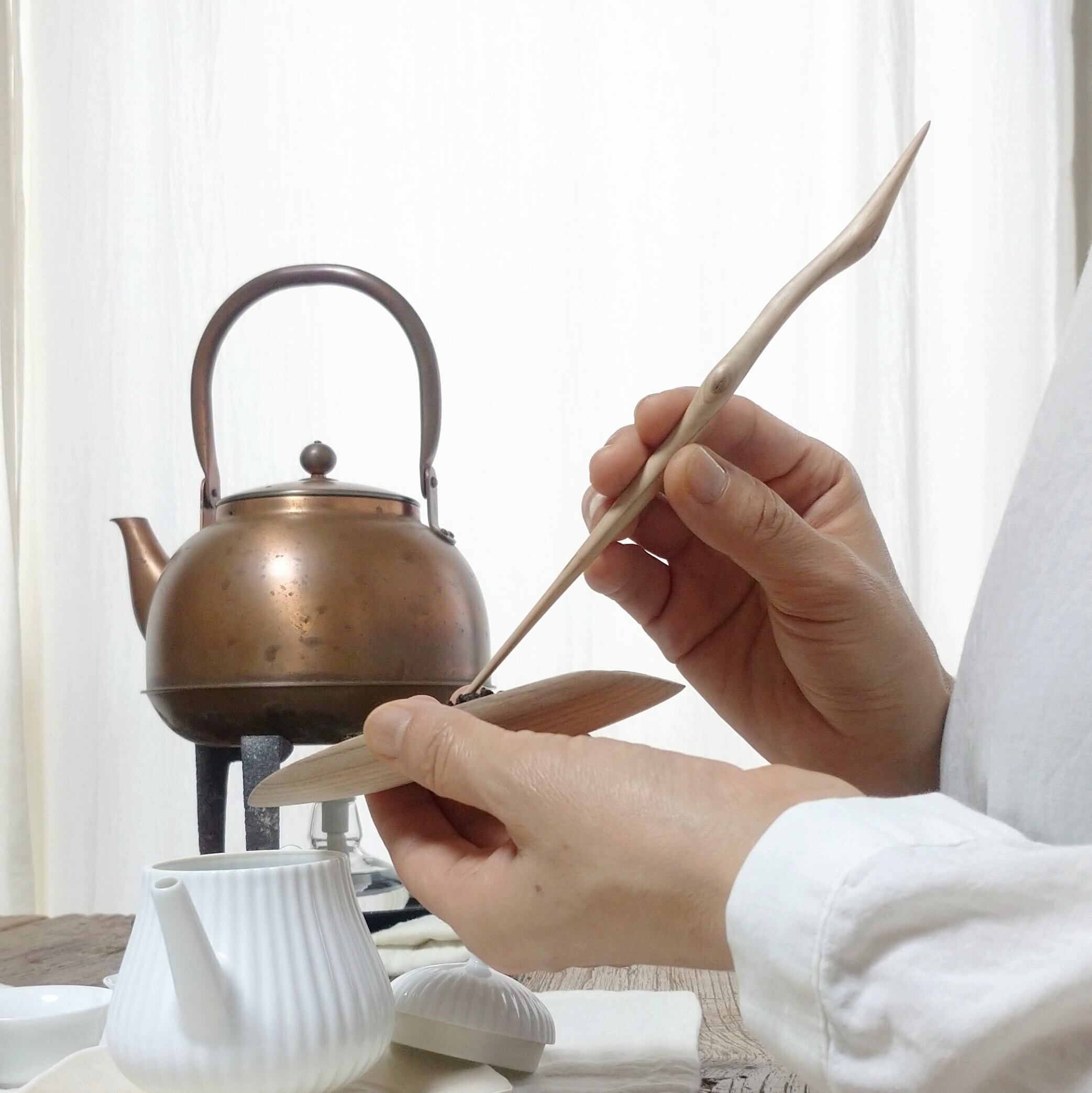 茶通は、茶壺の注ぎ口が詰まった時に使う道具とされていますが、他にも、茶則を使って茶壺に茶葉を入れる際に添えたり、一煎淹れた後に茶壺の中で偏った茶葉を馴らしたりすることができます。