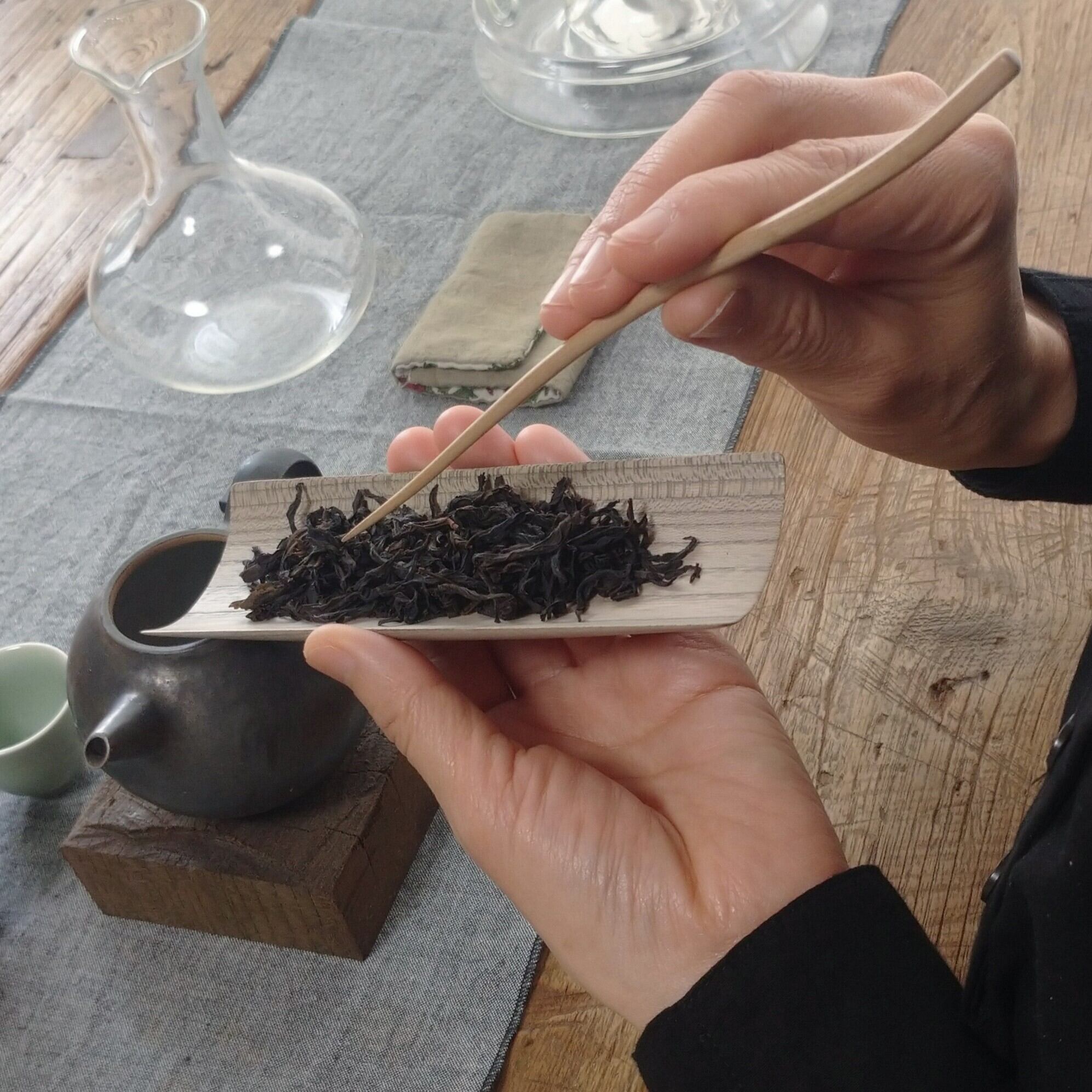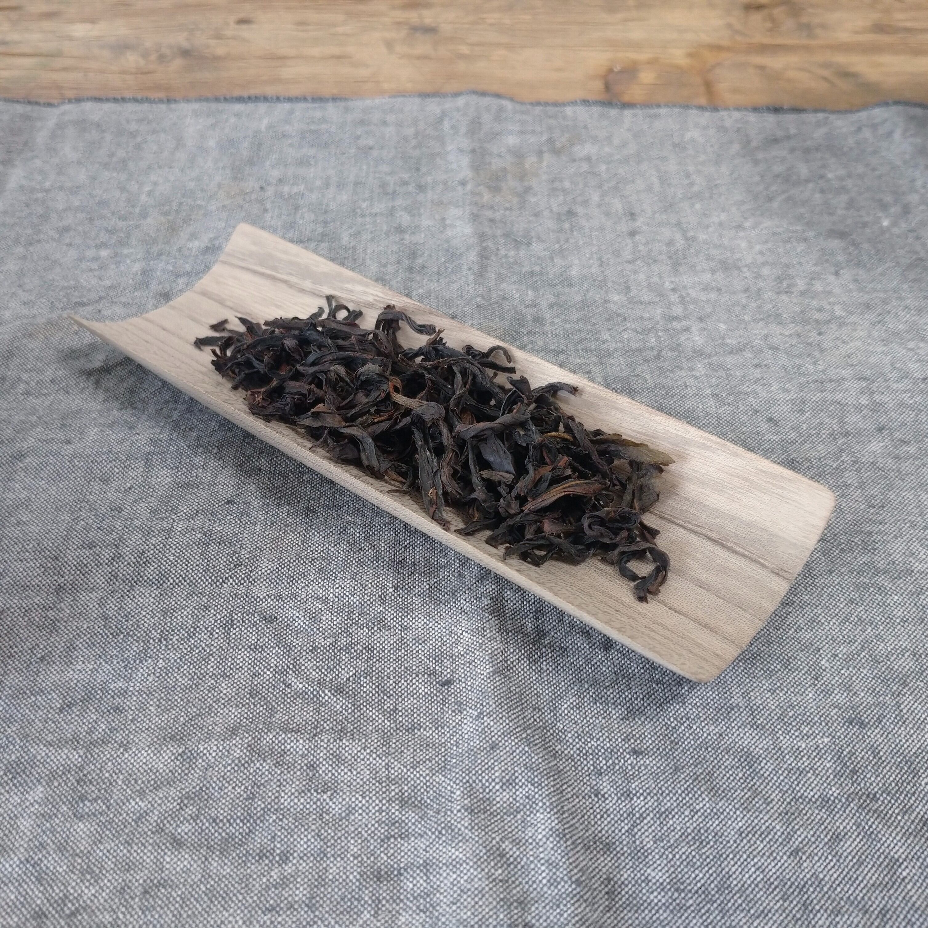 浅めの茶則なので、小さめ~中程度の茶葉を載せるのに向いています。(写真は鳳凰単叢 密蘭香を4g載せています。)