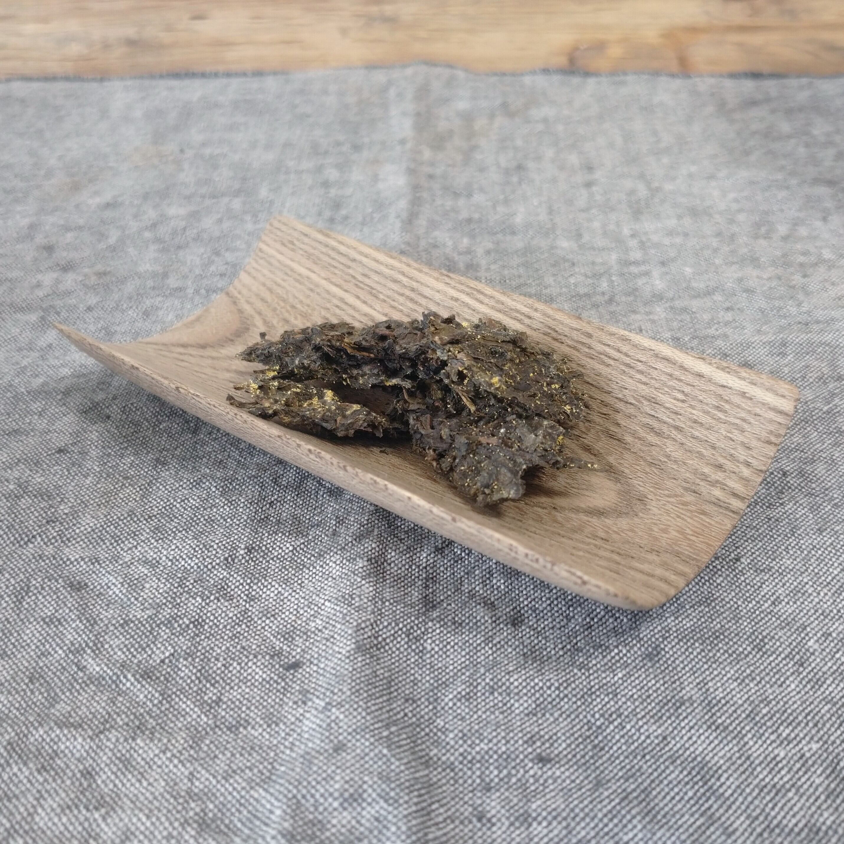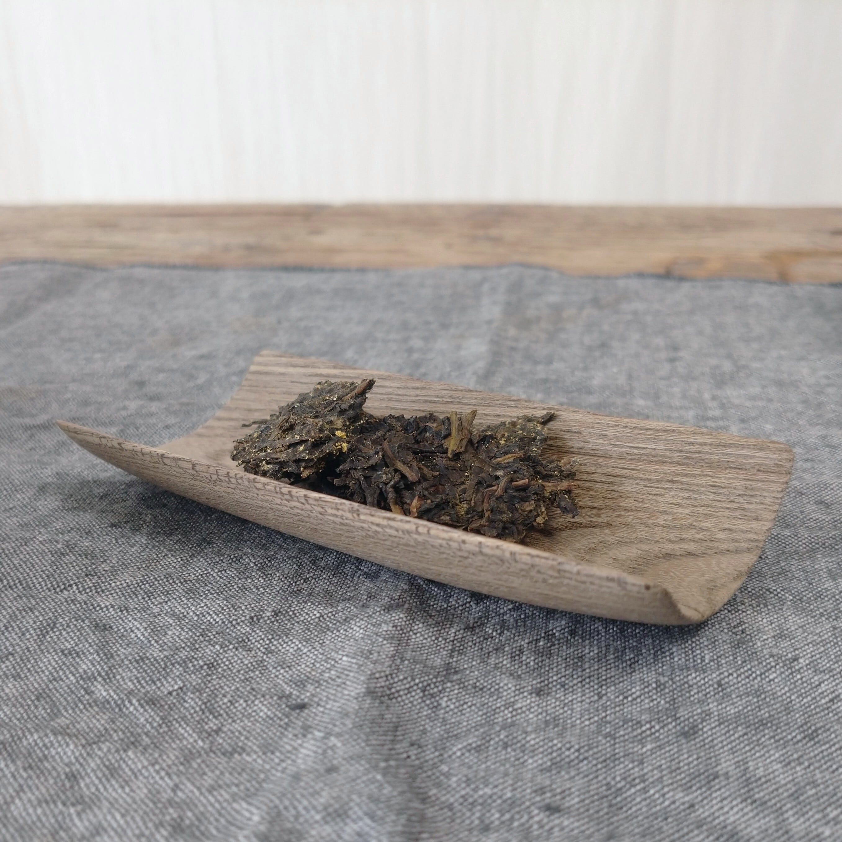 ひとりでお茶を飲むのに丁度良い、小さく浅めの茶則なので、小さめの茶葉を載せるのに向いています。(写真はそれぞれ、茯磚茶を5g、鳳凰単叢 密蘭香を3g載せています。)